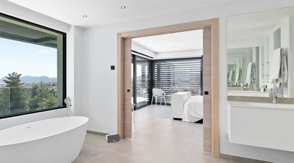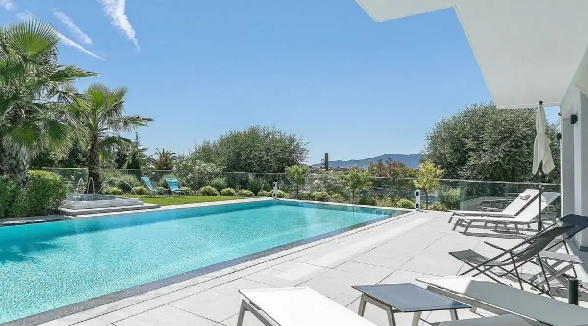 تقع Villa Estée على قمة مرتفعات مدينة كان ، وهي تحفة معاصرة ، على بعد 10 إلى 15 دقيقة بالسيارة من قلب المدينة.