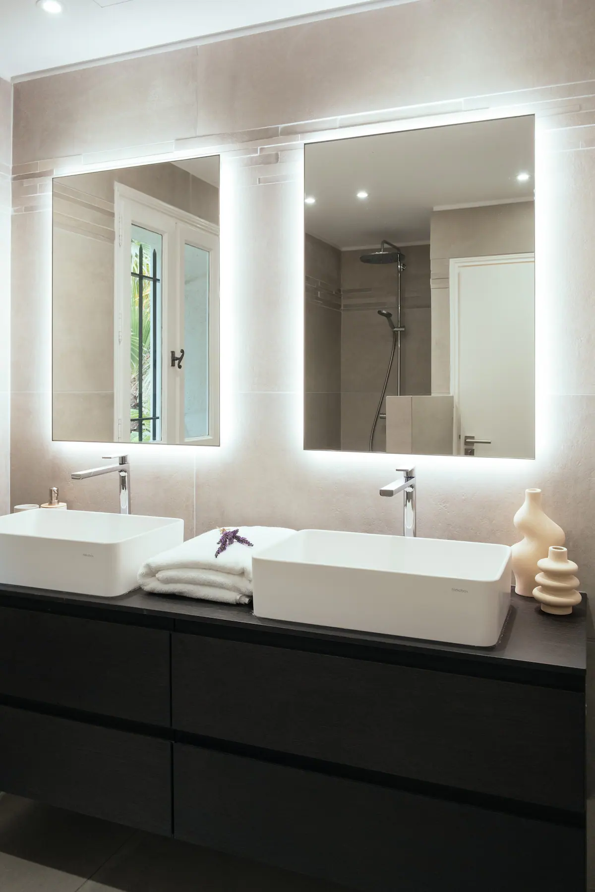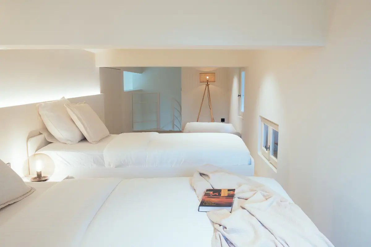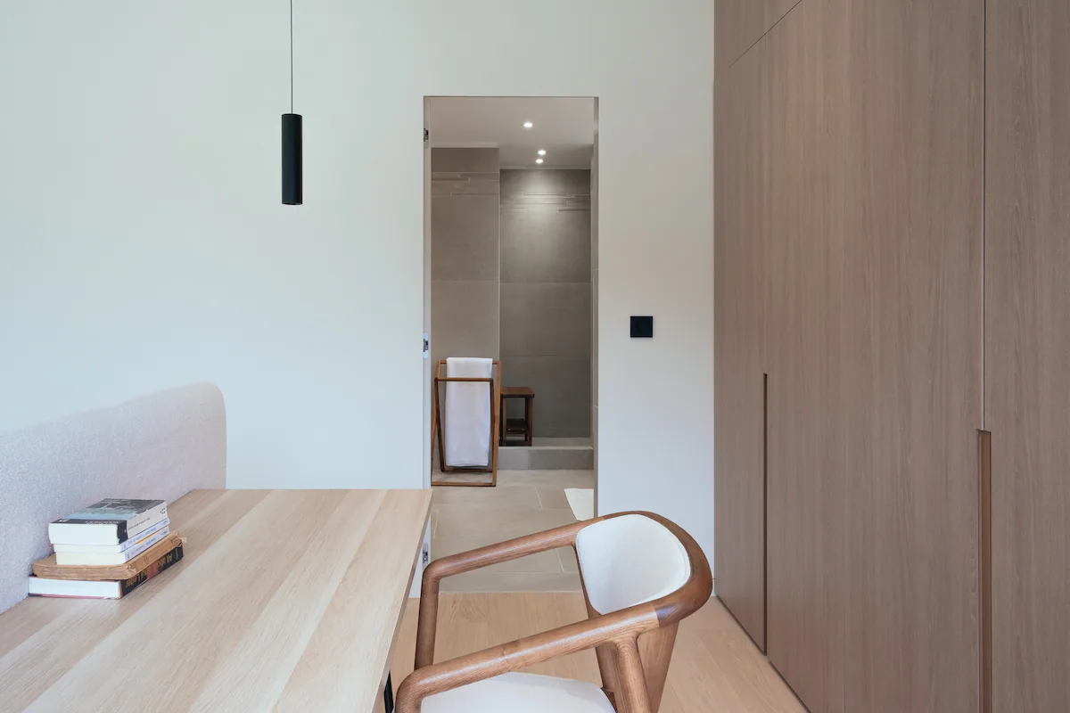 تحتوي الفيلا على 4 غرف نوم، مع غرفة واحدة تحتوي على طابق نصفي يضم سريرين مفردين، مما يوفر مساحة إضافية. كل غرفة نوم مصحوبة بحمّام خاص بها. يمتد مكان الإقامة على طابقين ويضم بيت ضيافة خاص مع مدخل حديقة خاص به في الطابق الأرضي.