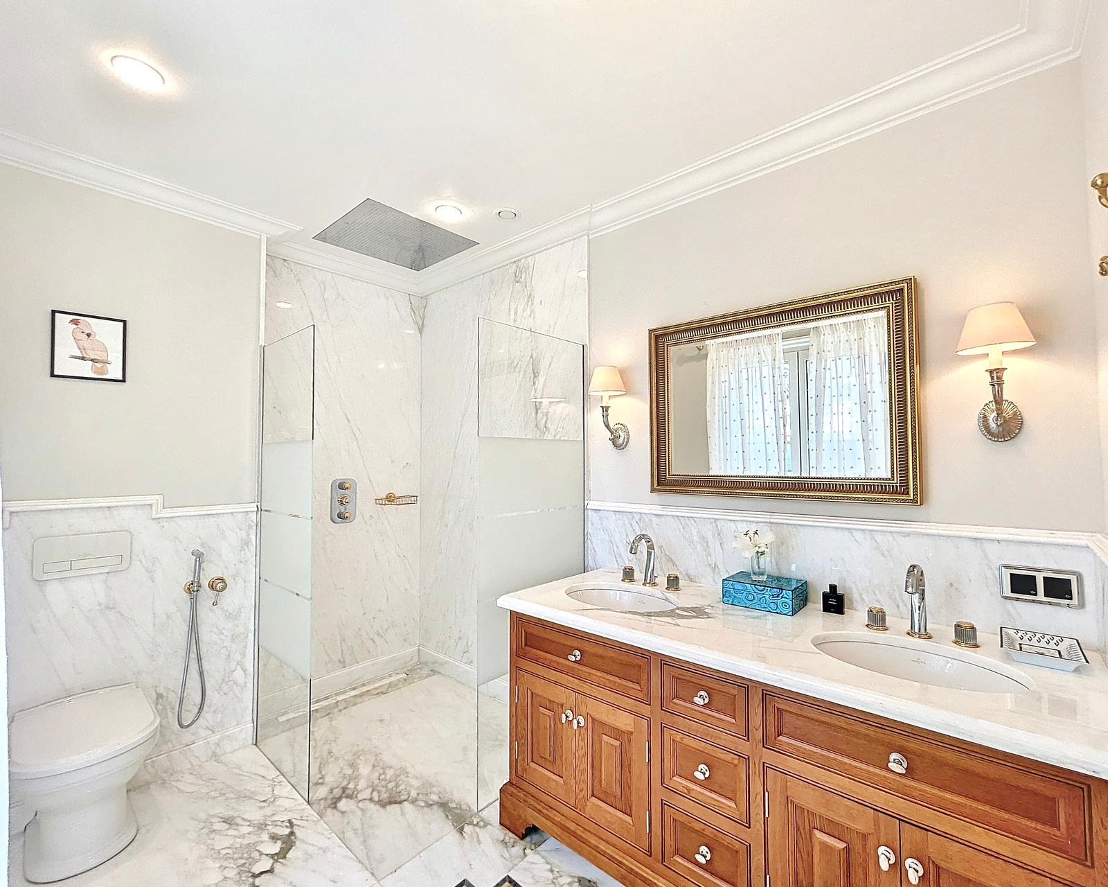 يقع Lys Palace في حي سوبر كان الهادئ، ويعد بمثابة منارة للرفاهية والتفرد، ويوفر ملاذًا فخمًا يمزج بين هدوء البحر والجبال والمعيشة الفخمة. يضم هذا العقار المرموق فيلا رئيسية كبيرة إلى جانب بيت ضيافة أنيق، ويمتد عبر أراضٍ ذات مناظر طبيعية جميلة تبلغ مساحتها 3200 متر مربع، مما يوفر بيئة مثالية لقضاء العطلات واستضافة الأحداث المميزة. تبلغ مساحة الفيلا الرئيسية، وهي تحفة فنية، حوالي 800 متر مربع من المساحة الأرضية المكيفة والمدفأة، وتكشف عن تصميم يجمع بين الأناقة والوظيفة. يرحب الطابق الأرضي بالضيوف من خلال قاعة مدخل مهيبة تؤدي إلى مكتب راقي مزين بمدفأة وغرفة معيشة تأسرك بإطلالات خلابة على المسبح والمدفأة. سيسعد عشاق الطهي بالمطبخ الفسيح المجهز بالكامل، والذي يضم قبو نبيذ ومنطقة مرافق مع غسالات أطباق مزدوجة، تكملها غرفة طعام واسعة. تشمل وسائل الراحة الإضافية مراحيض للضيوف مع غرفة تبديل الملابس. يكشف صعود الدرج المركزي المهيب إلى الطابق الأول عن ملاذ للاسترخاء، مع منطقة هبوط تضم صالة وبارًا مجهزًا بثلاجة وآلة لصنع القهوة. يحتوي الطابق على غرفتي نوم رئيسيتين، تفتح كل منهما على شرفة تتمتع بإطلالات خلابة على البحر جزئيًا نحو جزر Lérins، وتكتمل بغرف تبديل الملابس وغرف الاستحمام الداخلية. الطابق السفلي من الفيلا هو ملاذ ترفيهي، حيث يضم صالة فسيحة مع بار مجهز تجهيزًا جيدًا ومسرح منزلي بجودة صوت رائعة وغرفة نوم يمكن استخدامها أيضًا كغرفة ذعر مع دش/مرحاض داخلي. غرفة غسيل مع غسالات ومجففات مزدوجة، ومنطقة سبا تضم غرفة للياقة البدنية وساونا وحمام تقليدي ومسبح داخلي مدفأ مع جاكوزي (7.5 م × 4.5 م)، ودشين مع مراحيض، وحديقة داخلية، تكتمل بالجزء السفلي مستوى. خارجيًا، يتميز العقار بمرآب كبير مغلق قادر على استيعاب 10 سيارات، ومنطقة لوقوف السيارات، ومسبح مدفأ (7.5 م × 12 م)، وجاكوزي، وملعب تنس بالعشب الصناعي بالحجم الكامل، مما يوفر إمكانيات ترفيهية لا حصر لها. يوفر بيت الضيافة، الذي تبلغ مساحته حوالي 100 متر مربع من مساحة المعيشة المكيفة/المدفأة، تصميمًا أنيقًا مع مدخل يؤدي إلى منطقة صالة مع مطبخ مفتوح، ويفتح على تراس ومرحاض مستقل وغرفتي نوم في الطابق السفلي. ومجهزة بأسرّة مقاس 140 سم و180 سم على التوالي، بالإضافة إلى غرفة استحمام/مرحاض/غسالة. يعد Lys Palace بمثابة شهادة على الفخامة التي لا مثيل لها والمعيشة الهادئة، ويعدك بتجربة استثنائية وسط المناظر الطبيعية الساحرة في سوبر كان.