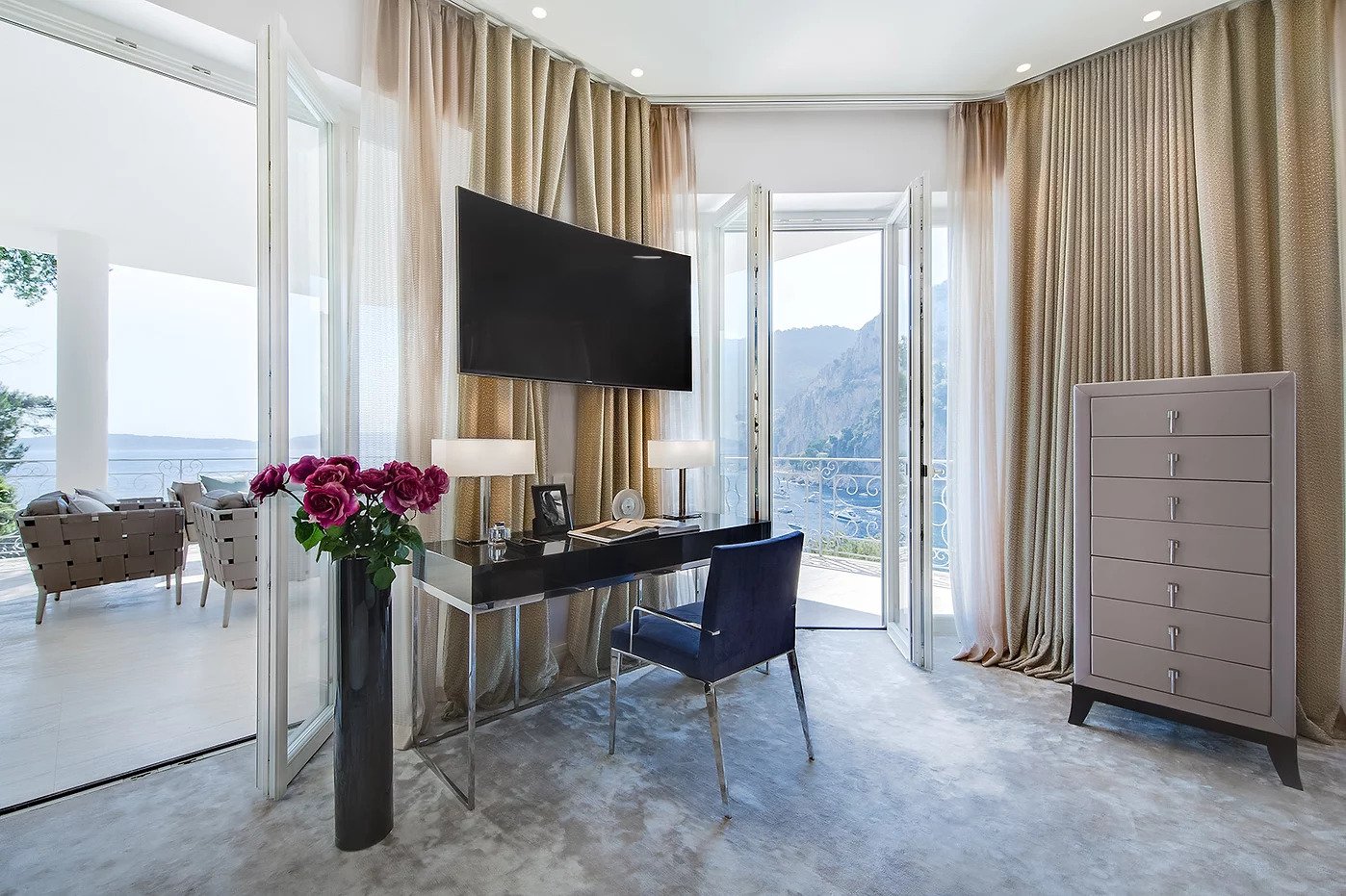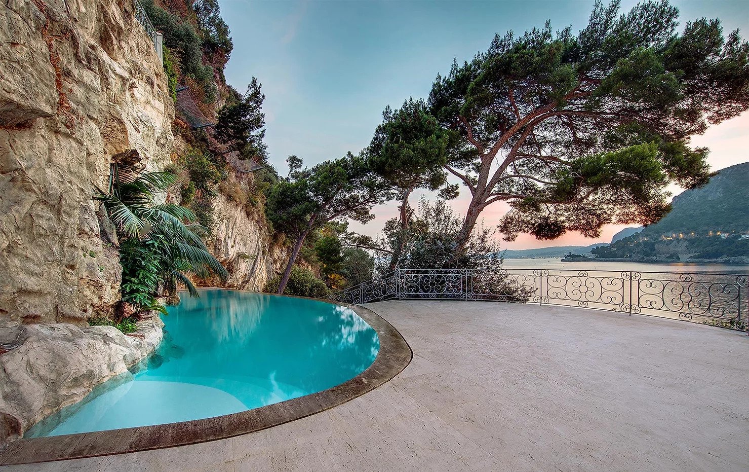 La villa à flanc de falaise surplombe la Méditerranée, avec une vue imprenable sur St Jean Cap Ferrat et la Plage Mala. La propriété est l’une des plus glamour du sud de la France, avec un accès rapide à l’effervescence de Monaco tout en restant dans un havre de tranquillité. Cette luxueuse propriété de 7 chambres offre un accès direct à la plage ainsi qu’à l’embarcadère, idéal pour monter à bord d’une annexe et se rendre dans la baie. L’intérieur de la villa est équipé d’un mobilier design unique et raffiné qui vient compléter les équipements modernes. Conçue pour accueillir jusqu’à 14 personnes, la villa propose trois suites principales différentes, chacune dotée d’un dressing, d’une salle de bains en marbre et d’une terrasse privée avec vue sur la mer. La villa dispose d’un superbe espace spa avec hammam et jacuzzi, qui s’ouvre sur la terrasse de la fête. L’élégante piscine complète parfaitement la villa, ce qui en fait l’endroit idéal pour recevoir un grand groupe pendant les chauds mois d’été. La cuisine professionnelle est idéale pour qu’un chef privé puisse régaler votre palais. Elle dessert directement la salle à manger extérieure et dispose même d’un grill.