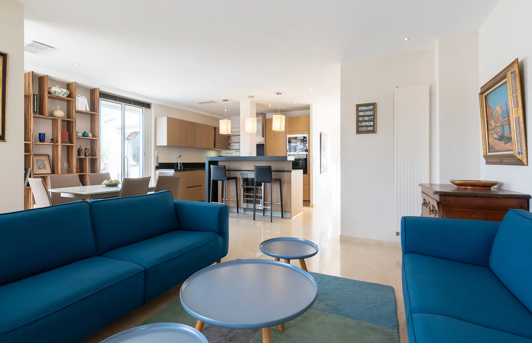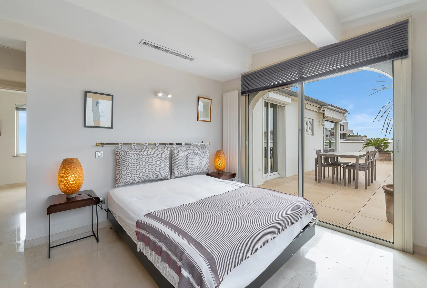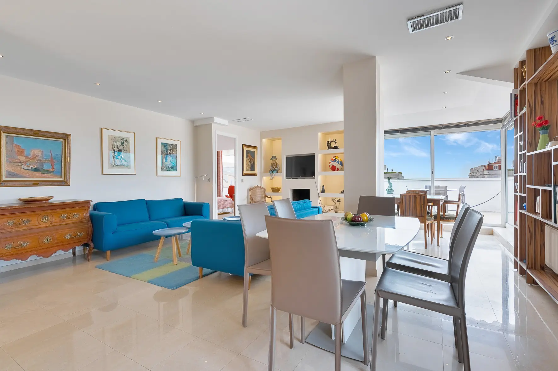 This refined apartment in Cannes offers three well-appointed bedrooms, each with its own bathroom and a separate toilet, accommodating up to six guests. Spanning 140 m², the space includes a spacious living room with an open kitchen that leads to a stunning 70 m² terrace, ideal for enjoying the scenic sea views. Located just 100 meters from the Croisette, guests have quick access to beaches, high-end dining, and luxury shopping. Amenities include Wi-Fi, air conditioning, and full kitchen facilities, making it perfect for both business events and leisure stays.