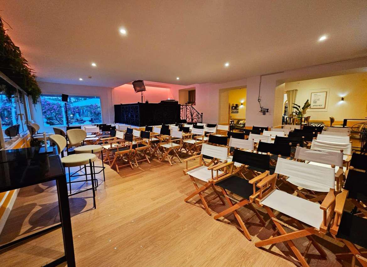 – Main Room: This 150m² space can host 120 guests seated or 250 for cocktail receptions. It comes fully equipped with advanced sound and lighting systems, including projectors, ready for any event.