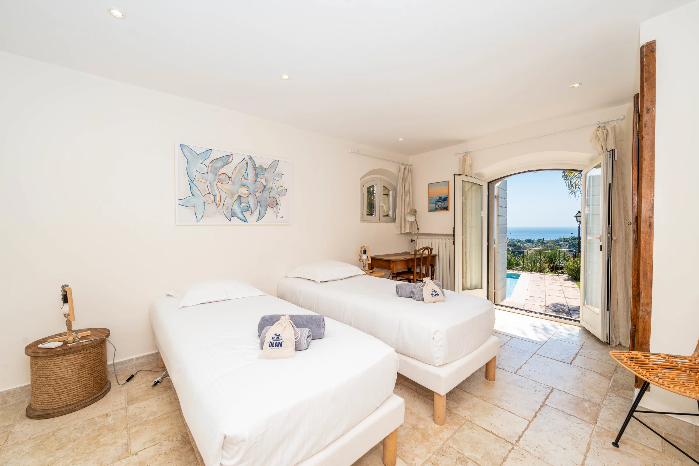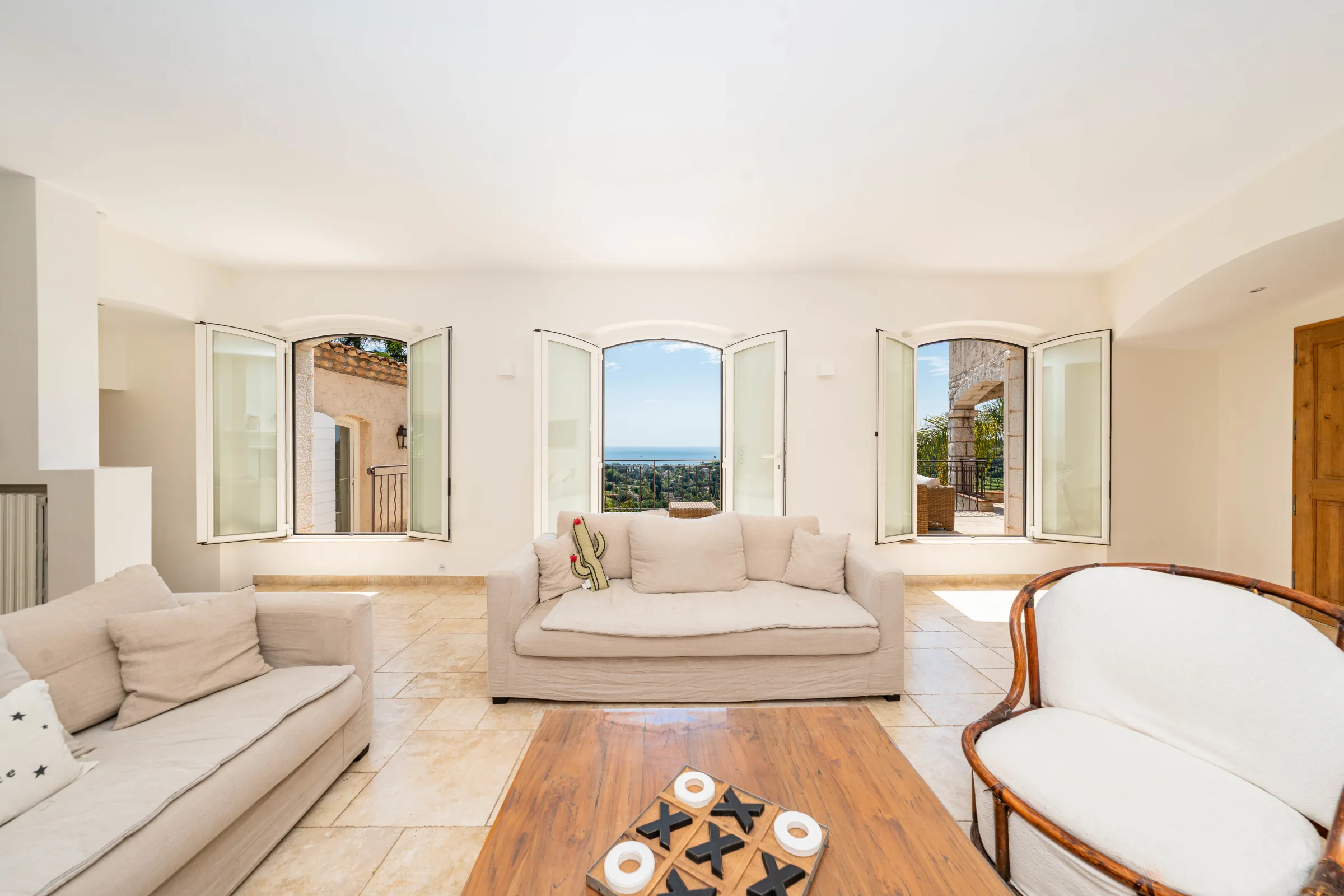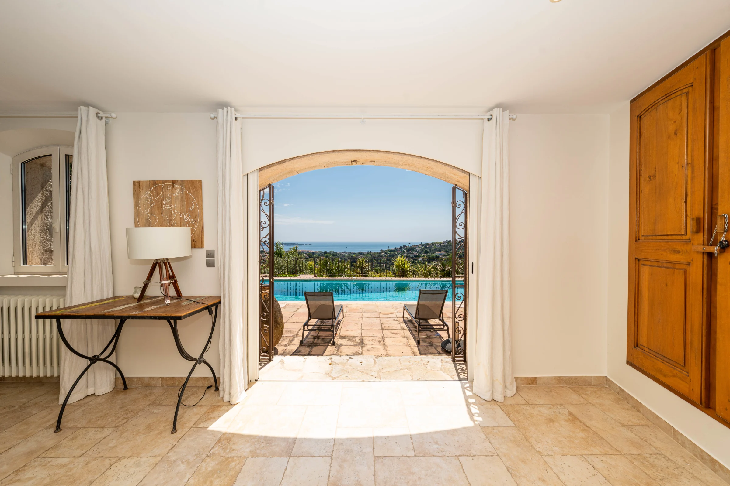 A beautiful modern villa overlooking the sea, nestled in the quiet hills of Antibes. Designed for comfort and easy living, it offers two inviting living rooms, a home theater, a sleek kitchen, and four en-suite bedrooms. The outdoor spaces are perfect for sunny days with a private pool, peaceful garden, and terraces for long lunches and evenings outdoors. Air conditioning, Wi-Fi, and a barbecue are included. Just a short drive from shops and beaches an ideal setting to unwind on the Riviera.