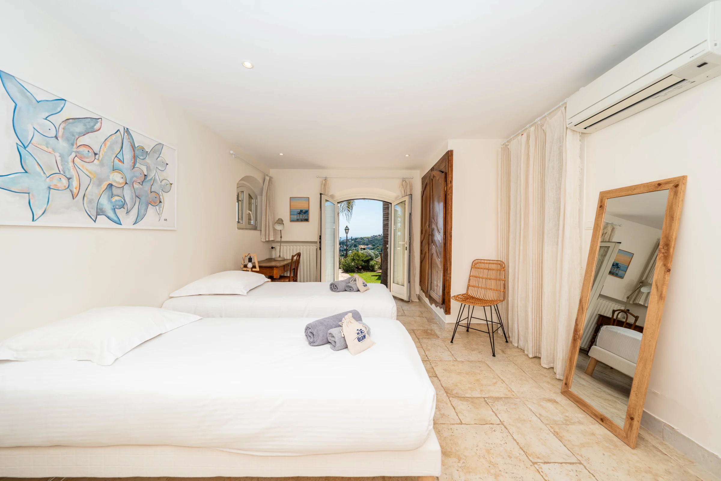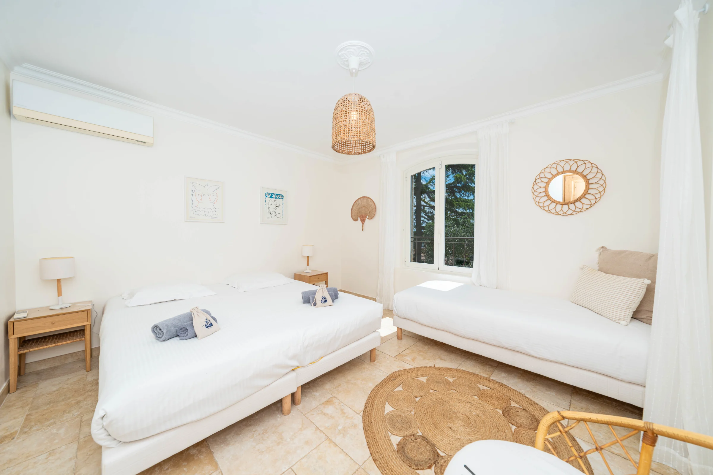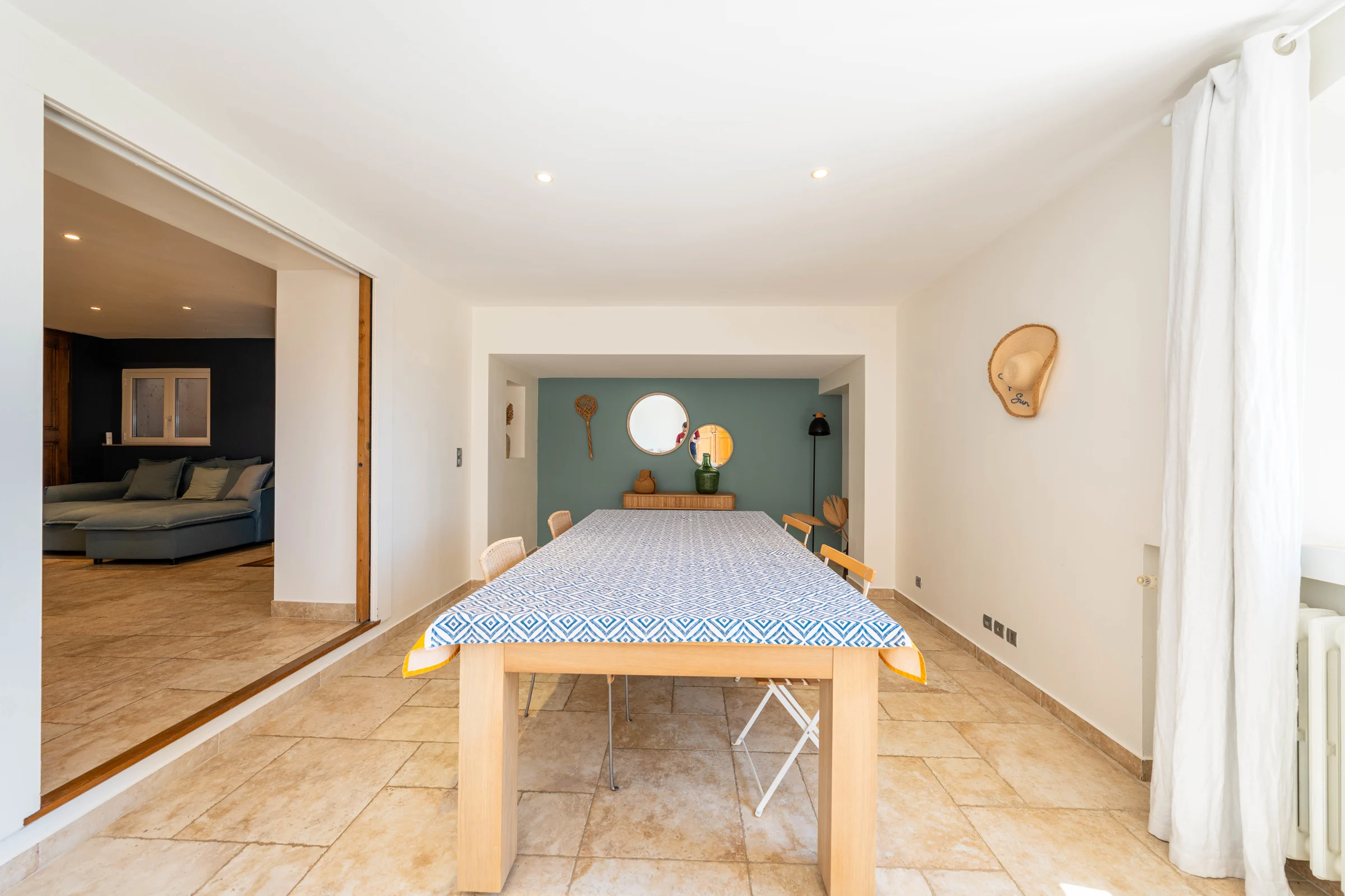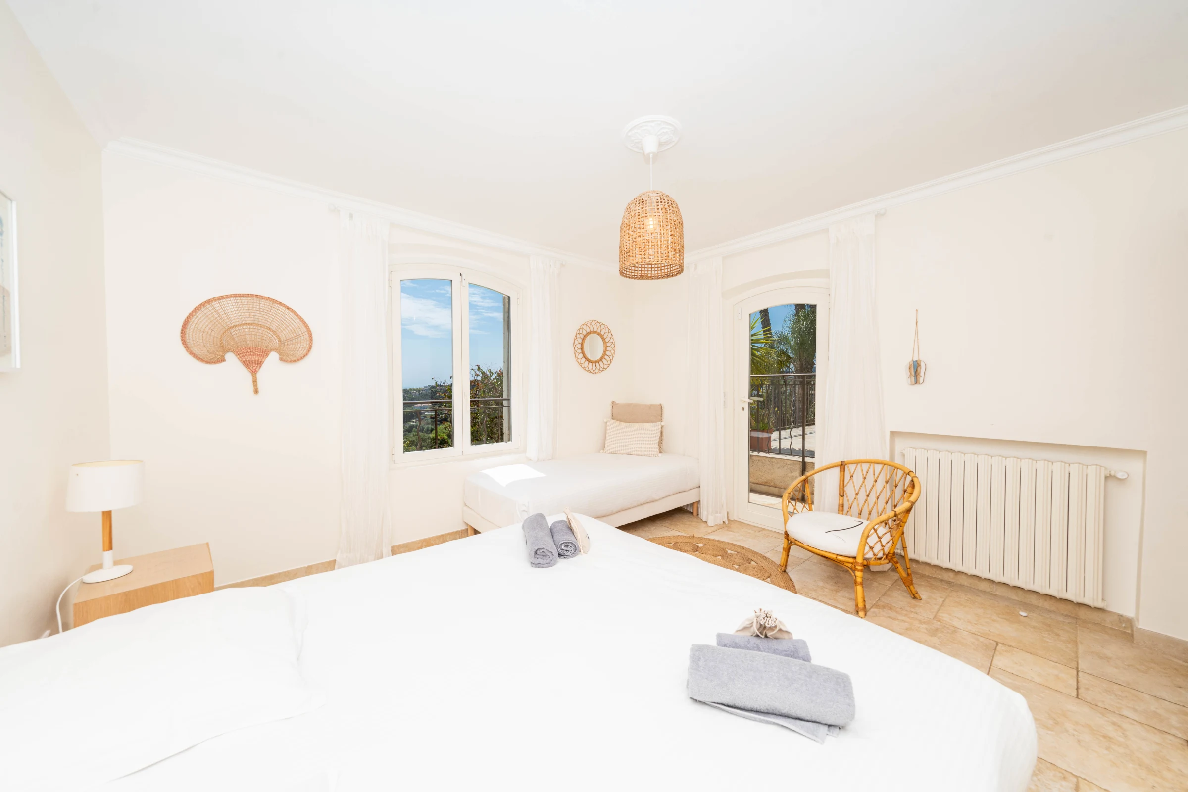 A beautiful modern villa overlooking the sea, nestled in the quiet hills of Antibes. Designed for comfort and easy living, it offers two inviting living rooms, a home theater, a sleek kitchen, and four en-suite bedrooms. The outdoor spaces are perfect for sunny days with a private pool, peaceful garden, and terraces for long lunches and evenings outdoors. Air conditioning, Wi-Fi, and a barbecue are included. Just a short drive from shops and beaches an ideal setting to unwind on the Riviera.