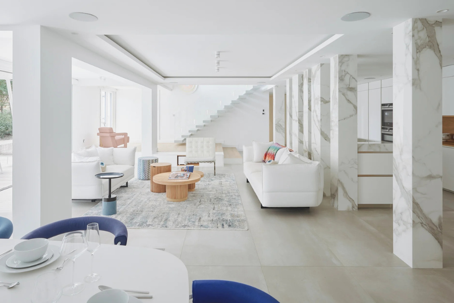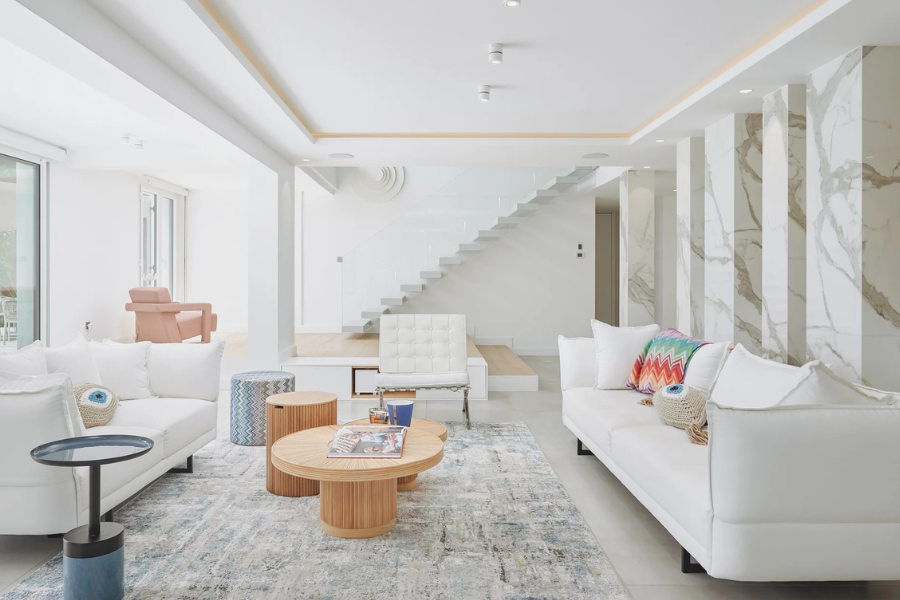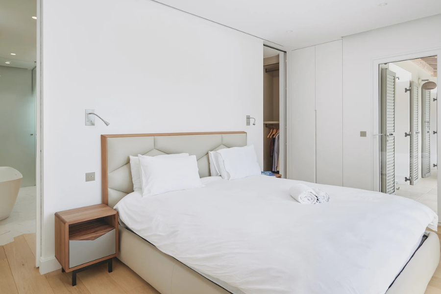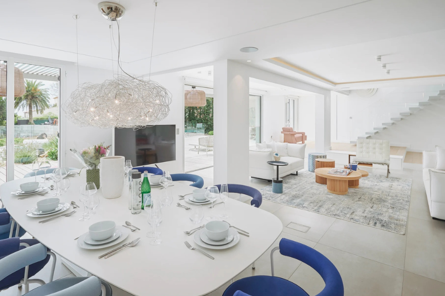 Surrounded by beautifully landscaped Mediterranean gardens, this exquisite retreat boasts a private infinity pool, a fully equipped summer kitchen, and expansive terraces designed for seamless indoor-outdoor living. Recently renovated in a neo-Provencal style, the villa harmoniously blends traditional materials with Scandinavian-inspired furnishings and state-of-the-art amenities. Floor-to-ceiling windows bathe the interiors in natural light, creating an inviting and elegant ambiance.