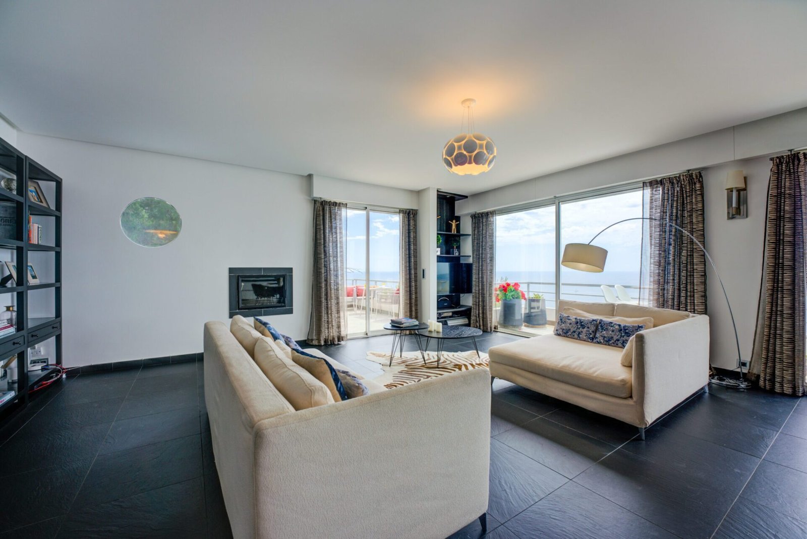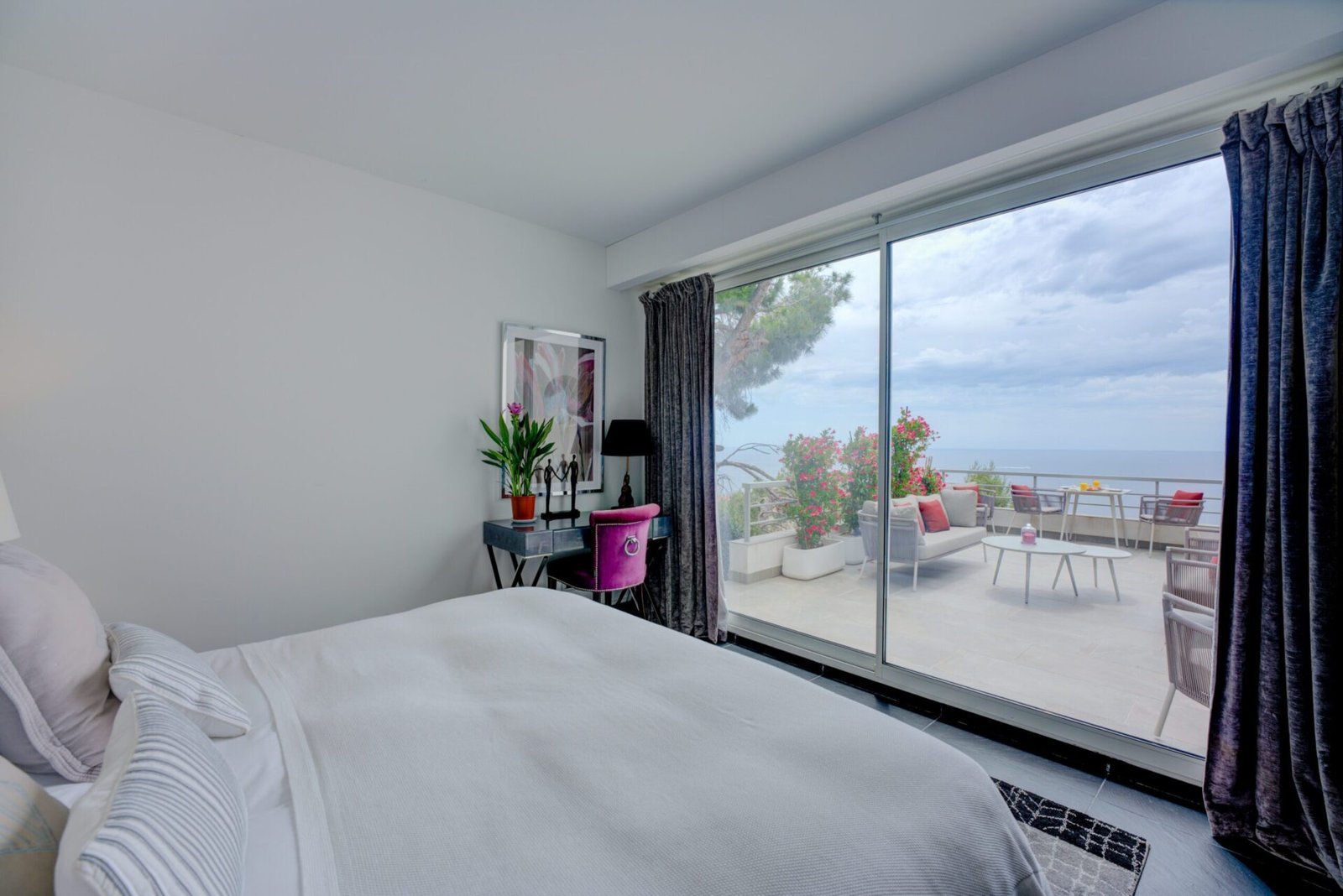 The villa welcomes you with a grand entrance hall leading to a spacious open-plan living and dining area, designed to capture panoramic views of Plage Mala and Cap Estel. The modern, fully equipped kitchen is perfect for entertaining, seamlessly blending style with functionality. Villa Bosphore features four beautifully appointed bedrooms, each with its own en-suite bathroom. Three of the bedrooms open onto terraces with stunning sea views, while the fourth, with a partial sea view, offers flexible sleeping arrangements.