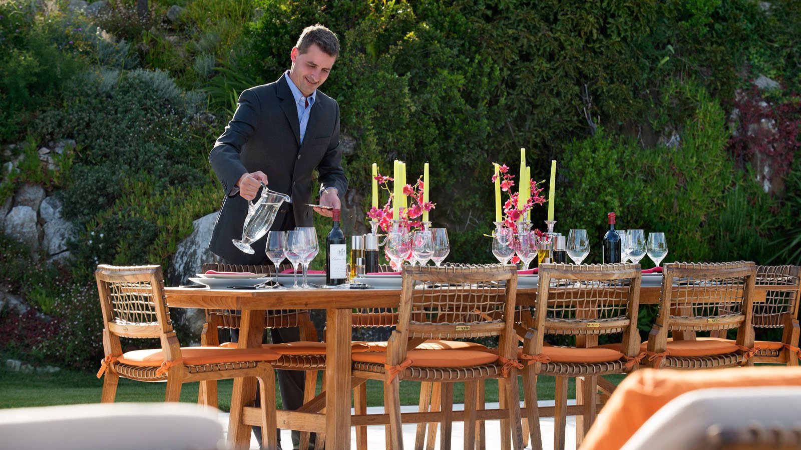 – Elevated dining area with uninterrupted sea views for 18 guests