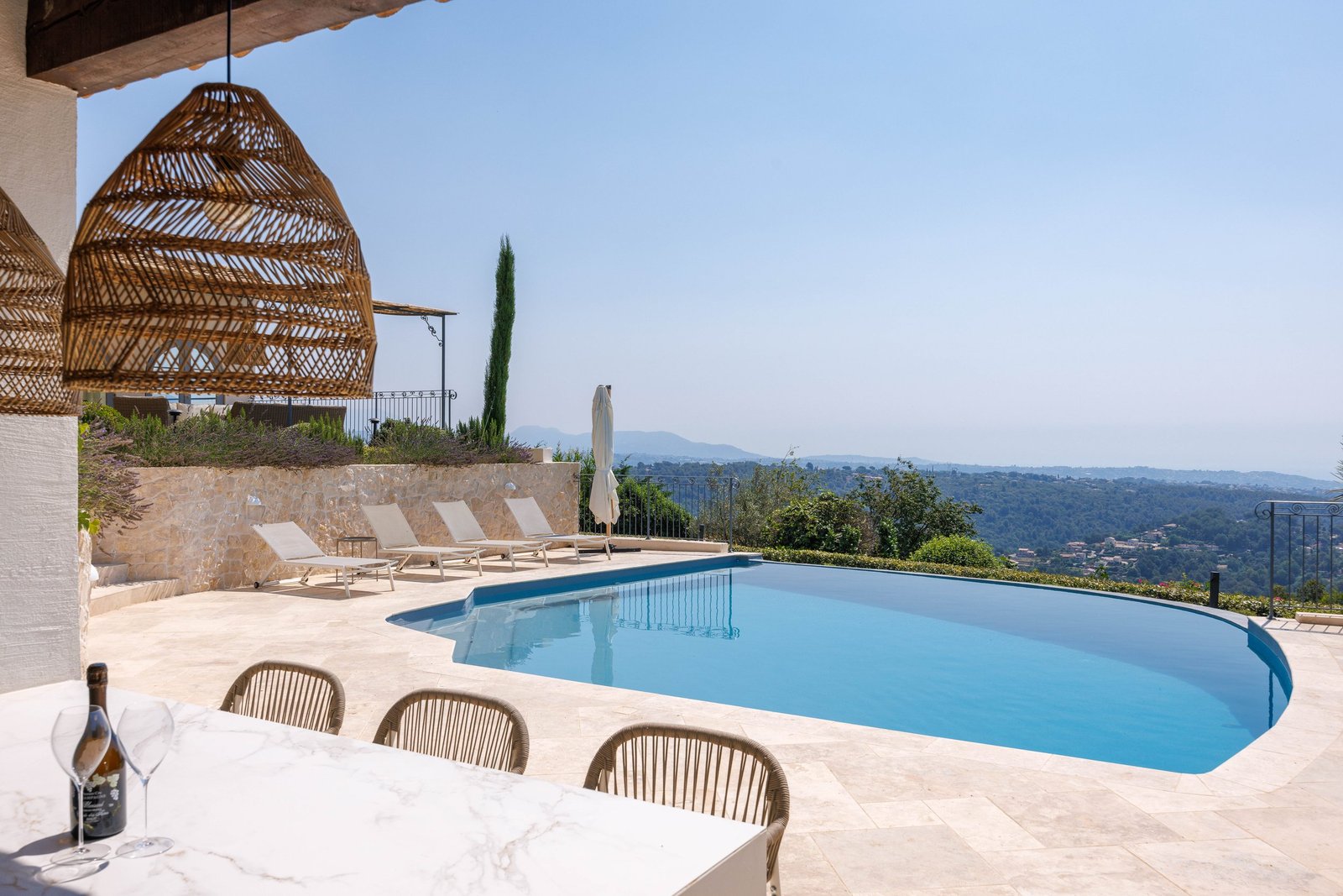 Perched high above Vence with sweeping views of the Mediterranean, Villa Ciel is a contemporary masterpiece that fuses Scandinavian simplicity with Riviera elegance. Designed for up to 12 guests, the villa features six stylish bedrooms, expansive open-plan living spaces, and floor-to-ceiling windows that flood the interiors with natural light. Outside, sun-drenched terraces and an infinity pool invite relaxation against a backdrop of sea and mountain panoramas. Just minutes from the coast yet peacefully secluded, Villa Ciel offers the perfect balance of modern luxury and serene Provençal charm.