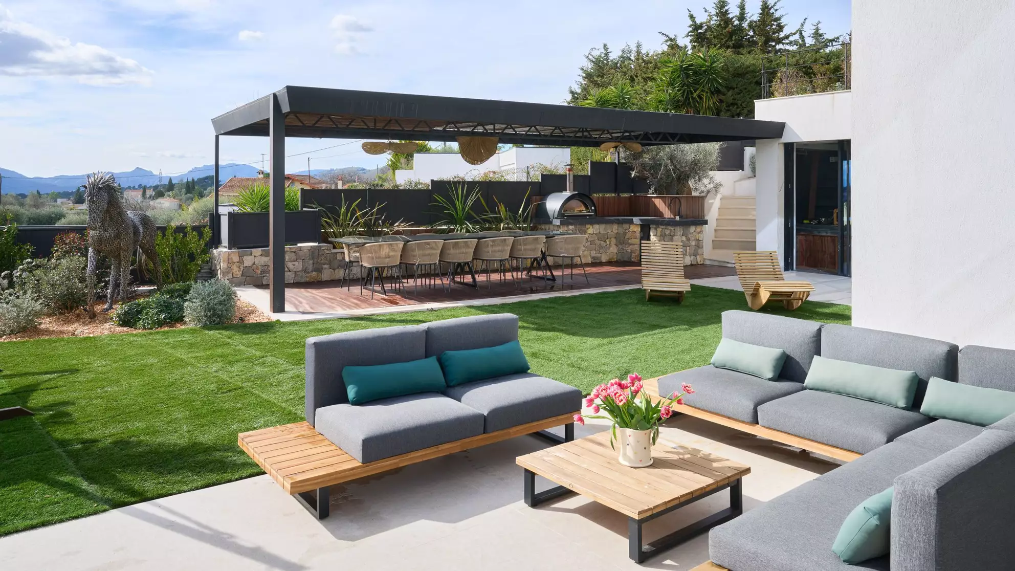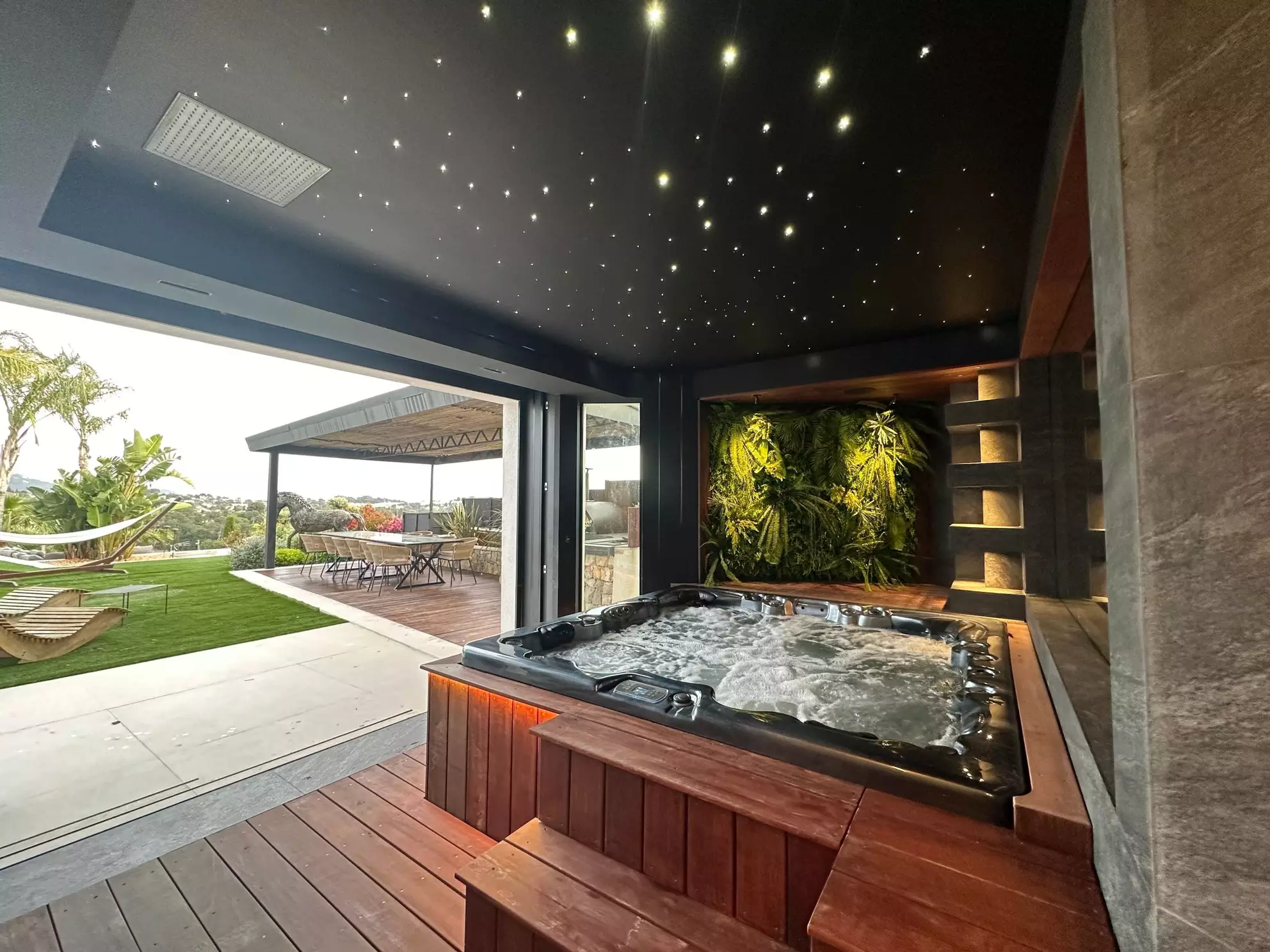 Nestled in the heart of Mougins on the French Riviera, Villa Dalia emerges as an exquisite luxury retreat ideal for discerning travelers. This villa comfortably accommodates up to 10 guests with its 5 well-appointed bedrooms and 6 luxurious bathrooms, spreading across 450 square meters. The property boasts a plethora of amenities including an overflowing swimming pool, jacuzzi, sauna, and a movie room. The outdoor space is complemented by a game room and a cozy fireplace area, making Villa Dalia a perfect blend of relaxation and entertainment options, all set within a charming town setting.