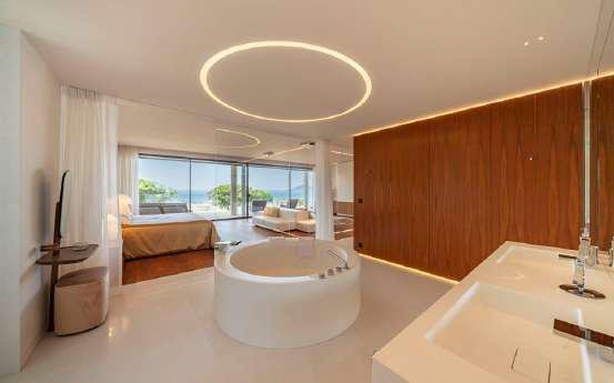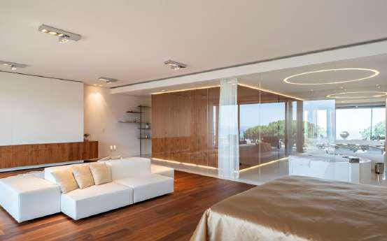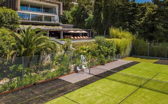 Villa D’Or features six luxurious guest suites, plus a dedicated staff apartment, each designed to offer supreme comfort and style. The villa offers breathtaking sea views and is equipped with a variety of leisure facilities including a large heated swimming pool, a private tennis court, a spacious garage, a relaxing sauna, a state-of-the-art gym, and a home cinema.