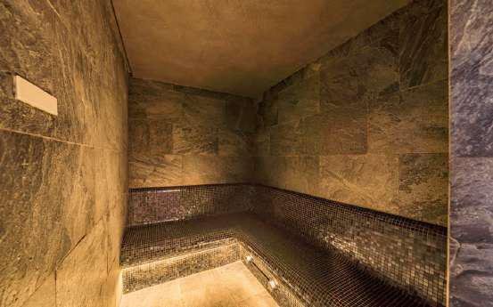 Ground Floor: This area features a fully equipped gym adjacent to the sauna, a grand living room, a modern kitchen, and a formal dining room.
