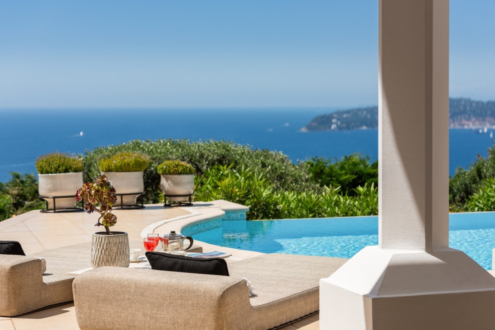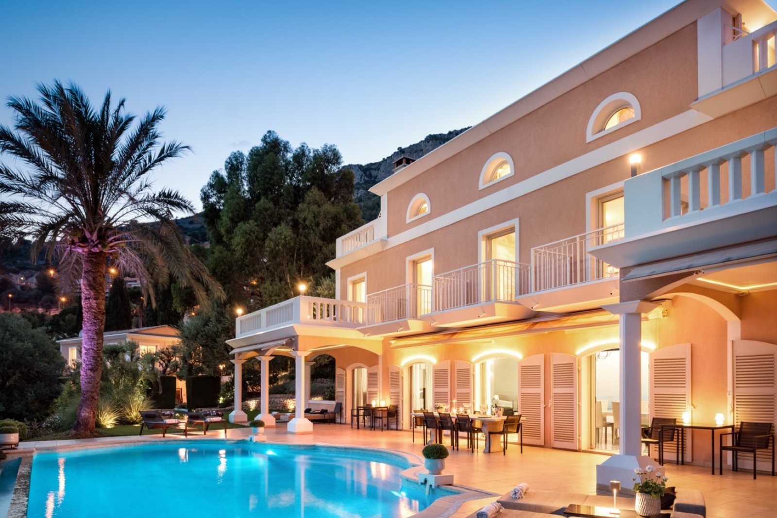 Villa Eleganza is a luxurious haven perched in the scenic hills of Cap D’Ail, just outside Monaco, offering stunning Mediterranean views. This 4,000 sqm property includes a 350 sqm main house and a 150 sqm guesthouse with three private apartments, accommodating up to 14 guests in six en-suite bedrooms. With amenities like a heated infinity pool, a spacious terrace with a BBQ area, and parking for 10 cars, the villa ensures both comfort and security. A fully equipped gym, a well-appointed office, and exceptional service from dedicated staff make this villa an ideal blend of privacy, luxury, and convenience on the French Riviera.