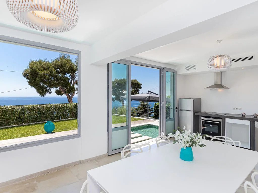 The villa is a sumptuous 200m² property with unrivalled views of the Mediterranean. Each floor offers stunning views of the crystal clear waters, with each of the four bedrooms offering a private balcony. The pool comes with a dedicated lounge within the villa, ideal to step into the AC and escape the heat of the Cote d’Azur sun.