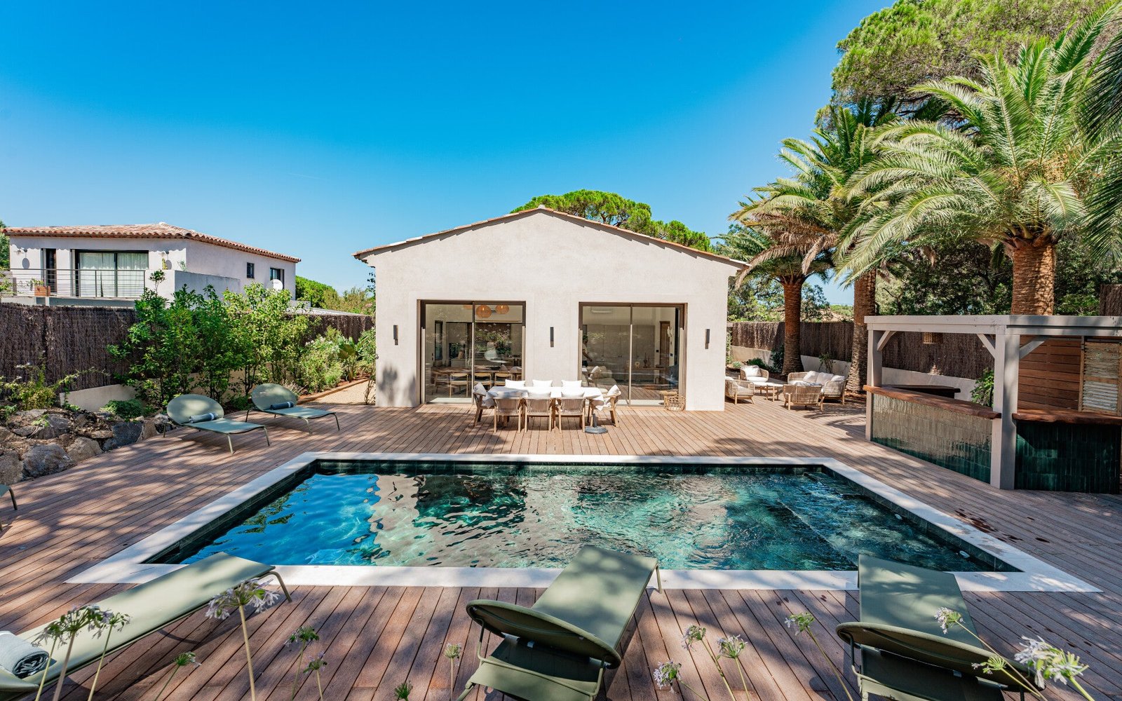 Nestled within the private domain of Parc des Salins, just steps from the beach and 4 km from the heart of Saint-Tropez, Villa Johanna combines an exceptional location with refined comfort. Originally built in the 1970s and fully renovated in 2023, this charming villa seamlessly blends Mediterranean elegance with modern amenities.