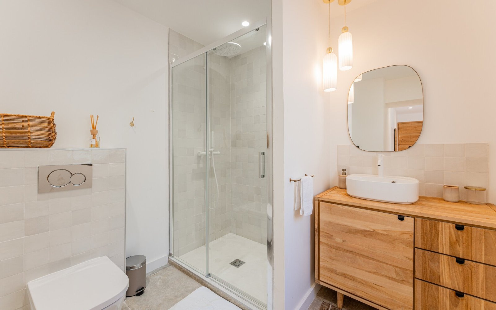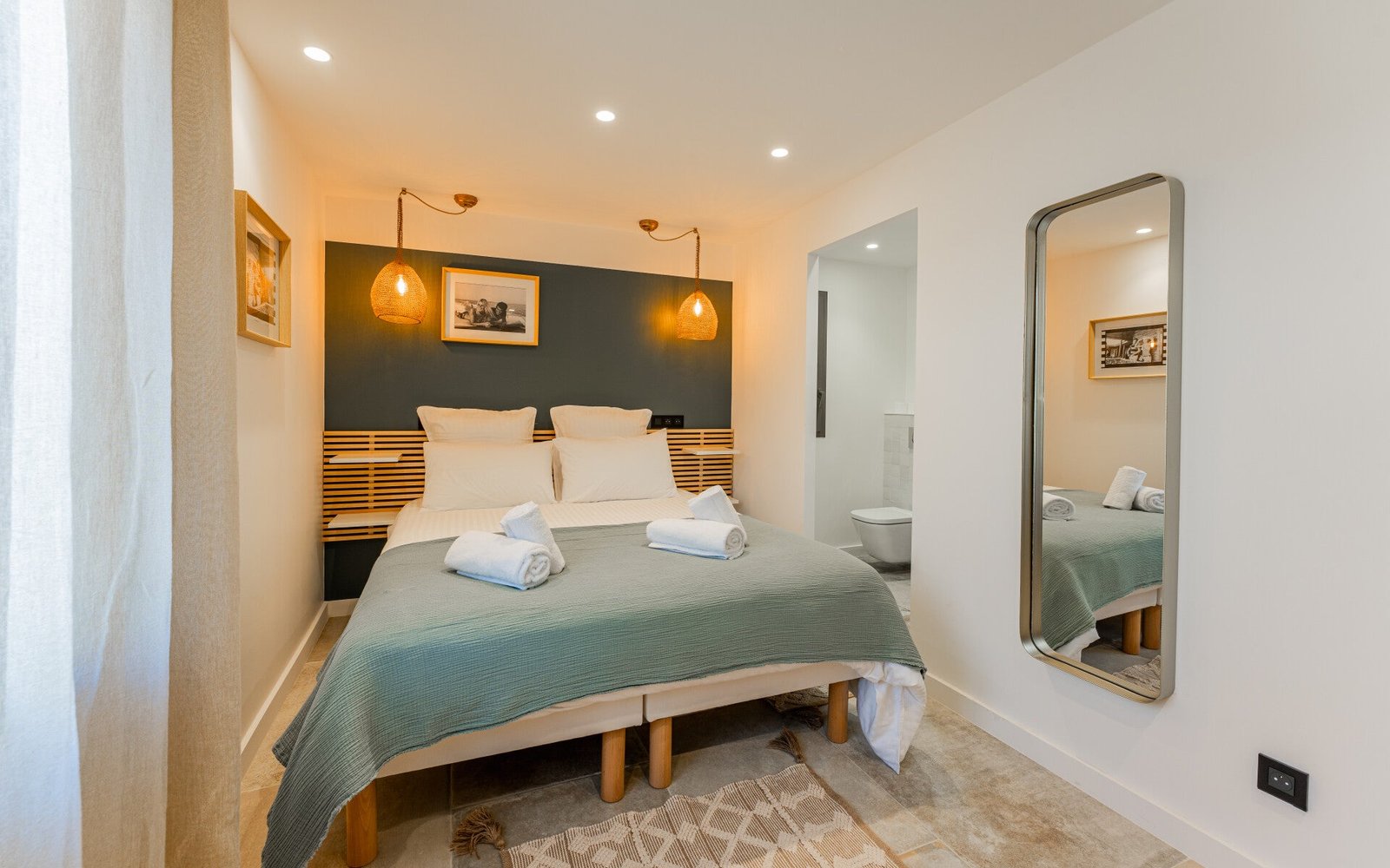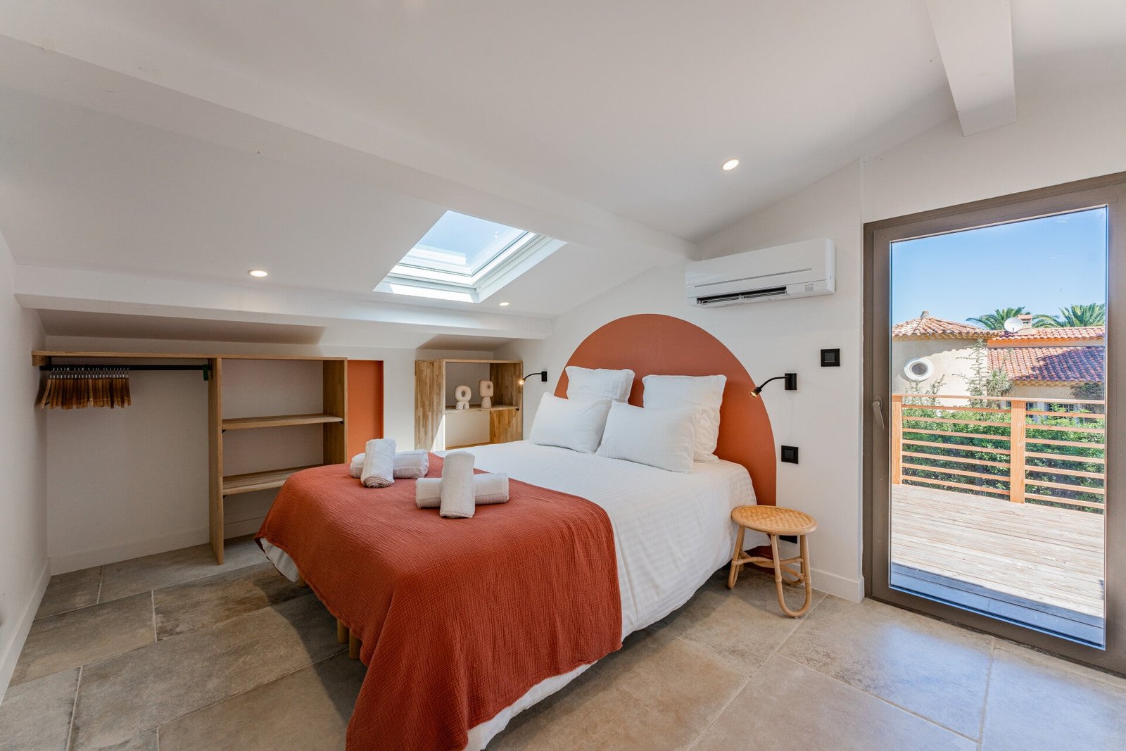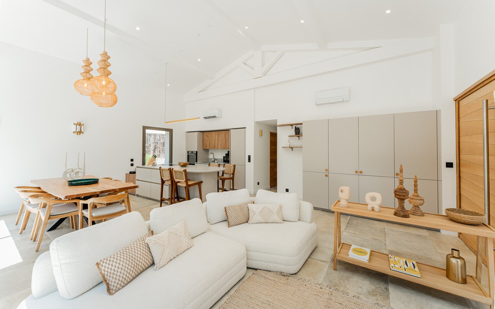 Spread across 4 bedrooms and 5 bathrooms, the property accommodates up to 10 guests. Each bedroom enjoys the privacy of its own bathroom, ensuring both comfort and convenience. The interiors are thoughtfully designed, offering light-filled living spaces with a contemporary yet warm atmosphere.