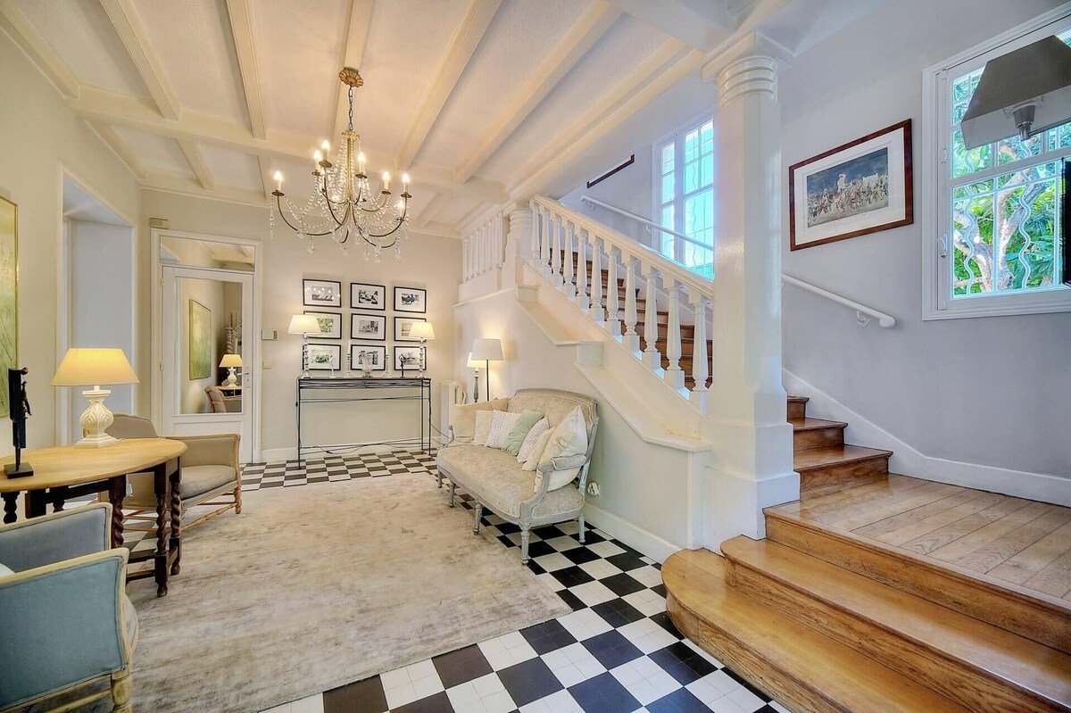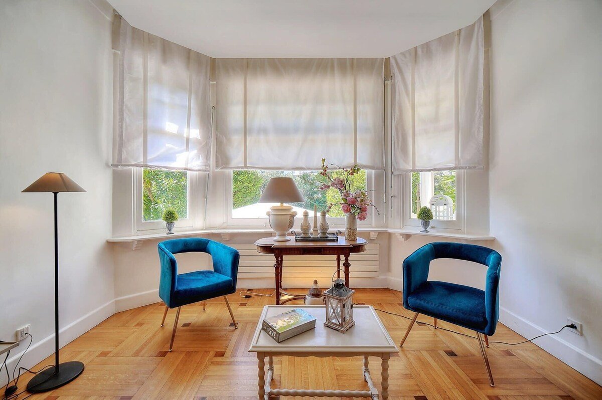 Villa Leila stands as an epitome of elegance and comfort, sprawled over 240 m² with 5 bedrooms and 4 bathrooms, set within a meticulously maintained 900 m² garden featuring a swimming pool. This villa embodies a seamless blend of luxury and homeliness, beginning with a spacious entrance leading to a double living room of approximately 50 m². The living area opens onto a sun-drenched south-facing terrace, offering a cozy lounge with a flat-screen TV, a dining area that accommodates 10-12 guests, an office space, and air conditioning for ultimate comfort. The kitchen is fully equipped, boasting a 4-burner gas stove, fridge-freezer, and more, alongside a utility room with laundry facilities.