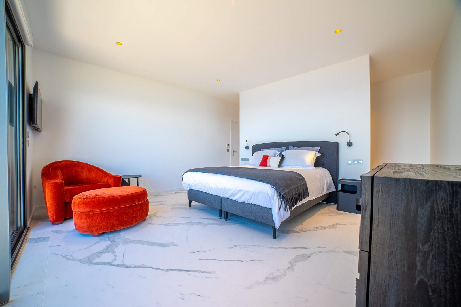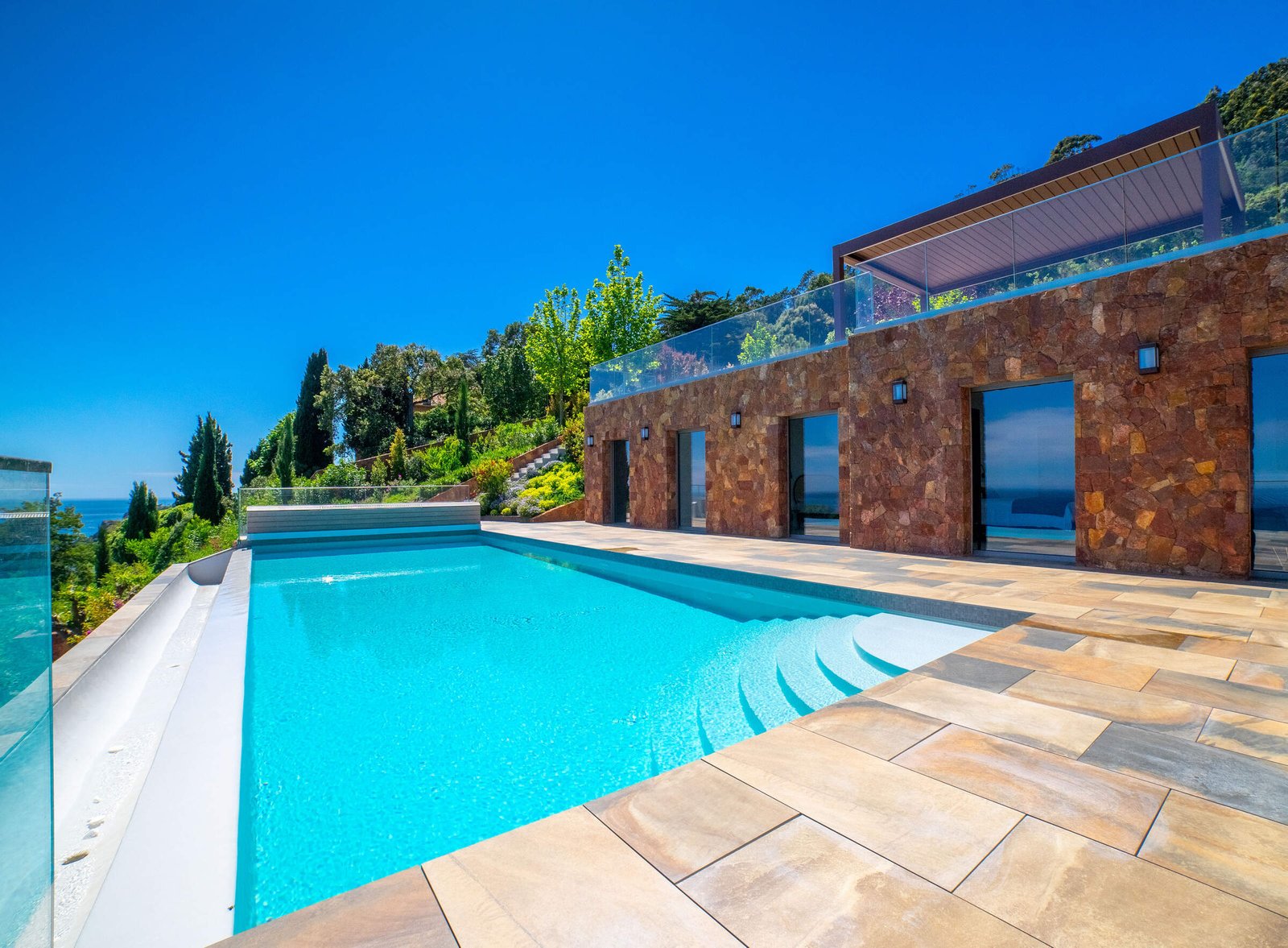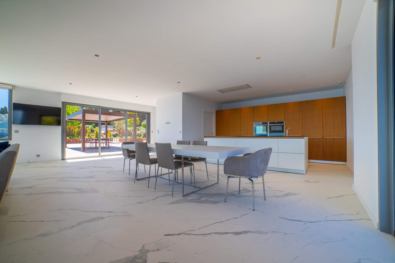 One of the most modern villas, the Villa Lina offers some stunning views of the surrounding seas. Ideally located in Théoule Supérieur, the villa offers easy access to the port, ideal to enjoy a boat day in the bay. The massive infinity pool is surrounded by an oversized terrasse, with a covered dining area. Upstairs a second dining area can be found, with an adjacent lounge perfect to entertain guests for an evening. The guest bedrooms offer stunning views of the sea and the pool.