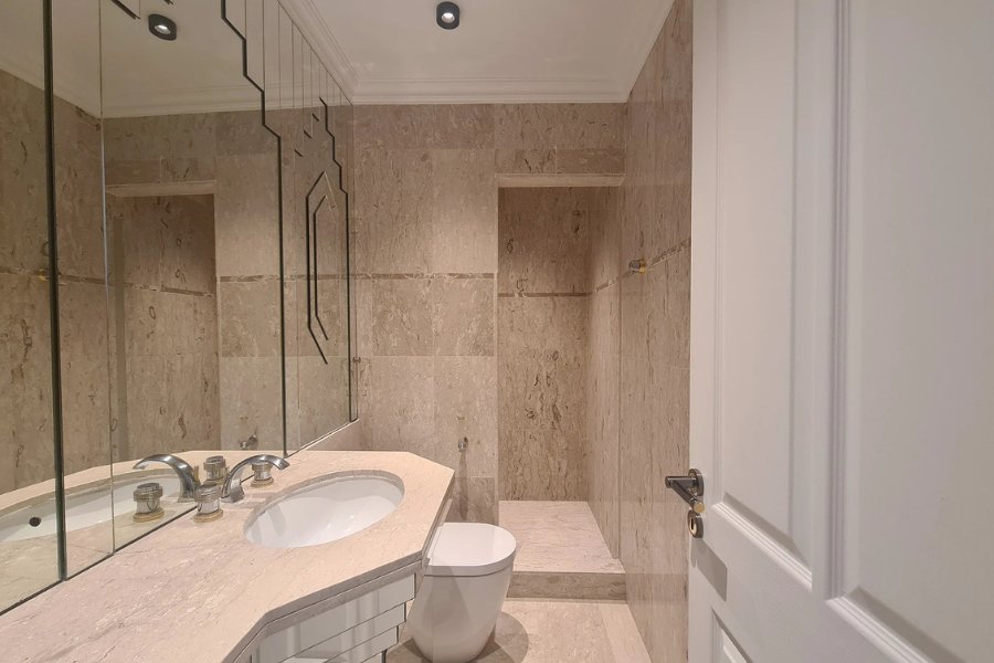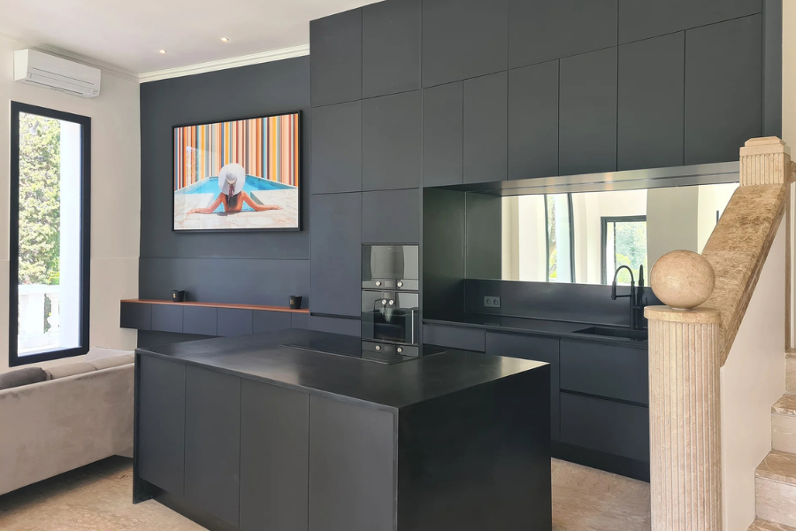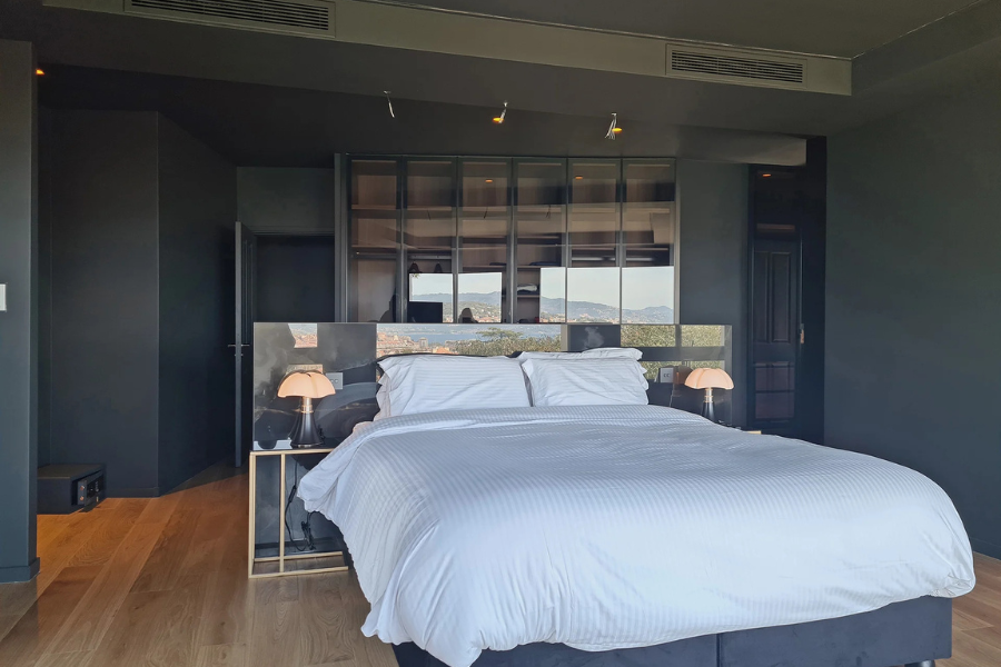 Spread over three levels, the villa boasts a spacious and well-thought-out layout. The ground floor features three en-suite bedrooms and a fully equipped summer kitchen that opens onto the terrace and pool. The middle floor is home to three additional en-suite bedrooms, along with the magnificent master suite, offering breathtaking views of the Mediterranean. The top floor is dedicated to the living areas, including an expansive lounge, dining room, and a fully equipped modern kitchen, all opening onto a panoramic terrace. An elevator serves all floors, ensuring ultimate comfort for all guests.
