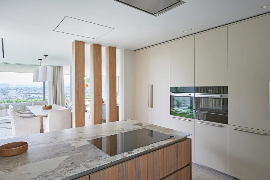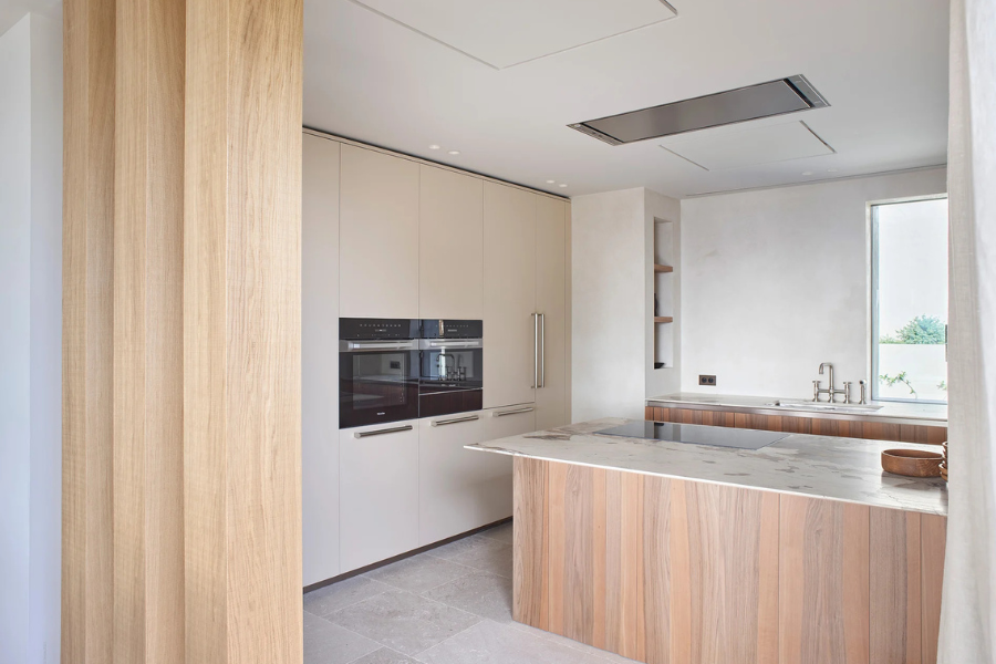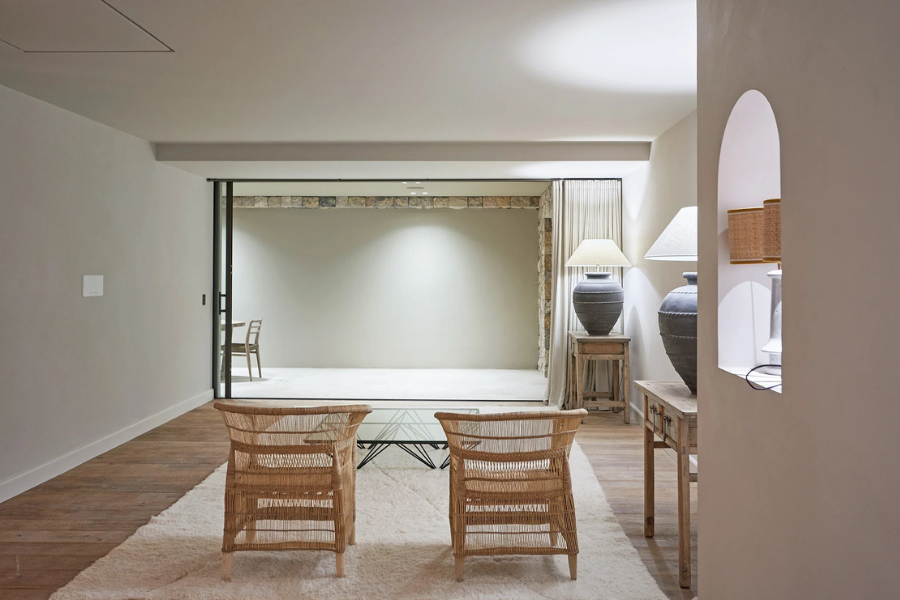 Set across three levels, the villa offers generous living spaces. On the lower floor, you’ll find an en-suite bedroom, a cozy TV lounge, a wine cellar, a laundry room, and a wellness area complete with a hammam and gym. The ground floor features a bright and welcoming living room, a dining area, a semi-open modern kitchen, and two additional en-suite bedrooms. The first floor is dedicated to two more spacious and beautifully appointed en-suite bedrooms.