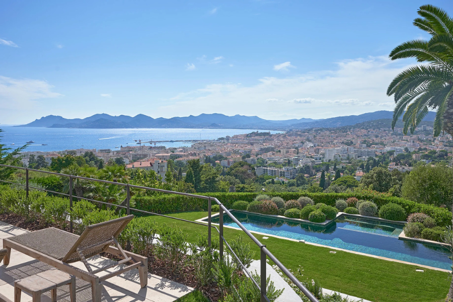 Located in the tranquil hills of Cannes, Villa Luminosa offers a luxurious retreat just a short 10-minute drive from the city center and the iconic sandy beaches of La Croisette. This exceptional villa boasts a range of standout features, including a home gym, hammam, wine cellar, heated pool, hot tub, and stunning panoramic views of the Mediterranean Sea.