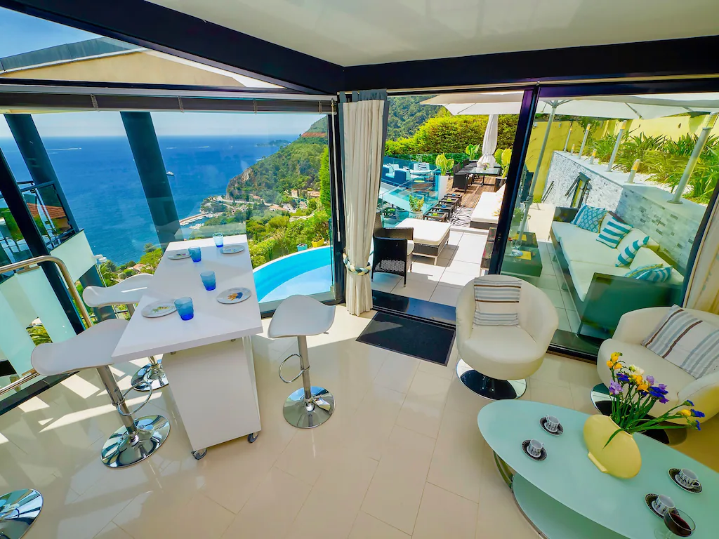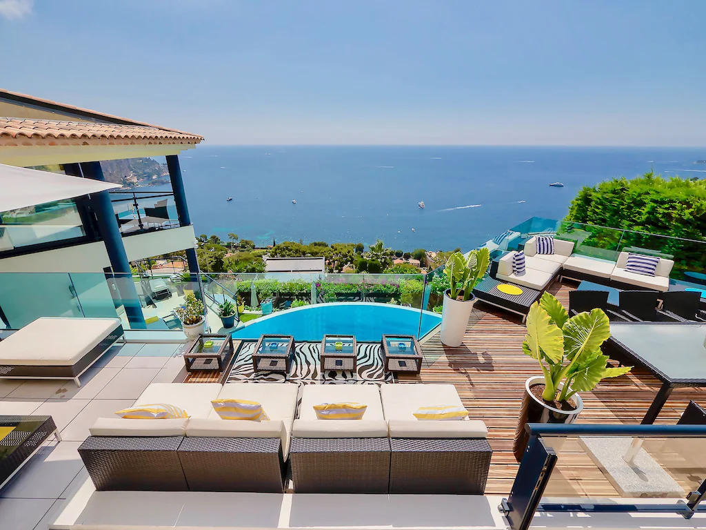 The villa Melbourne is one of the largest villas for rent in Eze, featuring an exceptional infinity pool with views of the sea. The villa comes with accommodation for up to 10 guests across four ensuite bedrooms, each with stunning views of the water.