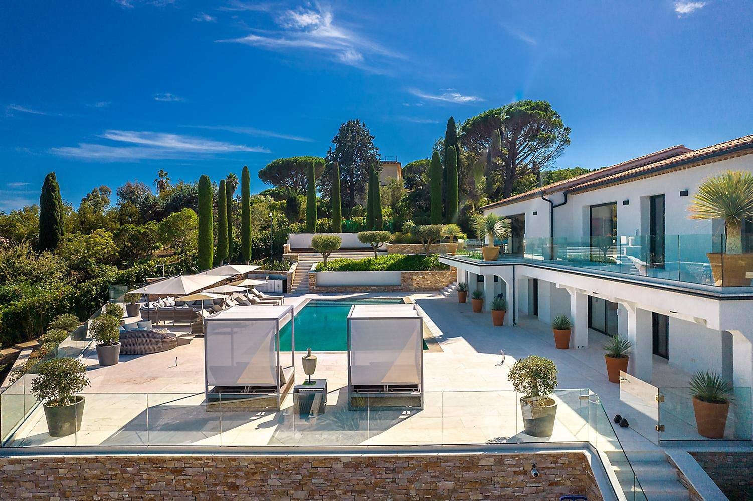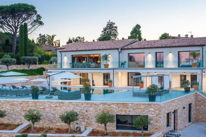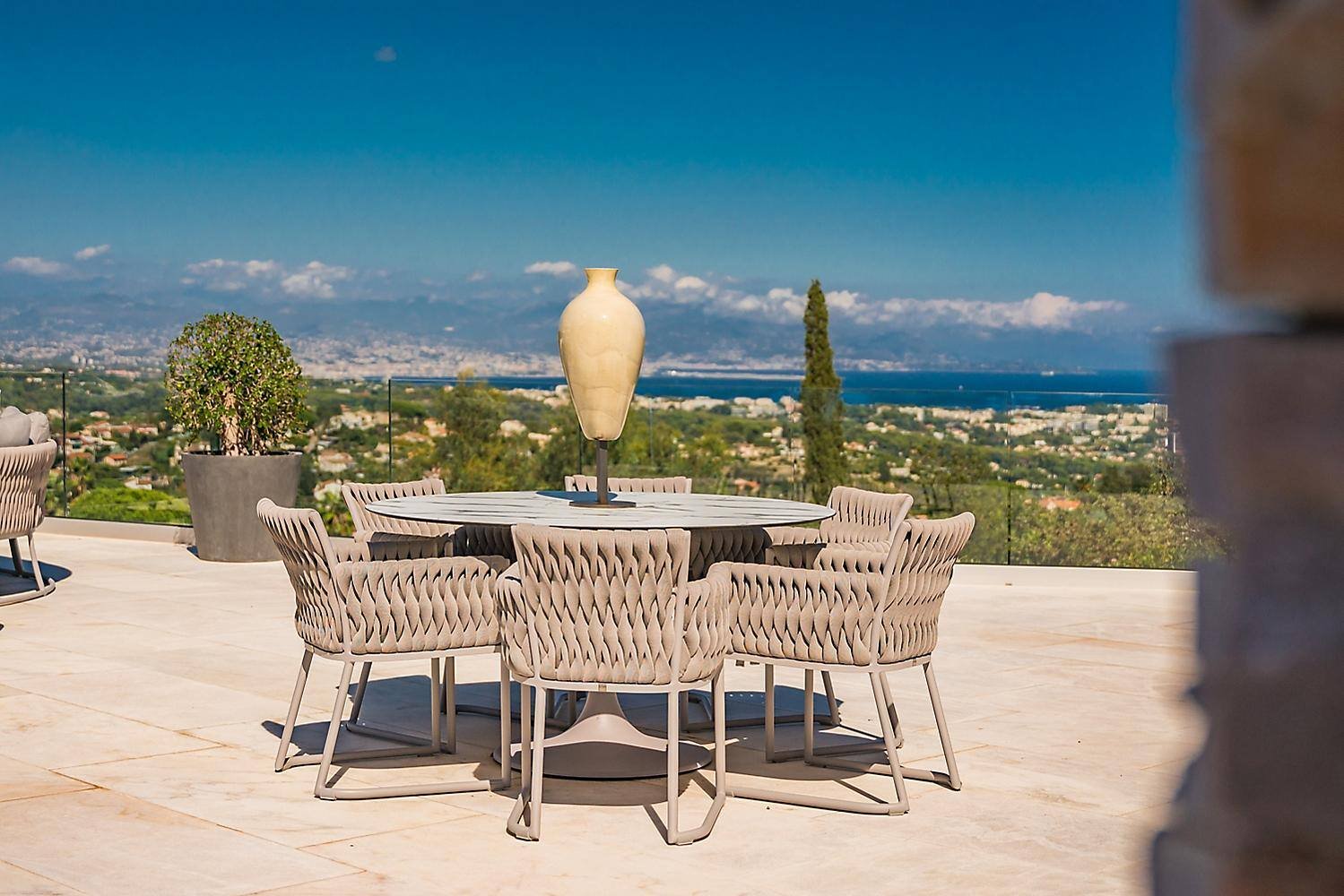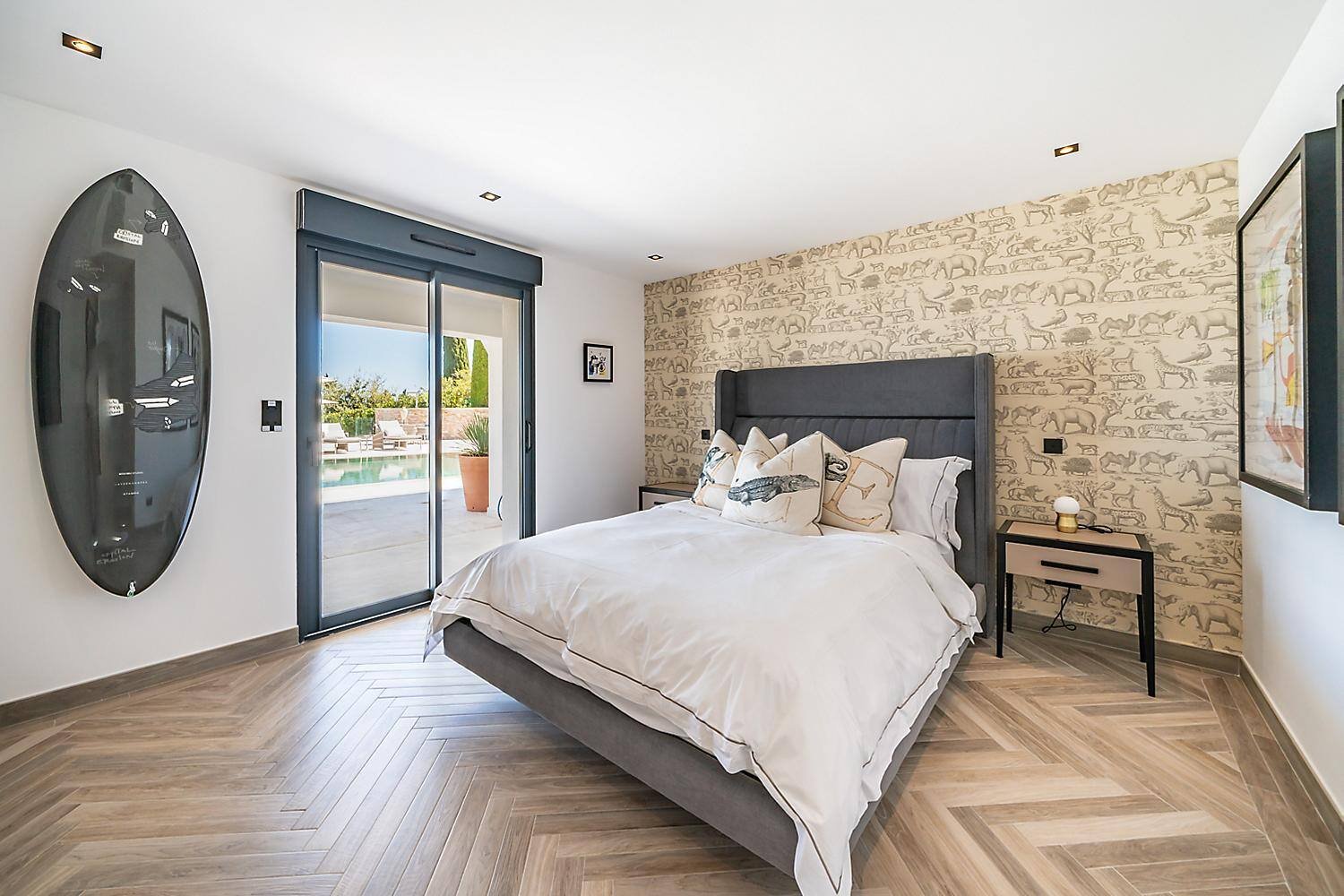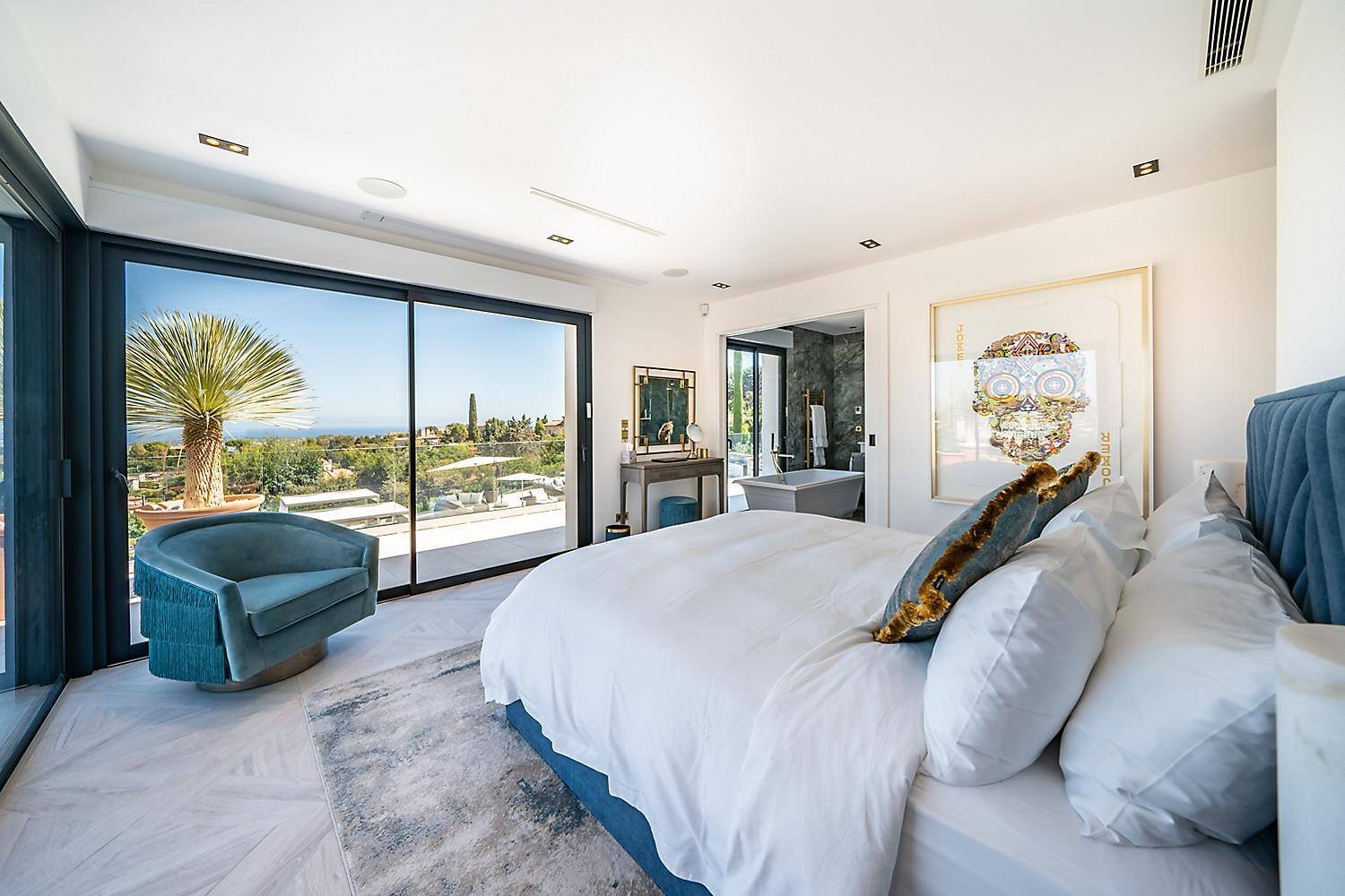 Villa Palm is nestled within the elite environs of Super Cannes, boasting stunning, expansive vistas that span from the often snow-capped peaks of Les Alpes-Maritimes to the sparkling azure of the Mediterranean Sea. The spacious open-concept living room on the top floor leverages these awe-inspiring views with wall-to-wall glass doors, and a cutting-edge kitchen situates this area as an entertainer’s dream. Distinctive artwork and meticulous attention to detail resonate throughout the residence, with all five ensuite bedrooms embodying luxury and finesse. The master suite is a haven of opulence, featuring a private terrace, a generous dressing room, and an exquisite bathroom complemented by a standalone bathtub.