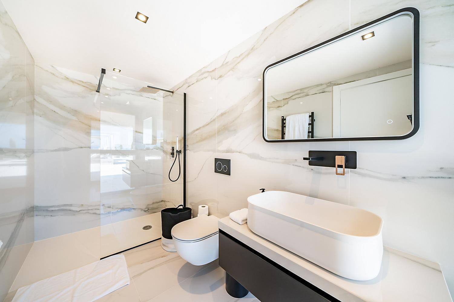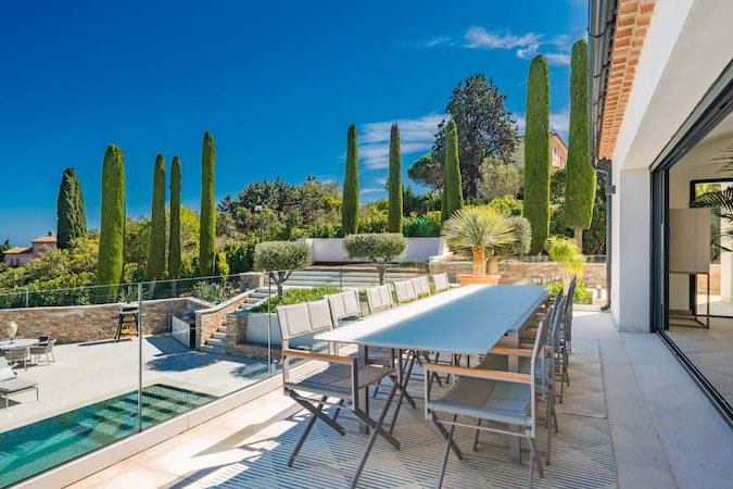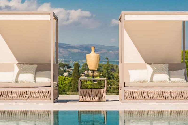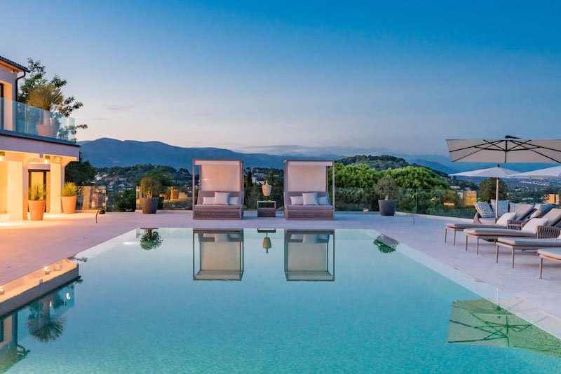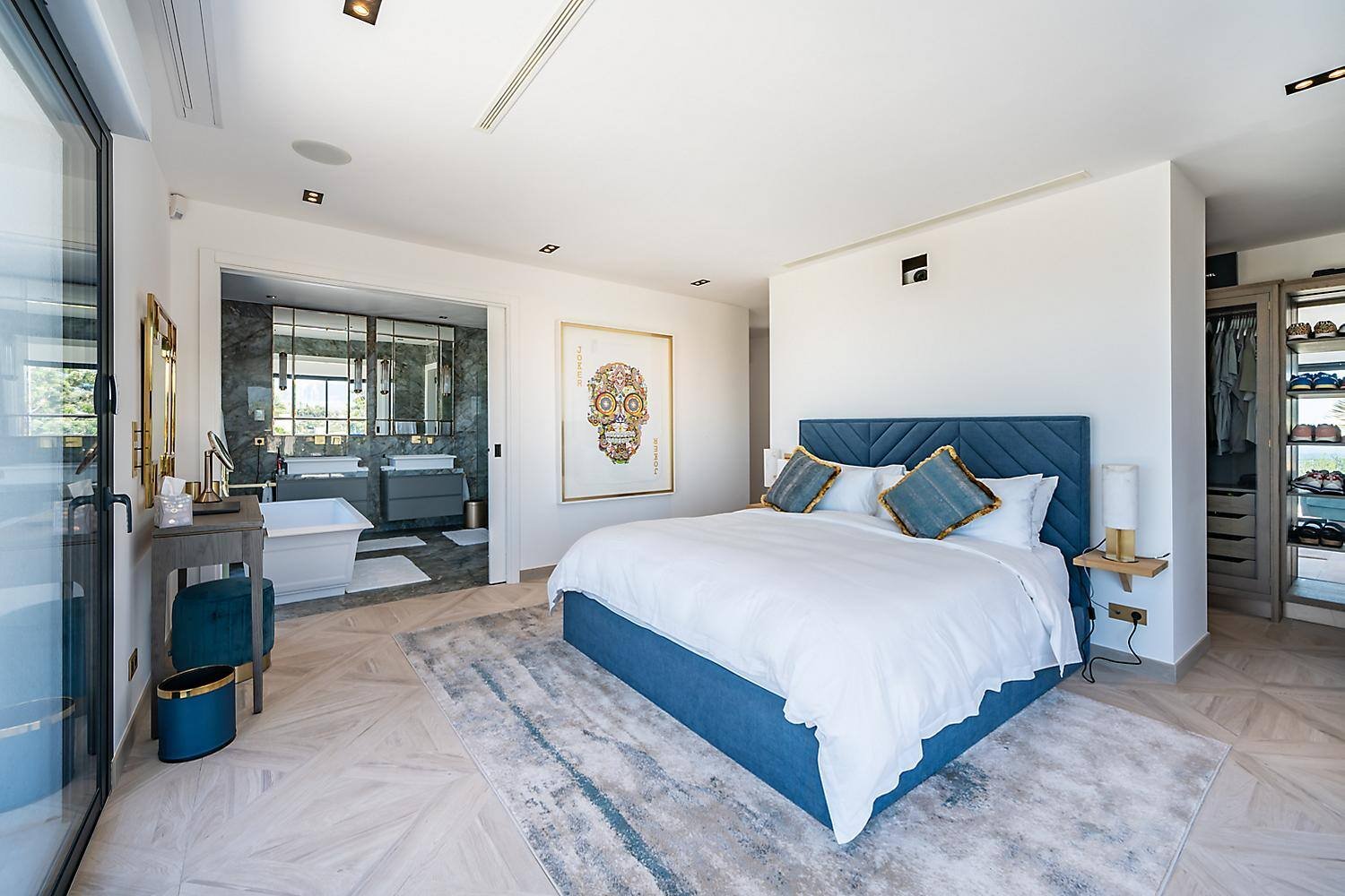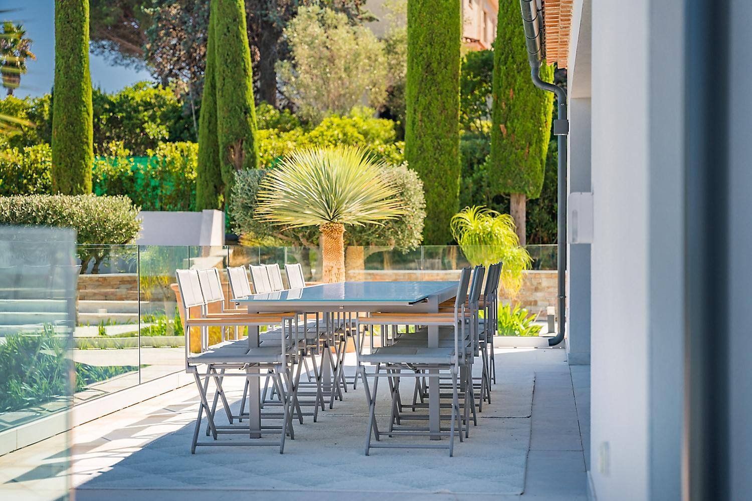 Villa Palm is nestled within the elite environs of Super Cannes, boasting stunning, expansive vistas that span from the often snow-capped peaks of Les Alpes-Maritimes to the sparkling azure of the Mediterranean Sea. The spacious open-concept living room on the top floor leverages these awe-inspiring views with wall-to-wall glass doors, and a cutting-edge kitchen situates this area as an entertainer’s dream. Distinctive artwork and meticulous attention to detail resonate throughout the residence, with all five ensuite bedrooms embodying luxury and finesse. The master suite is a haven of opulence, featuring a private terrace, a generous dressing room, and an exquisite bathroom complemented by a standalone bathtub.