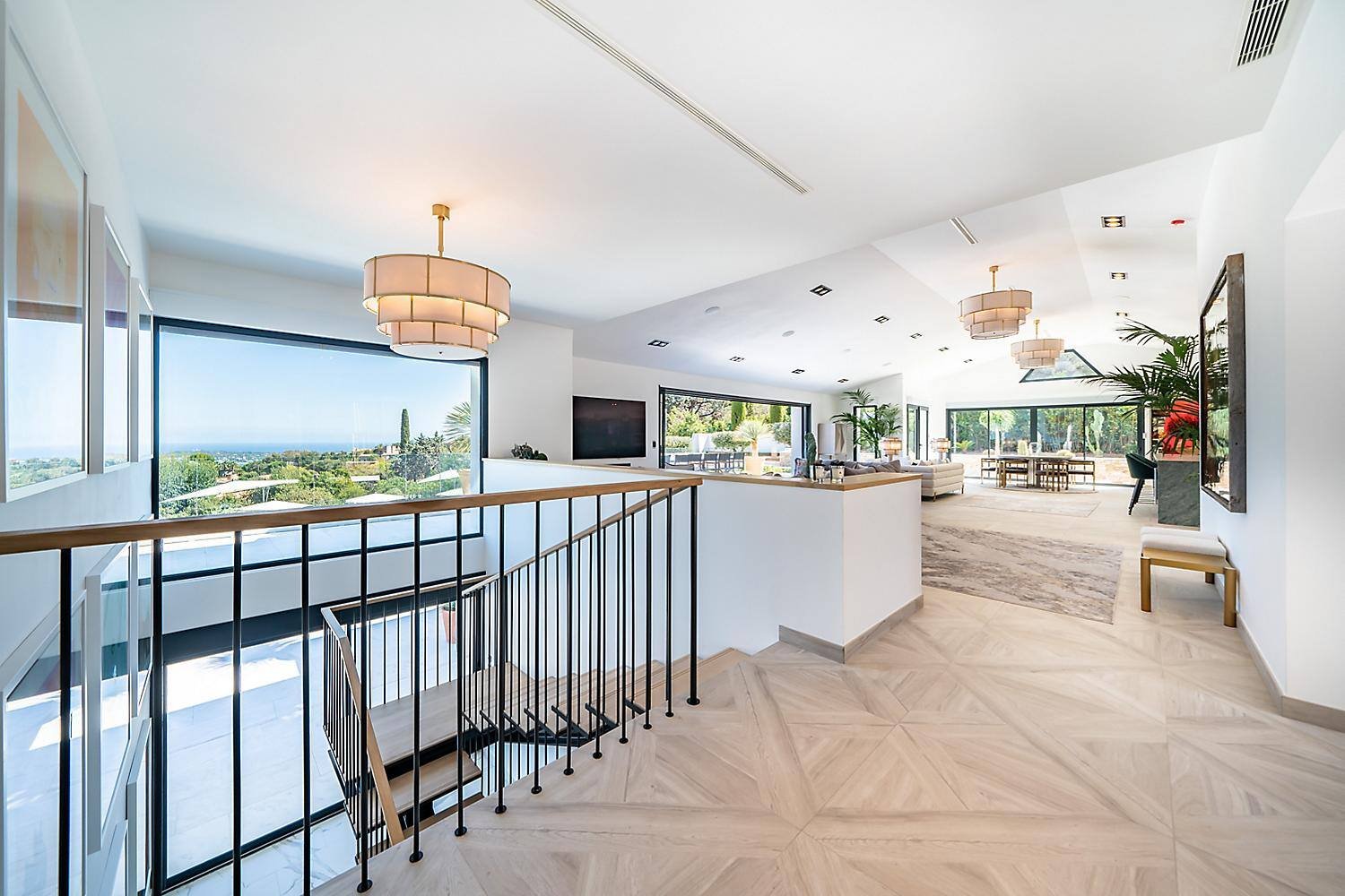 Externally, the extensive pool terrace presents the perfect venue to embrace the area’s balmy climate. The upper terrace expands the grand living space, providing a seamless blend of indoor and outdoor dining experiences, all while offering an additional perspective to appreciate the scenic surroundings. Magnificent tiered gardens envelop the property’s forefront, and an elegant, winding driveway sets the stage for a grand entry.