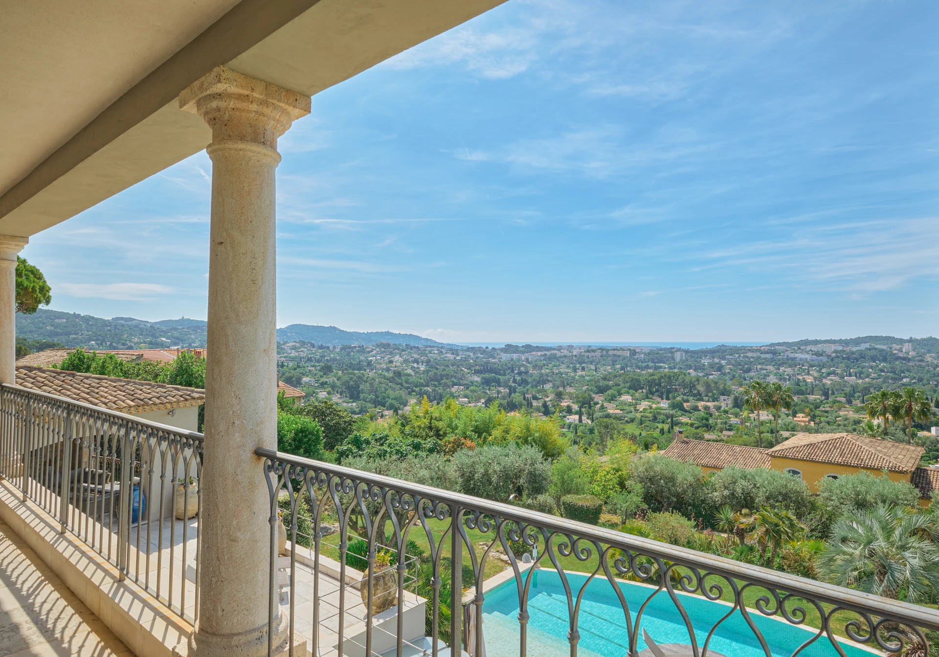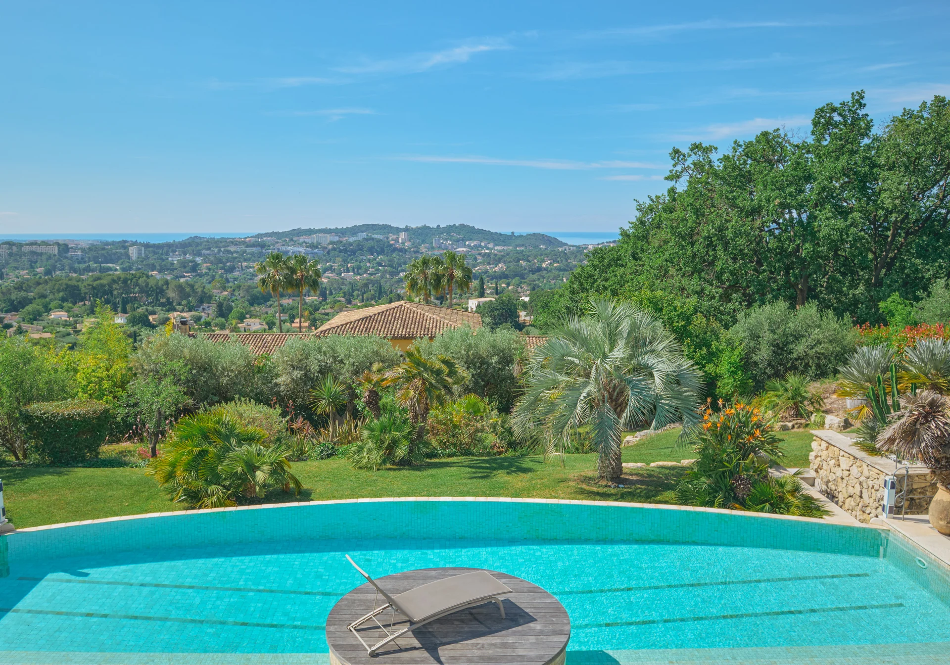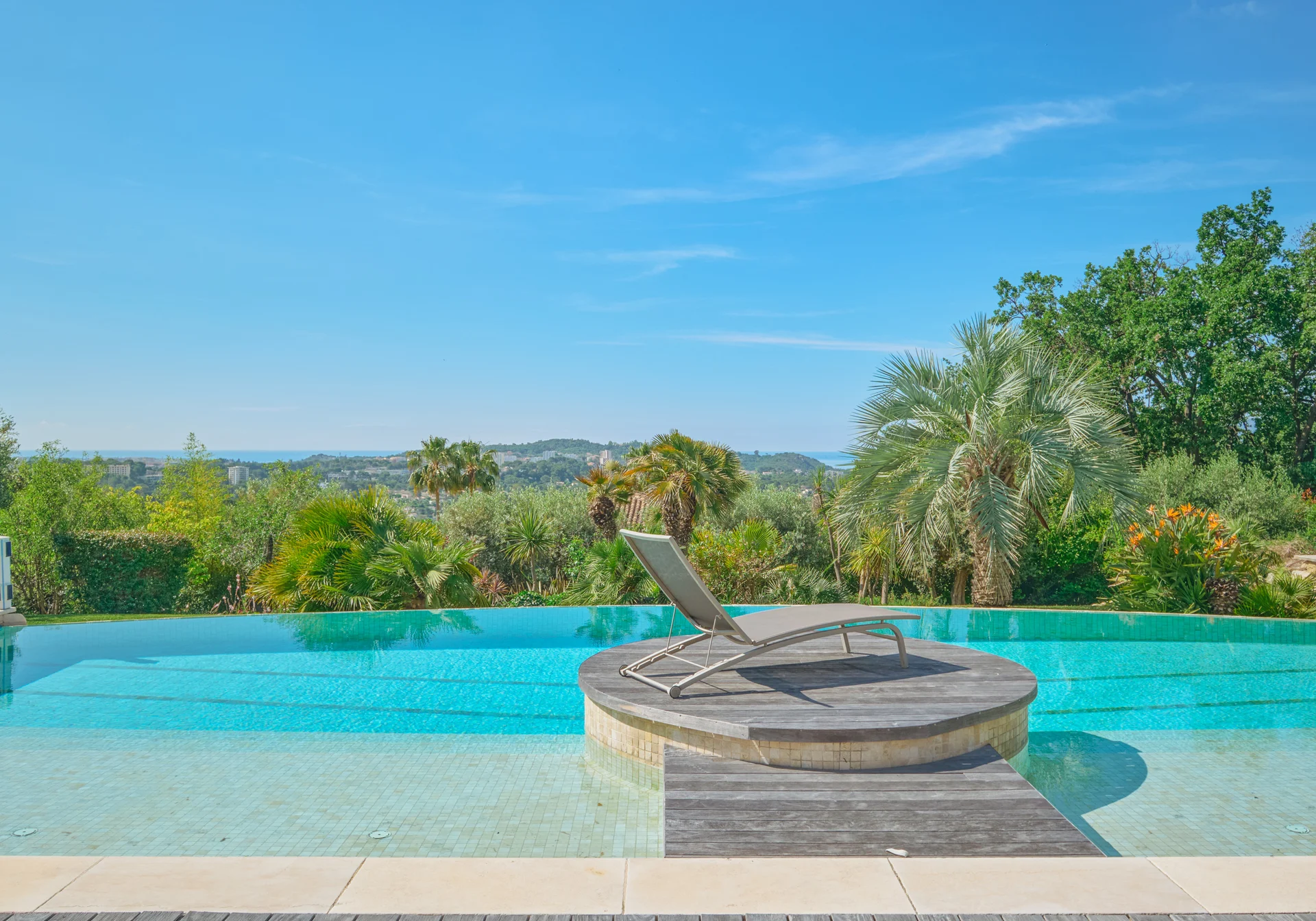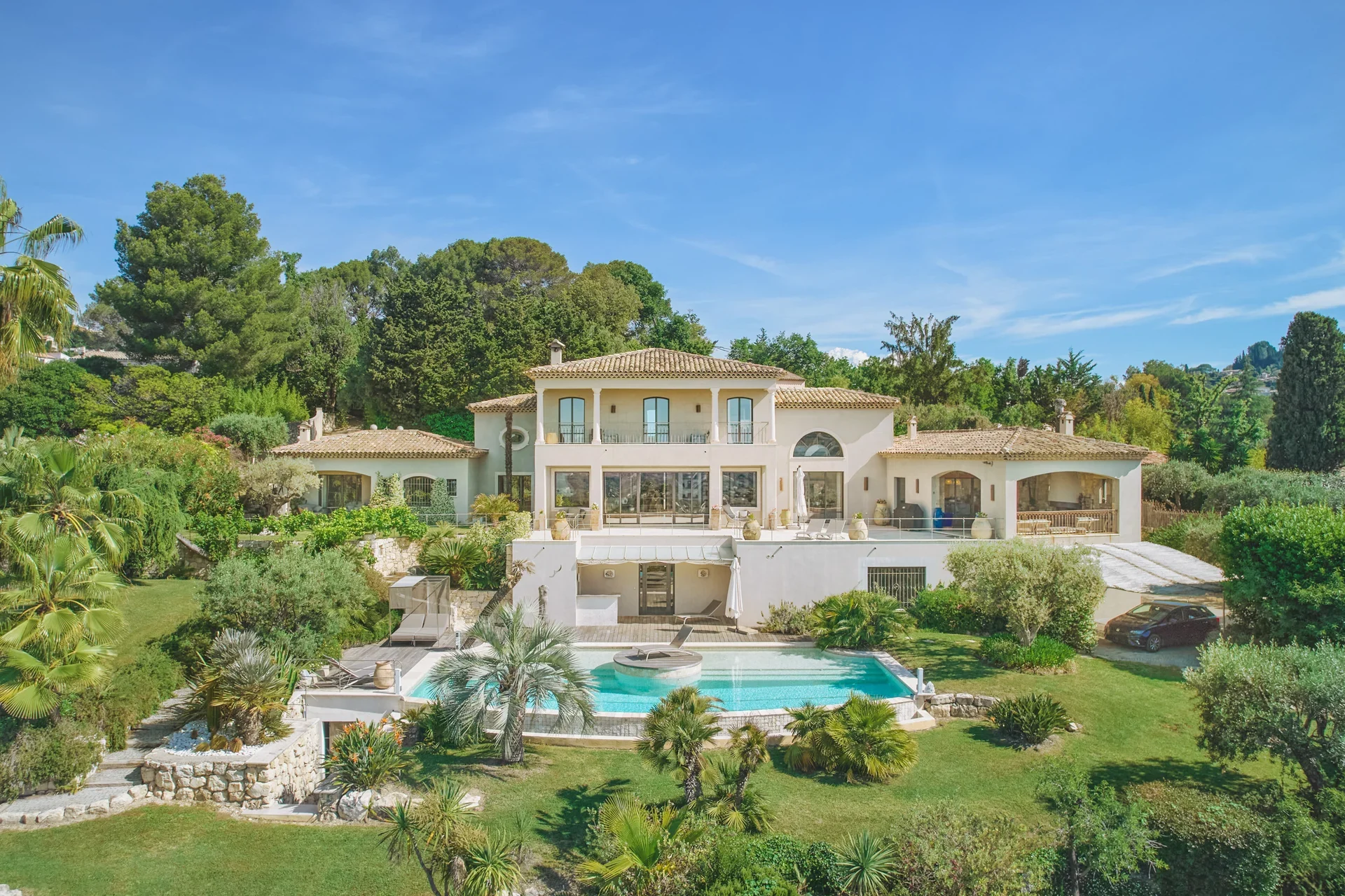 Nestled in the hillside of Mougins on the French Riviera, this luxury vacation villa is conveniently located only a 6-minute drive from the historic old town and a 20-minute drive from the sandy beaches of Cannes. The standout features of this property include a wellness area with a sauna, hammam, and gym equipment, a games room, a large infinity pool surrounded by lush gardens, and breathtaking views of the Mediterranean Sea and surrounding landscape.