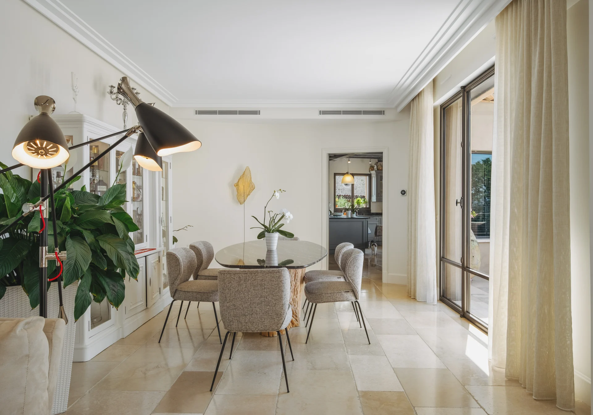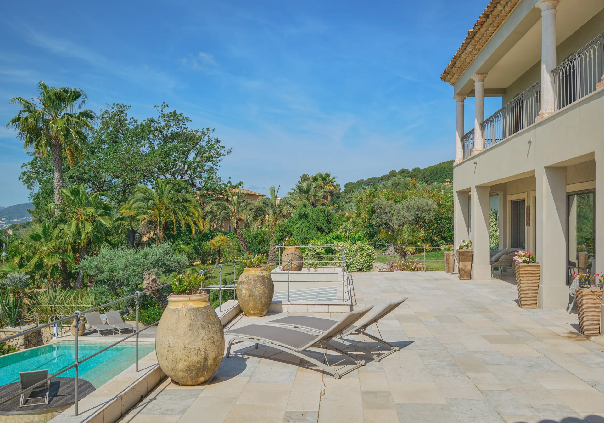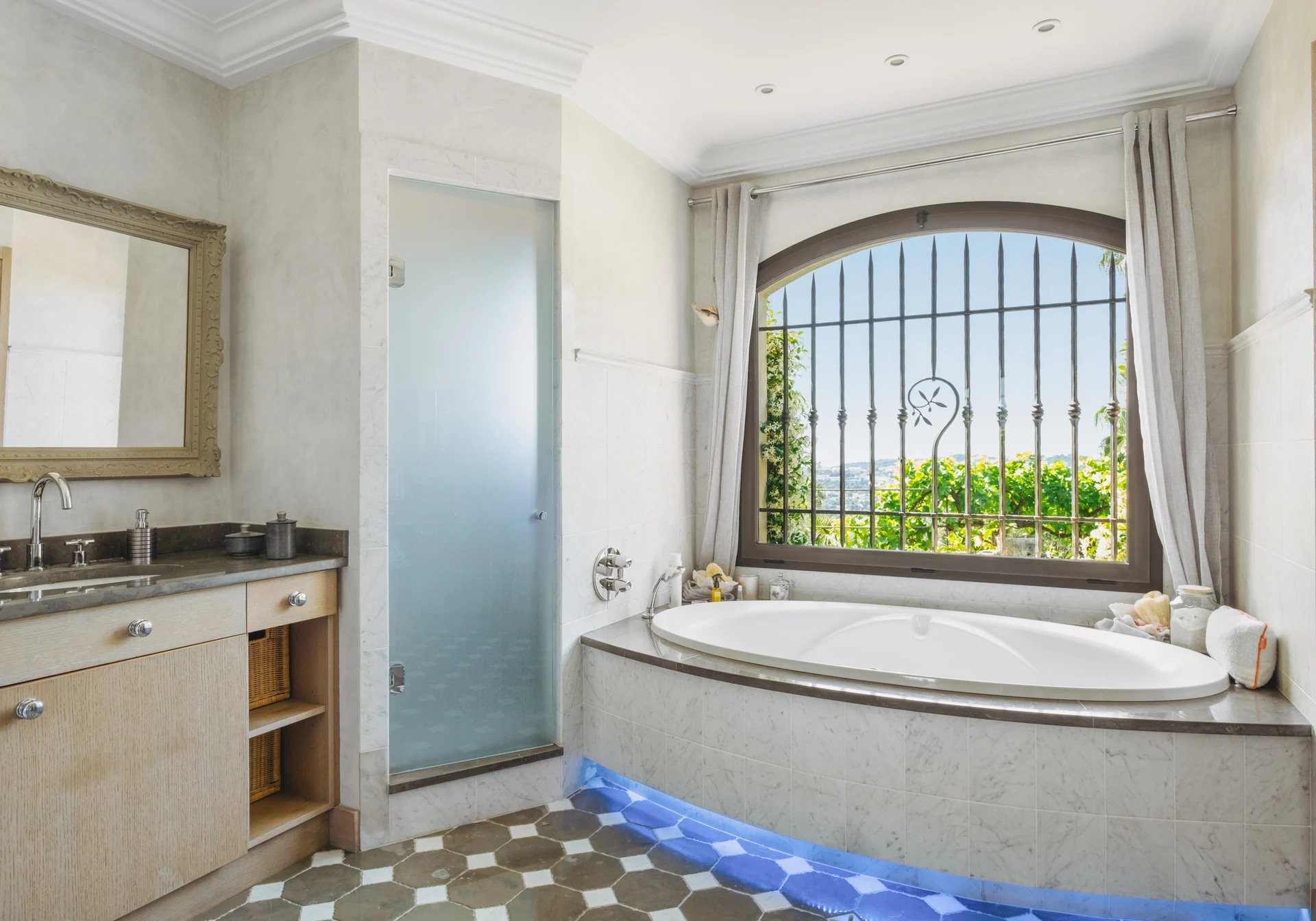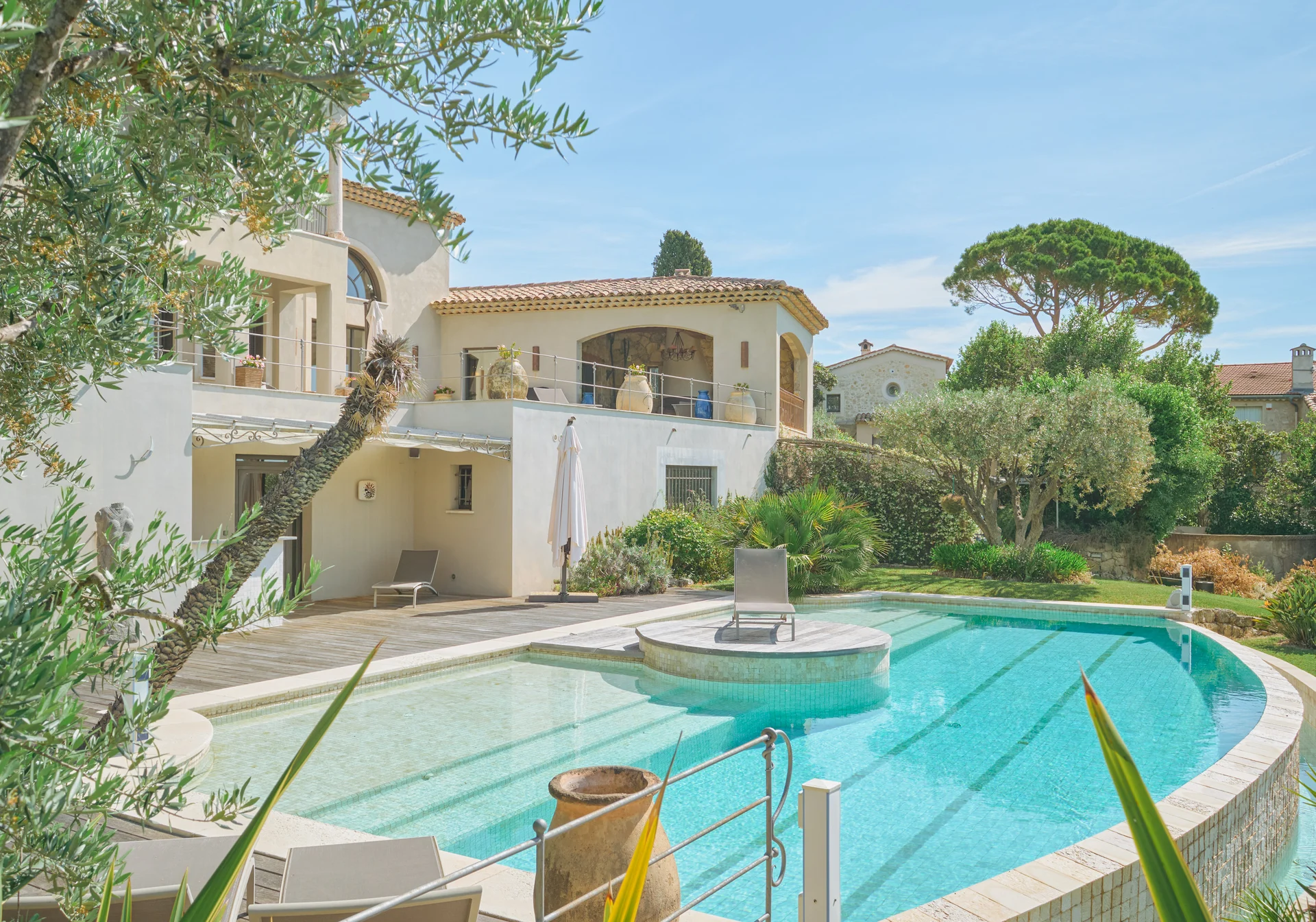 This elegant Neo-Provencal villa combines timeless French Riviera charm with modern comforts. Its sophisticated interiors are accentuated by tasteful furnishings, high ceilings, and large windows that fill the home with natural light. The design seamlessly blends classic Provencal architecture with contemporary luxury, creating a serene and stylish retreat.