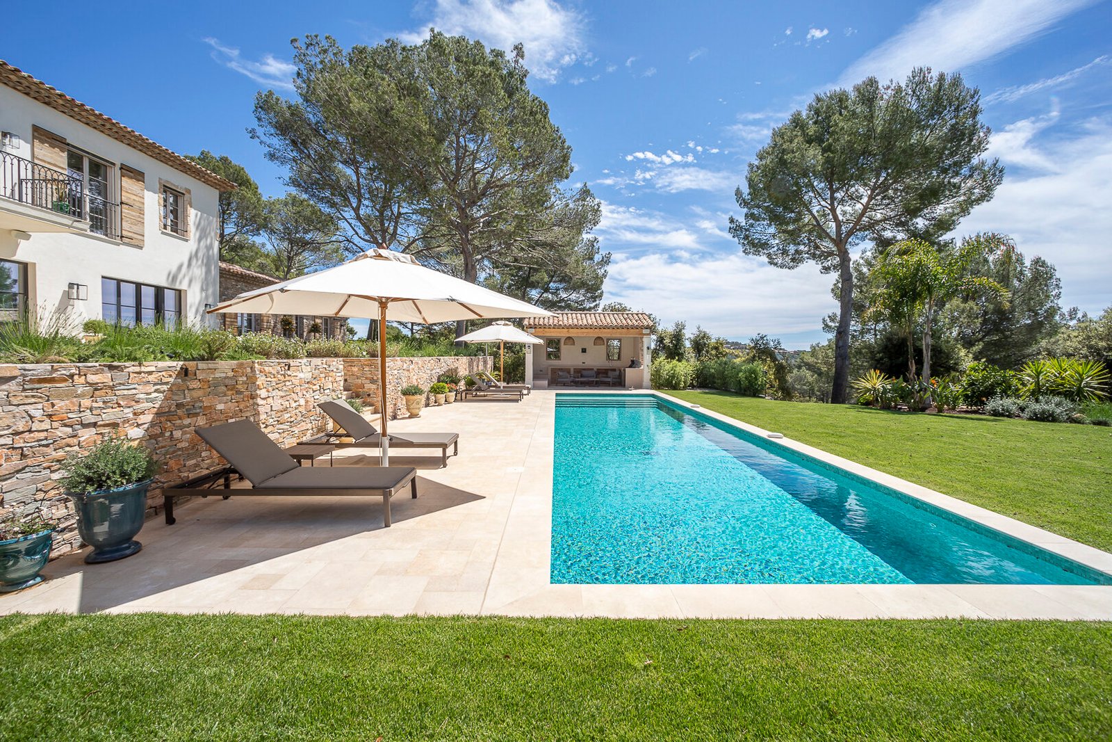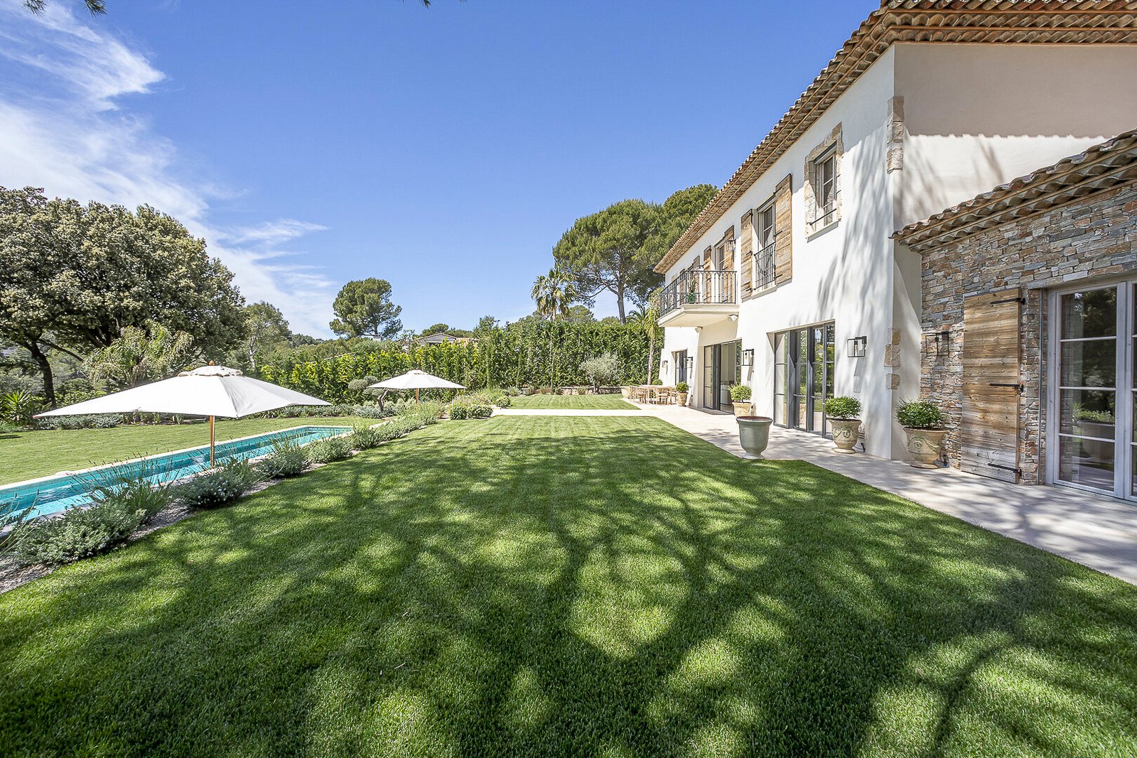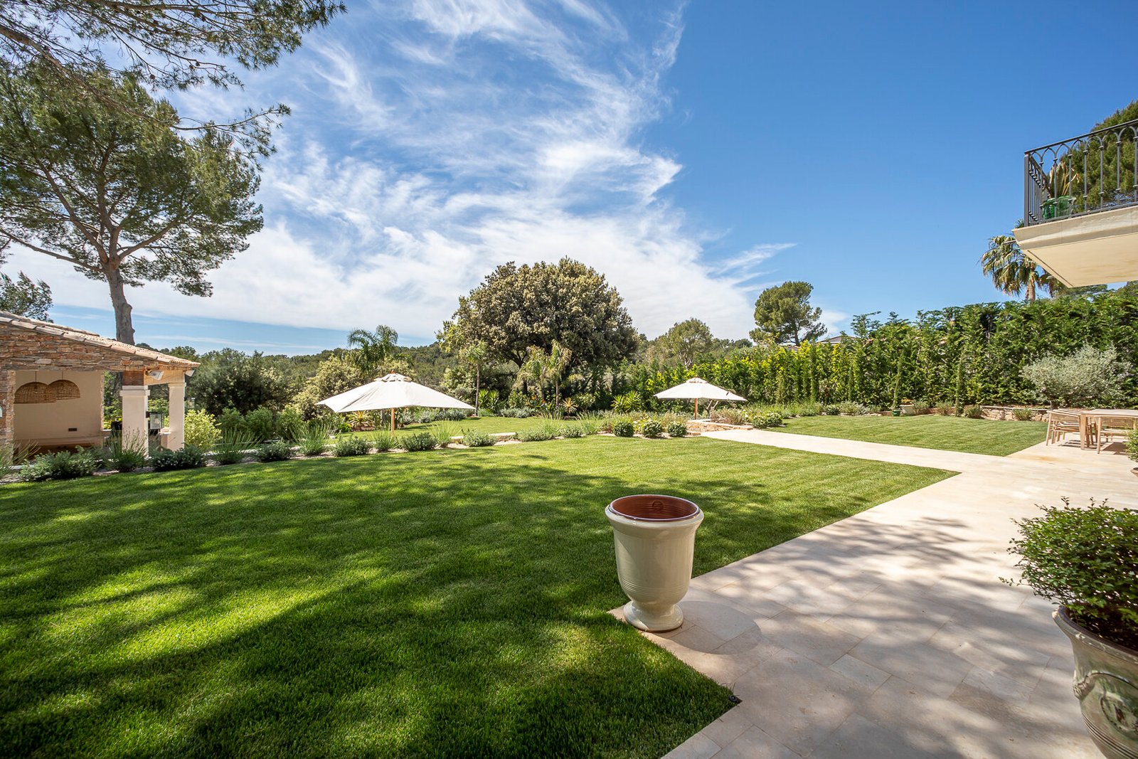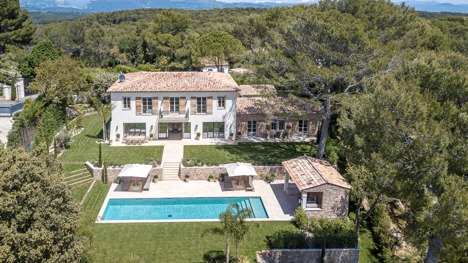 Villa Paradise is one of the most thought after properties sitting on 6,269 of land offering stunning views on the Iles de Lérins and the French Alpes. It’s an exceptional property with panoramic views on the surrounding seas ideally located in Super Cannes, just a 10 minutes drive from la Croisette. With the utmost luxury amenities, large and elegant indoor volumes, and an additional 70m² outbuilding for guests or staff, this 545m² villa redesigned by Gilles Pellerin comes with stunning southern exposure. It has a large main entrance, a triple reception and an indoor and outdoor dining room on the ground floor, as well as a room with an en-suite bathroom. The upper floor comes with 4 rooms with ensuite bathrooms and a master bedroom and dressing room. The lower floor accommodates a wine cellar, a home cinema, billiard and kitchen. The villa also features an apartment for staff with 2 rooms and separated toilets.