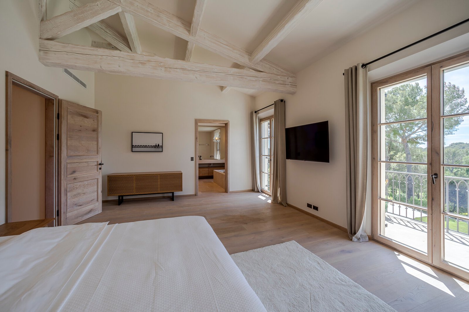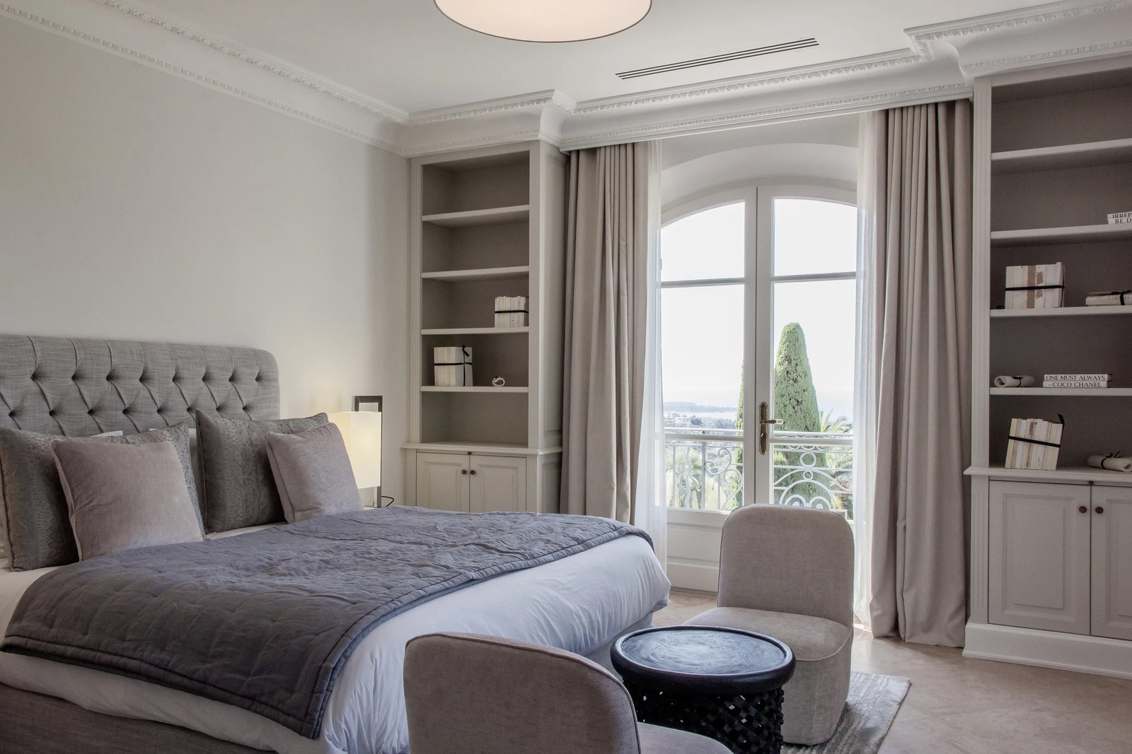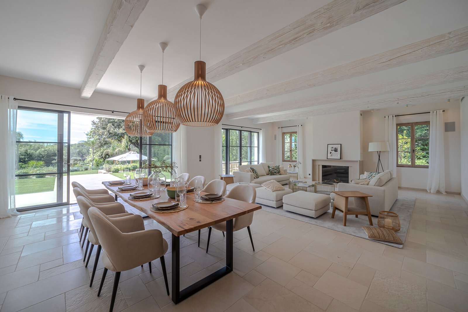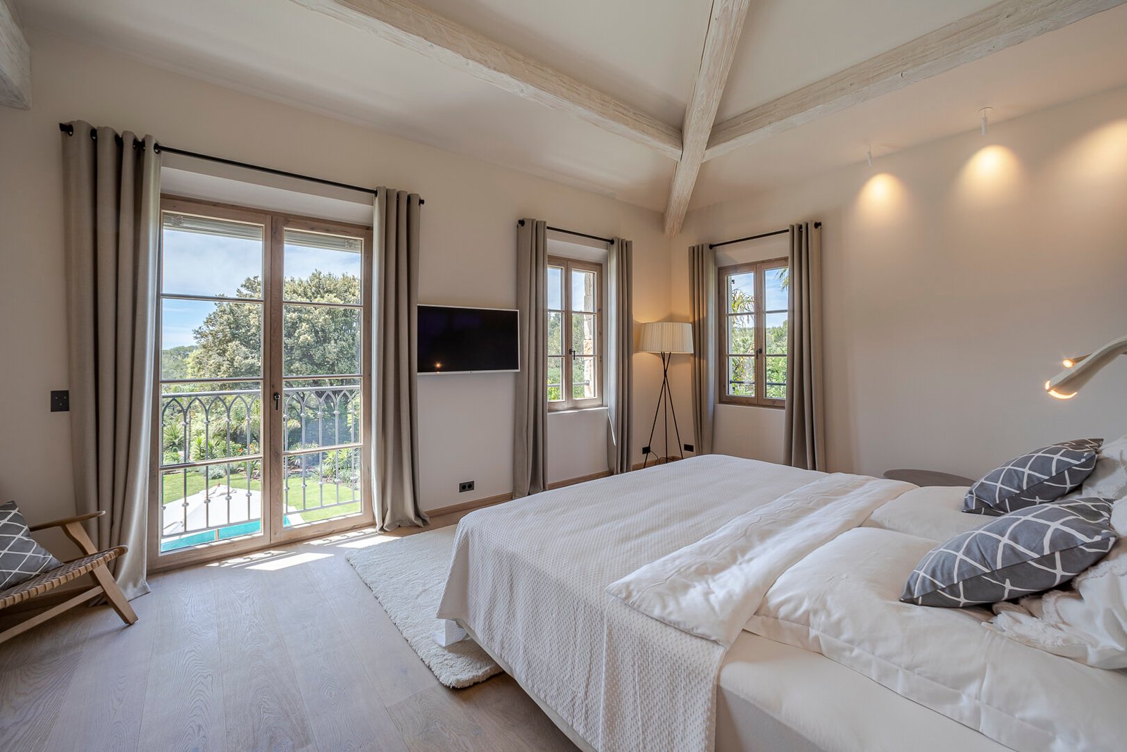 Villa Paradise is one of the most thought after properties sitting on 6,269 of land offering stunning views on the Iles de Lérins and the French Alpes. It’s an exceptional property with panoramic views on the surrounding seas ideally located in Super Cannes, just a 10 minutes drive from la Croisette. With the utmost luxury amenities, large and elegant indoor volumes, and an additional 70m² outbuilding for guests or staff, this 545m² villa redesigned by Gilles Pellerin comes with stunning southern exposure. It has a large main entrance, a triple reception and an indoor and outdoor dining room on the ground floor, as well as a room with an en-suite bathroom. The upper floor comes with 4 rooms with ensuite bathrooms and a master bedroom and dressing room. The lower floor accommodates a wine cellar, a home cinema, billiard and kitchen. The villa also features an apartment for staff with 2 rooms and separated toilets.