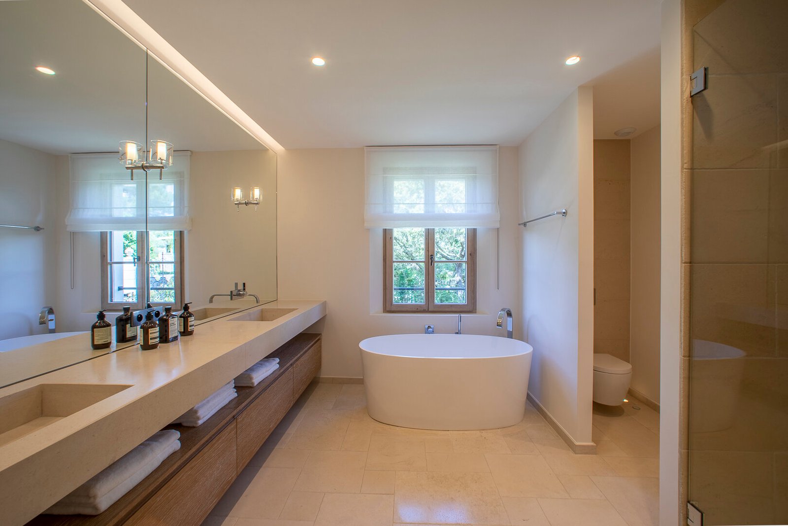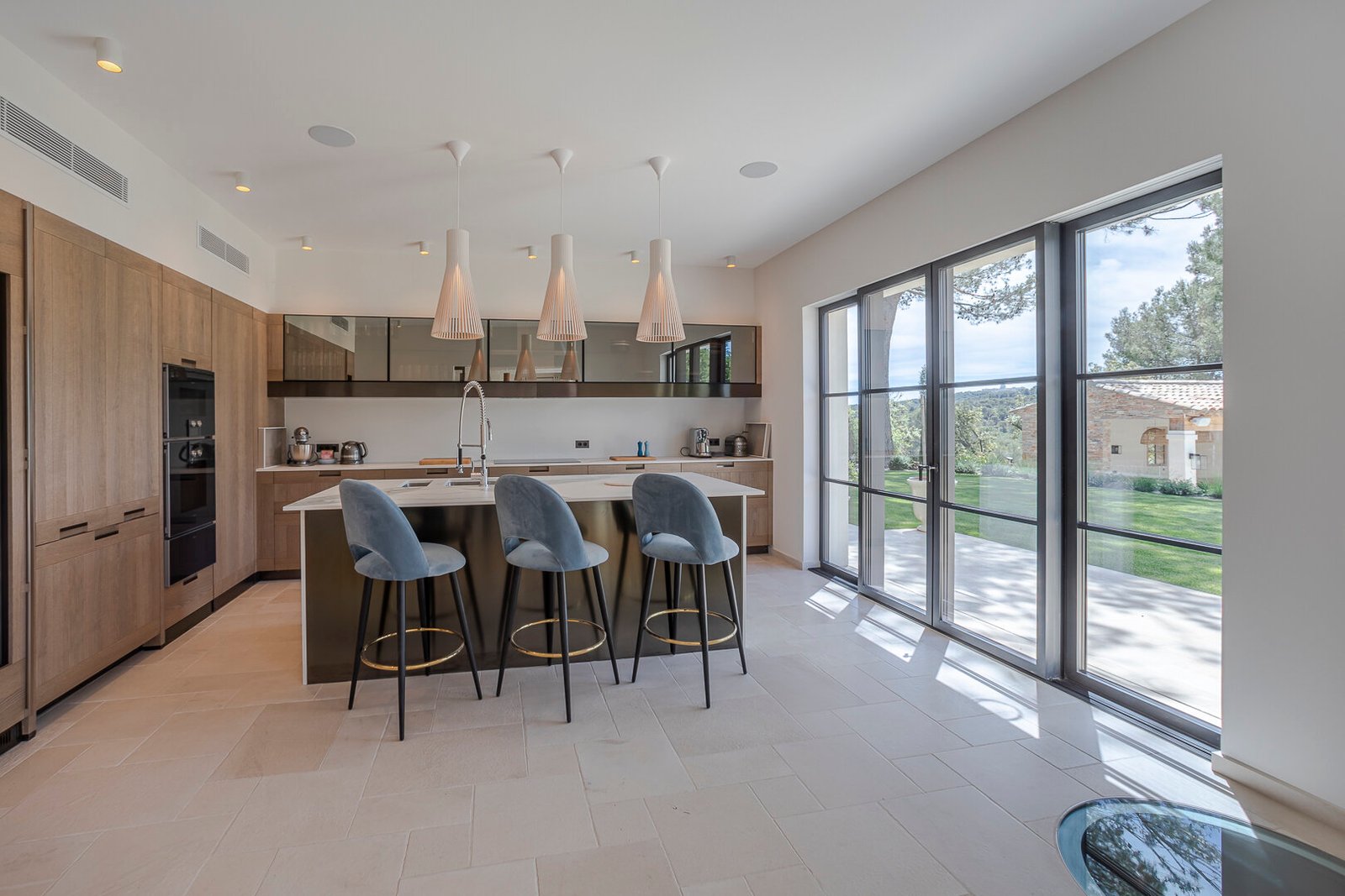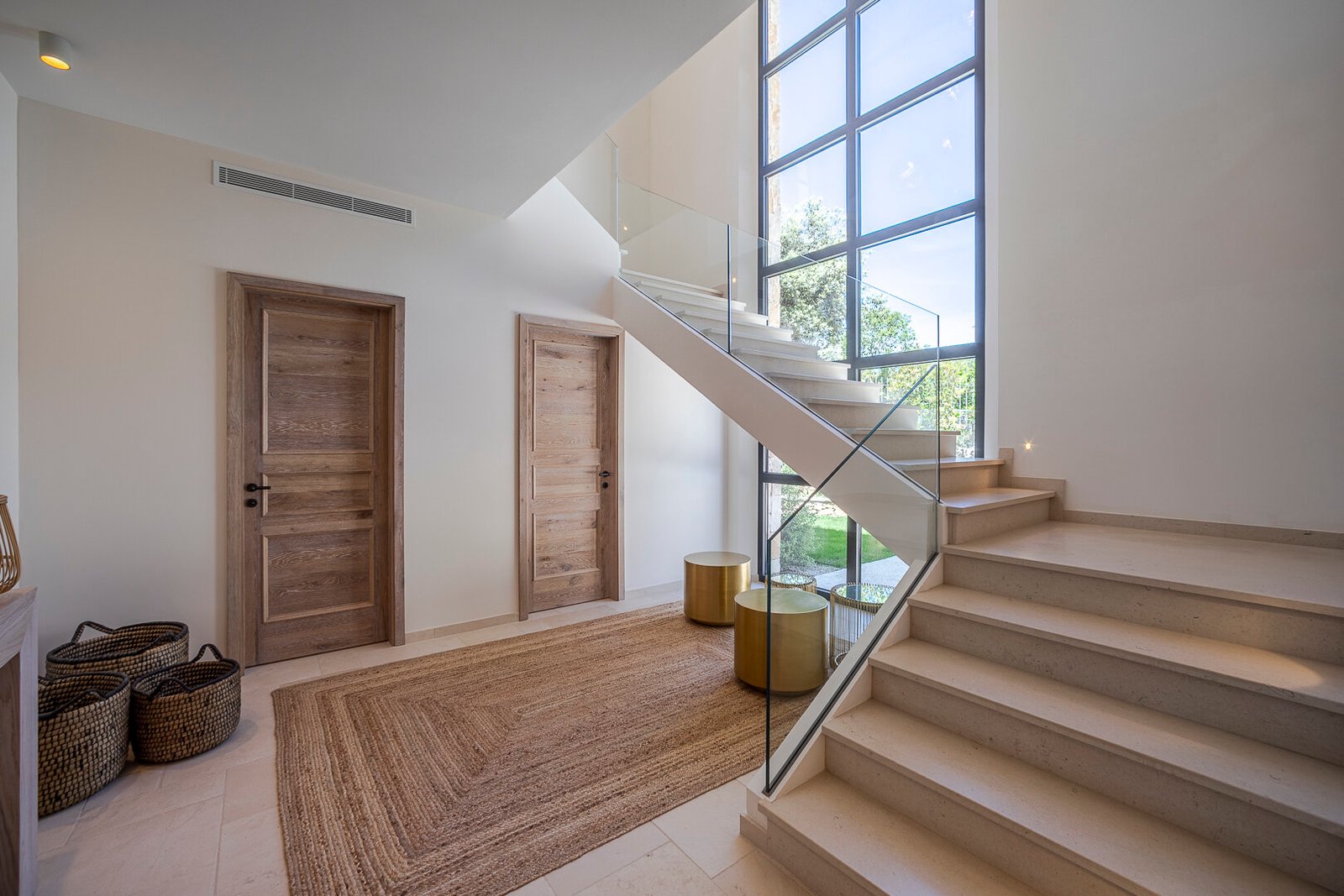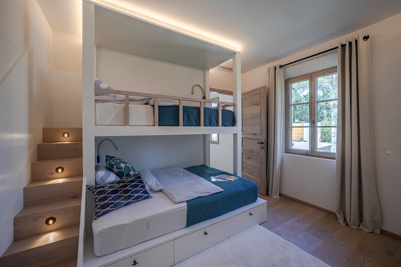 Villa Paradise is one of the most thought after properties sitting on 6,269 of land offering stunning views on the Iles de Lérins and the French Alpes. It’s an exceptional property with panoramic views on the surrounding seas ideally located in Super Cannes, just a 10 minutes drive from la Croisette. With the utmost luxury amenities, large and elegant indoor volumes, and an additional 70m² outbuilding for guests or staff, this 545m² villa redesigned by Gilles Pellerin comes with stunning southern exposure. It has a large main entrance, a triple reception and an indoor and outdoor dining room on the ground floor, as well as a room with an en-suite bathroom. The upper floor comes with 4 rooms with ensuite bathrooms and a master bedroom and dressing room. The lower floor accommodates a wine cellar, a home cinema, billiard and kitchen. The villa also features an apartment for staff with 2 rooms and separated toilets.