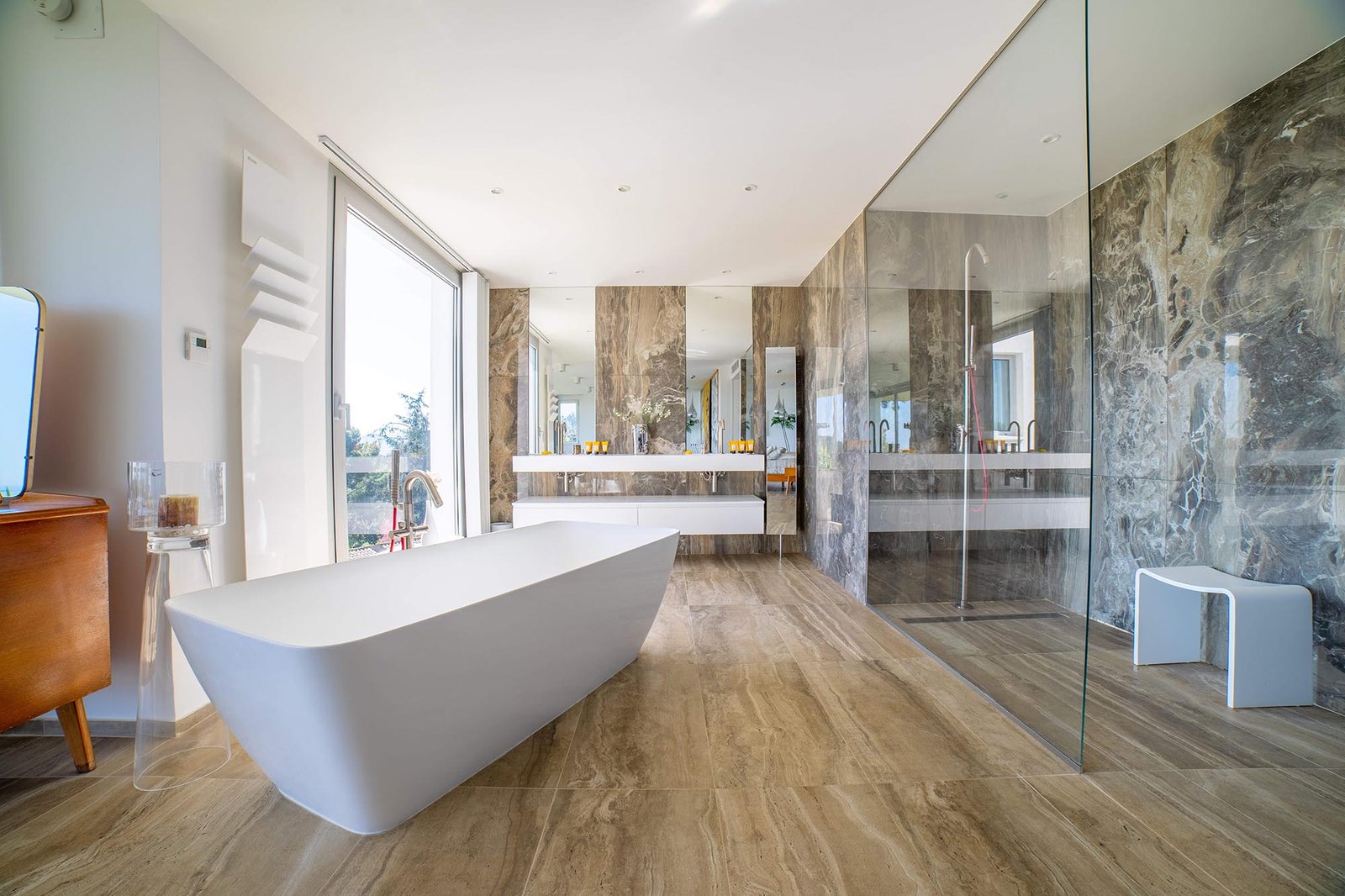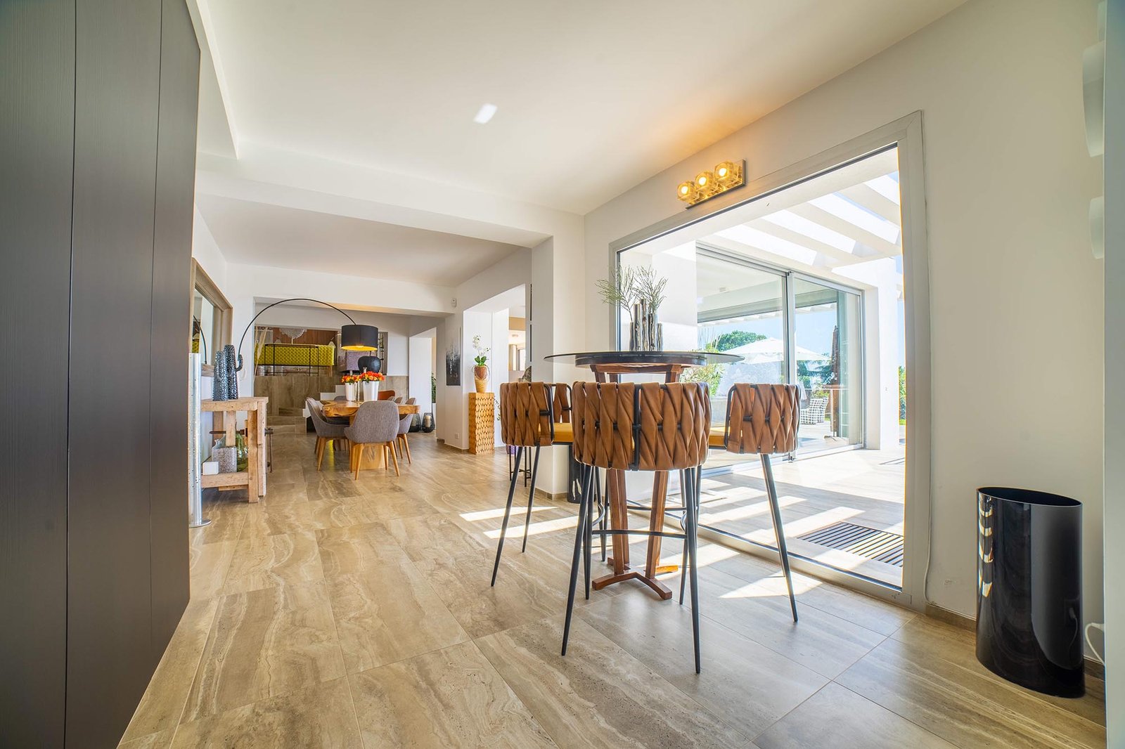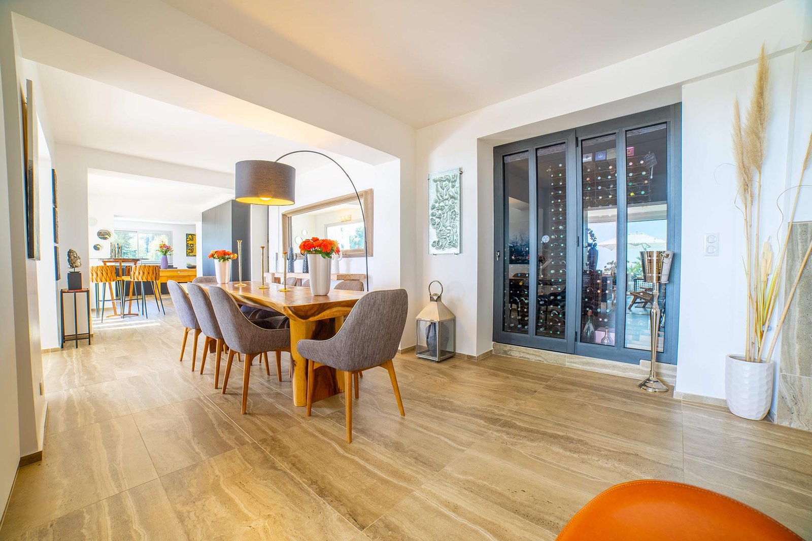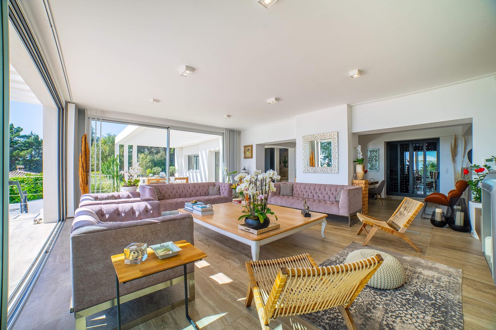 Tucked away peacefully amidst a lush pine forest lies a magnificent contemporary villa that sprawls over approximately 500sqm. This architectural masterpiece, adorned with fittings of unmatched quality, bestows upon its occupants a stunning panoramic view of the sea from every corner of the main residence.