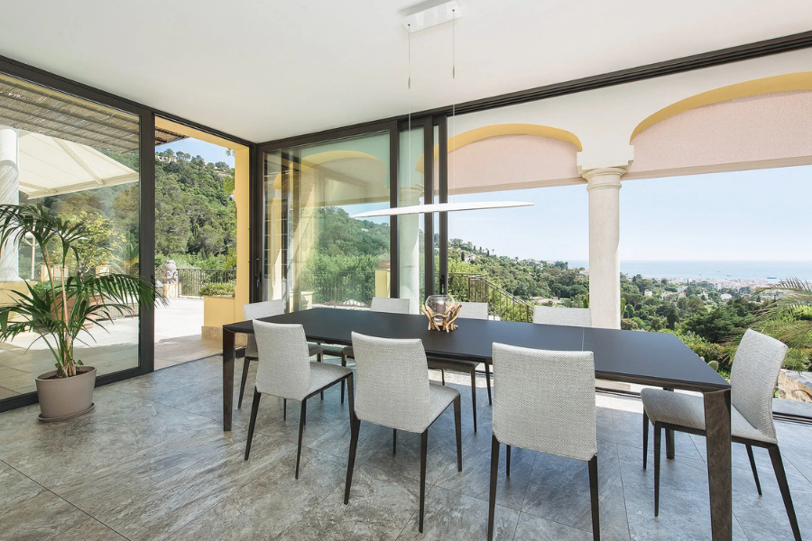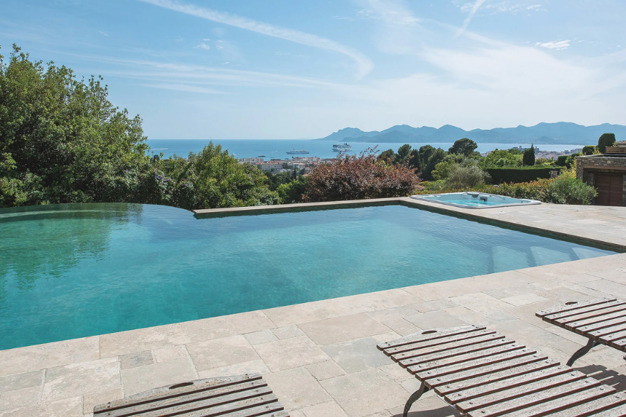 Nestled in the tranquil hills of Cannes, this luxurious holiday villa boasts an enviable location, just a short 10-minute drive from the city center and the iconic sandy beaches of La Croisette. The villa’s impressive features include a home gym, a hammam, a wine cellar, a heated pool, a hot tub, and stunning panoramic views of the Mediterranean Sea.