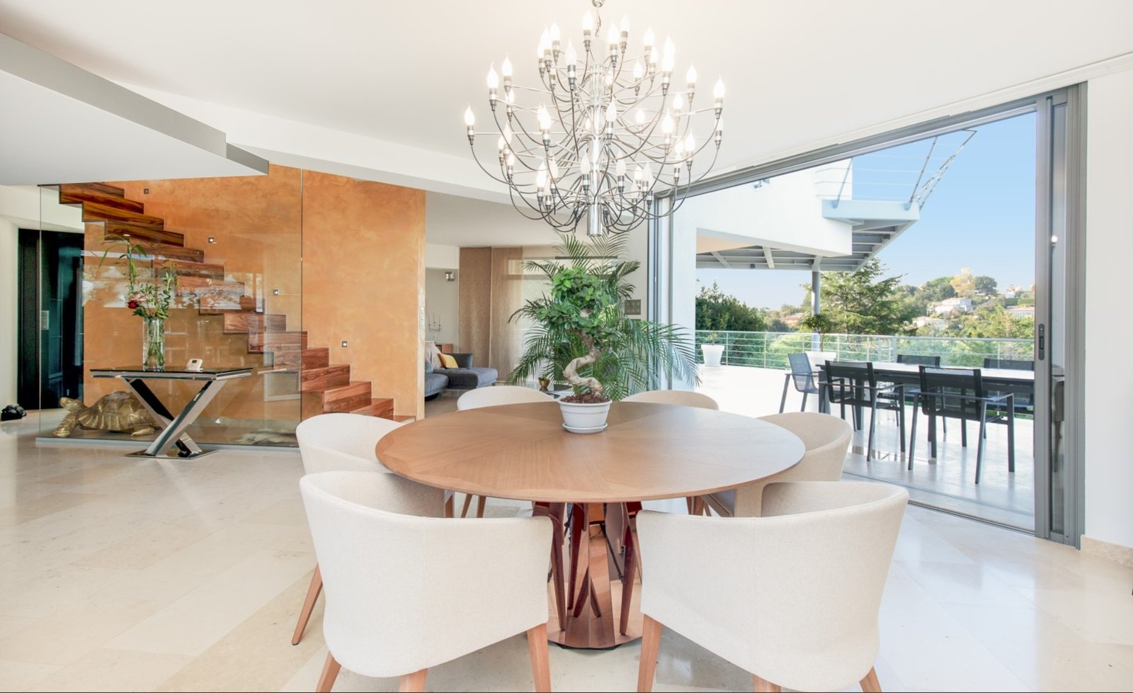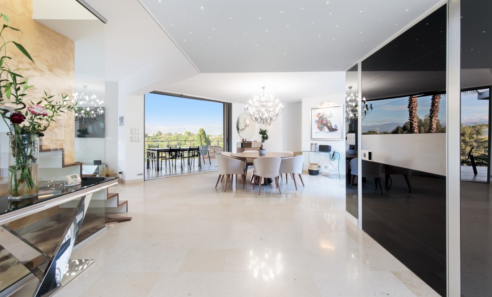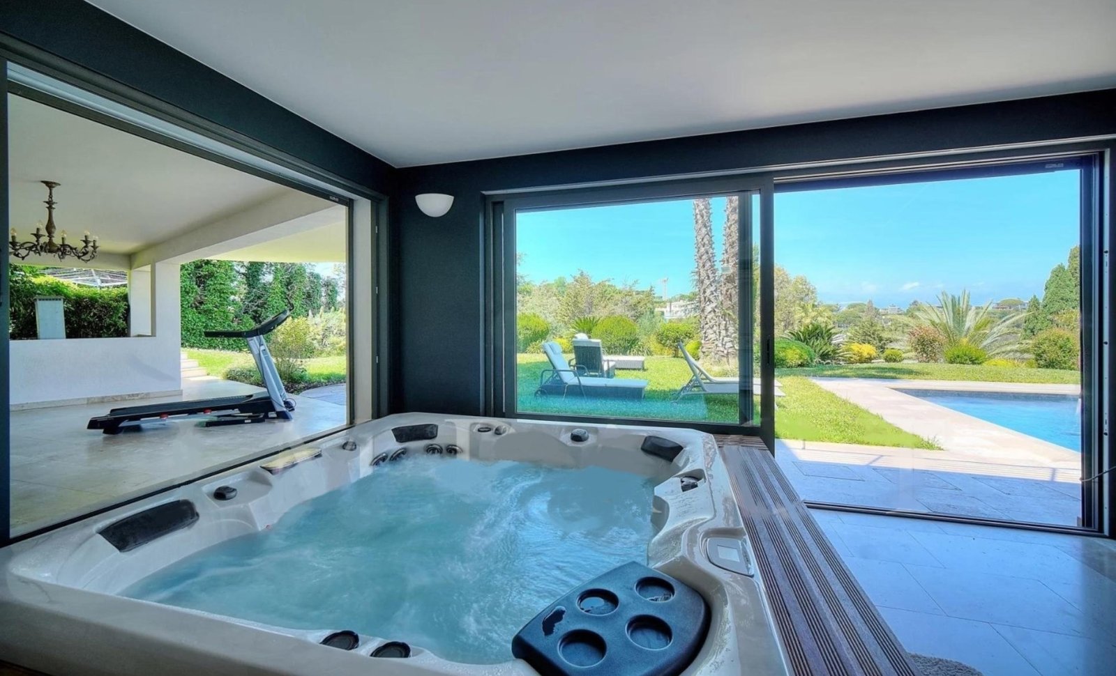 Quiet and private with a beautiful view of the Alps, this contemporary villa spans 345m2 and features 5 en-suite bedrooms with their own bathrooms, toilets, dressing rooms, and equipped terraces. It includes a large office with fiber connection. The property boasts a secure heated swimming pool measuring 12m x 5m, an indoor spa, a home cinema, video surveillance alarm, a spacious garage for 2 vehicles, and numerous outdoor parking spaces. The home is equipped with underfloor heating and ducted air conditioning throughout. It also features home automation. On the landscaped grounds of 4500m2, there is a large bocce ball court, providing a soothing place for true relaxation.