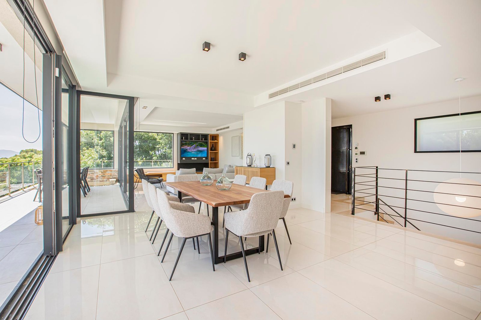 Villa The Palm is an exquisite architect-designed residence perched on the scenic hills of Cannes, offering breathtaking panoramic views of both the sea and the mountains. Facing south, the villa ensures complete privacy, allowing guests to enjoy the expansive terraces, a meticulously landscaped exotic garden, and a vast, heated infinity pool.
