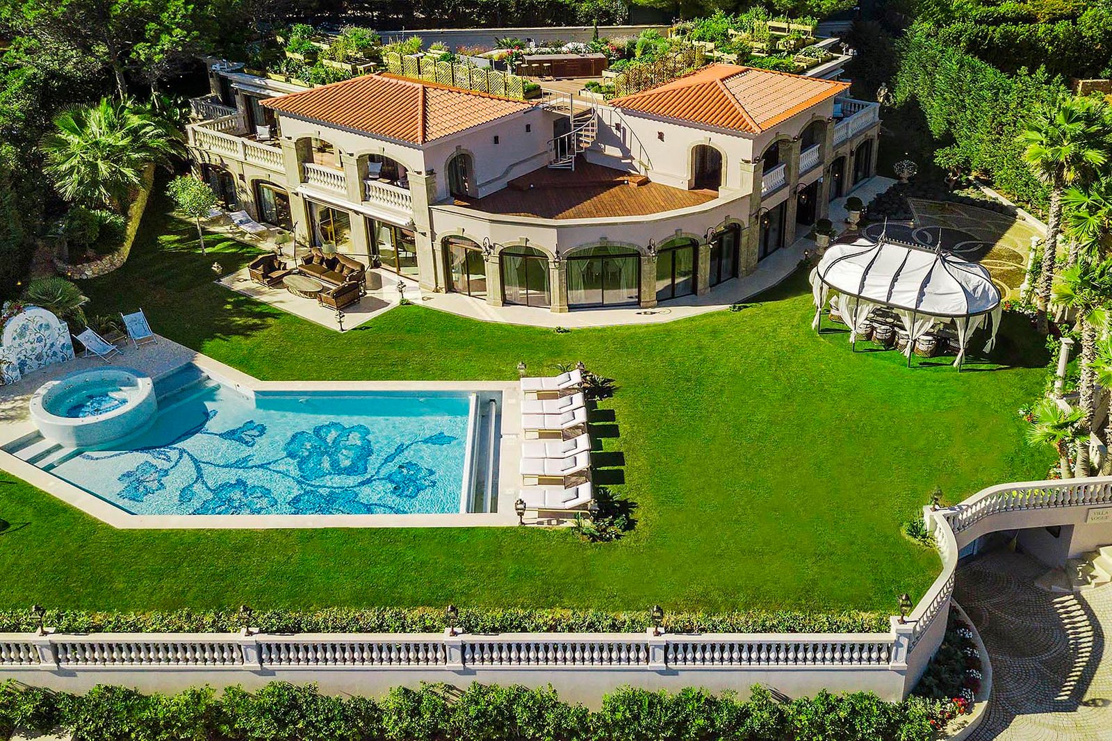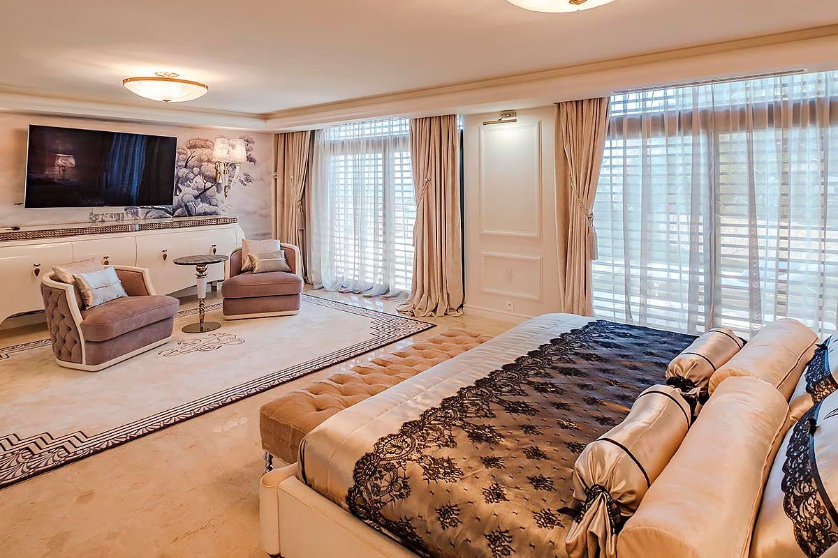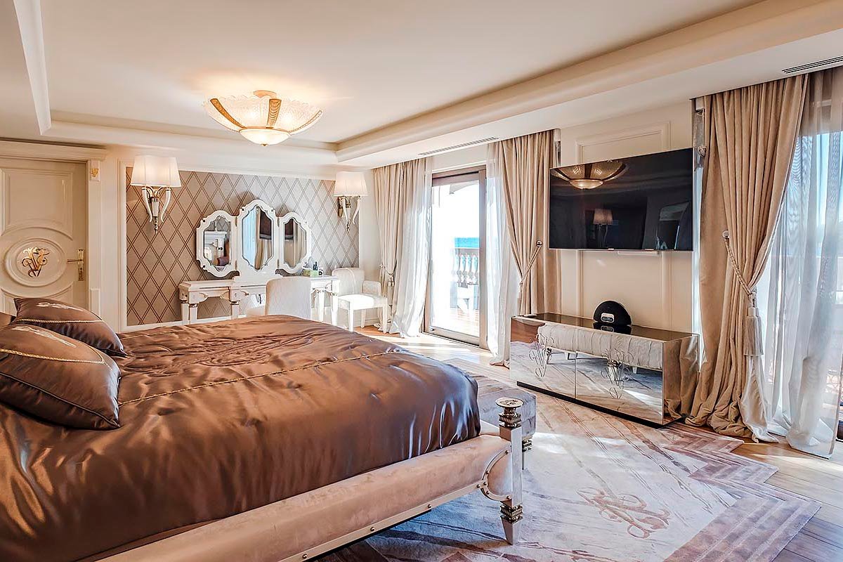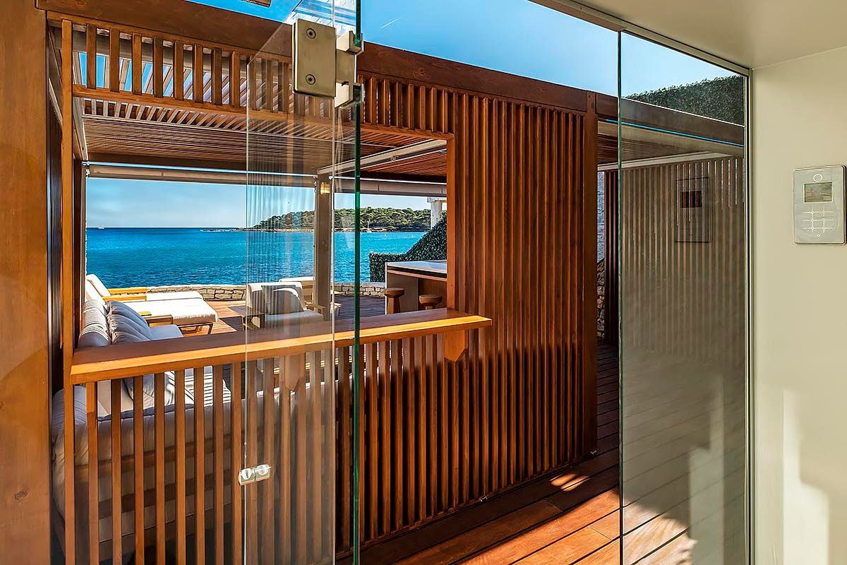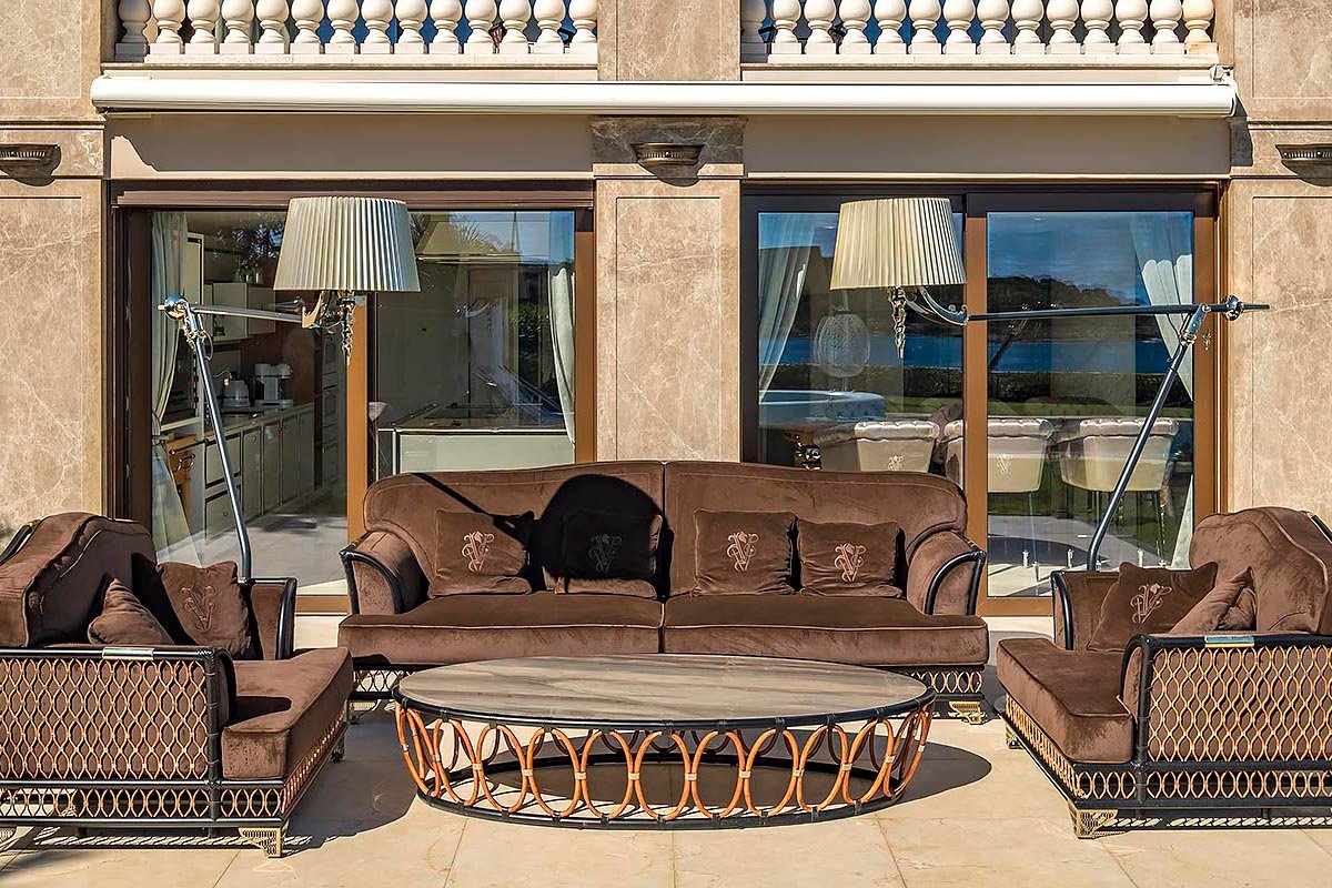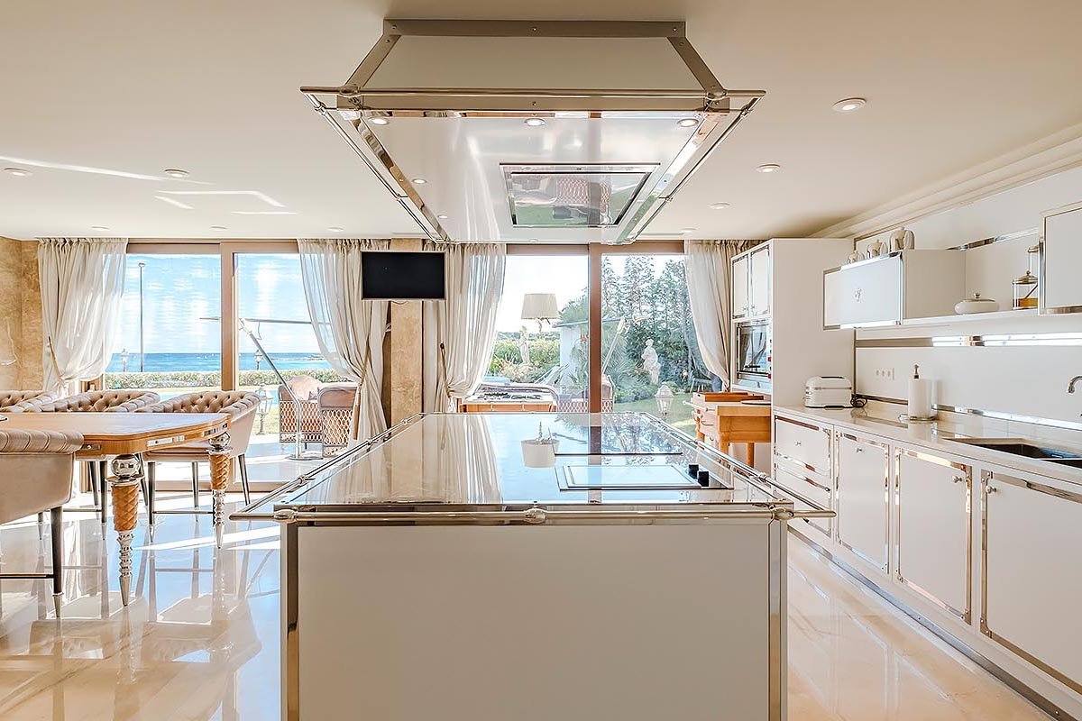 Villa Vela with its own private shoreline is situated in the heart of Cap d’Antibes. The villa boasts a magnificent panorama of the Mediterranean Sea and a 3500 square meter garden with exotic plants, statuary, and fountains. This exceptional waterfront property features a private shoreline, a rarity in the region! With sunbeds, a shower, and a very special steam chamber with a glass wall to take in the breathtaking sea view. The landscape was meticulously designed to meet the various requirements of the guests. The fashionable villa is only 20 meters from the water. It features a private shoreline with a sauna. Here you will find a bar-and-grill area from which you can immediately dive into the ocean after a thermal treatment. Each of the seven king-sized bedrooms (the smallest is 40 square meters) has been customized to the slightest detail. Each room features a spacious restroom. At our villa, you’ll be able to completely unwind and savour every moment of your vacation. The villa has a professional-grade kitchen. Where we can invite a renowned chef to prepare delicious meals for you. European, Mediterranean, Asian, or Specialty…