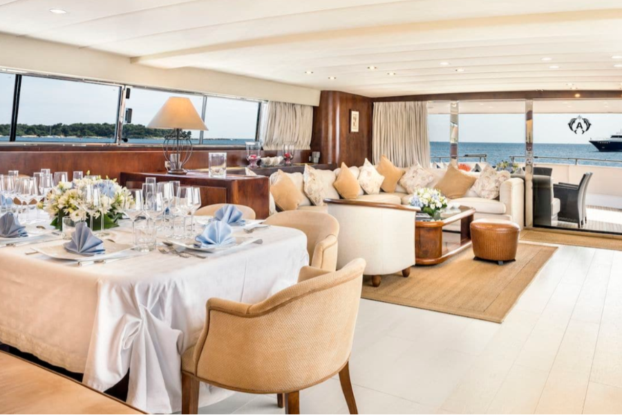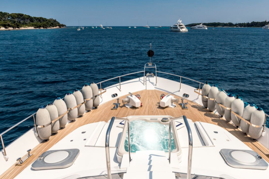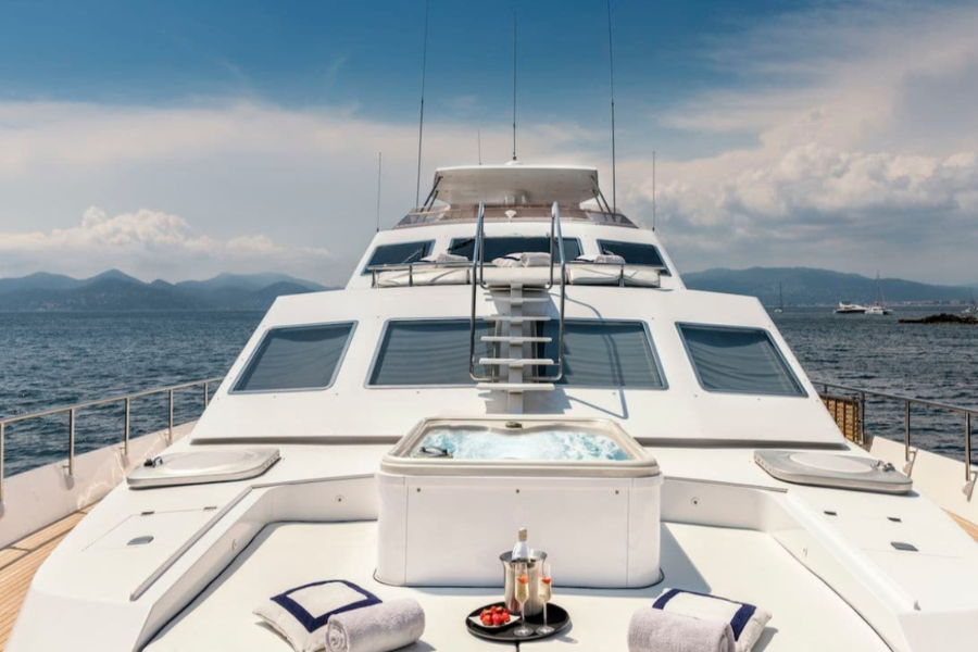 The yacht is equipped with an array of amenities to enhance your time on the water: air conditioning, fishing gear, a jacuzzi, jet skis, kayaks, paddleboards, snorkeling equipment, and a tender for excursions both on land and at sea. Every detail has been carefully curated to offer a personalized, luxurious experience.