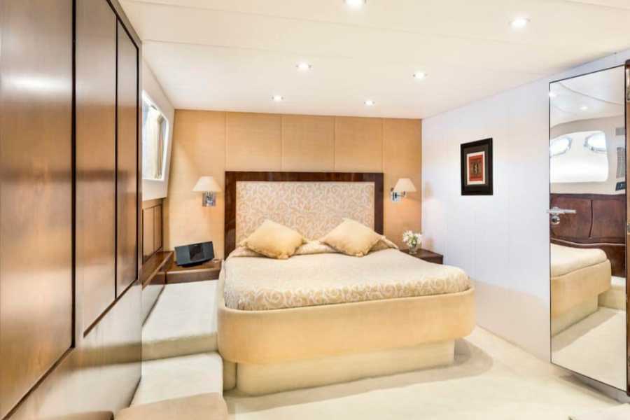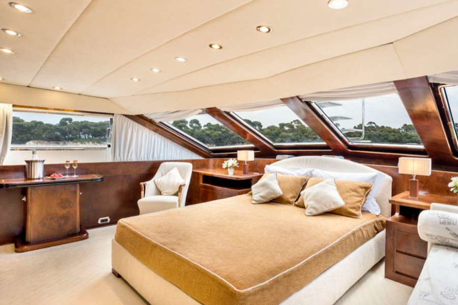 Onboard the Alalunga 108, comfort and sophistication take center stage. A dedicated team of 6 crew members will ensure your every need is met throughout your journey. The yacht features 5 luxurious cabins, accommodating up to 12 guests overnight and 40 guests while cruising, all set in a refined and elegant atmosphere for a restful and peaceful stay.