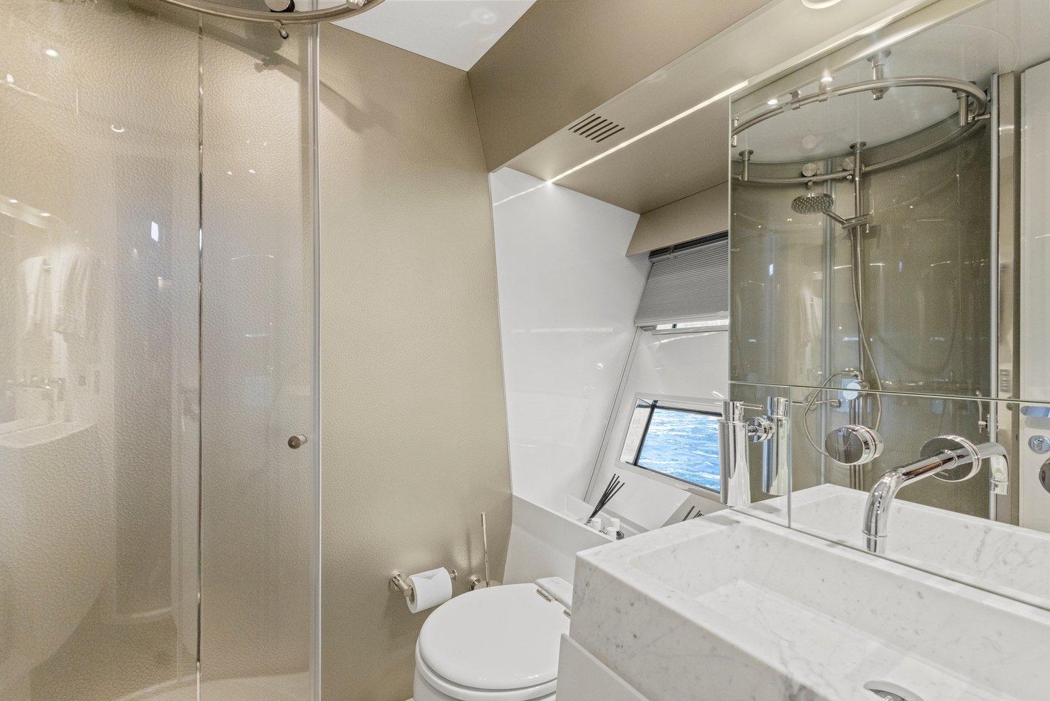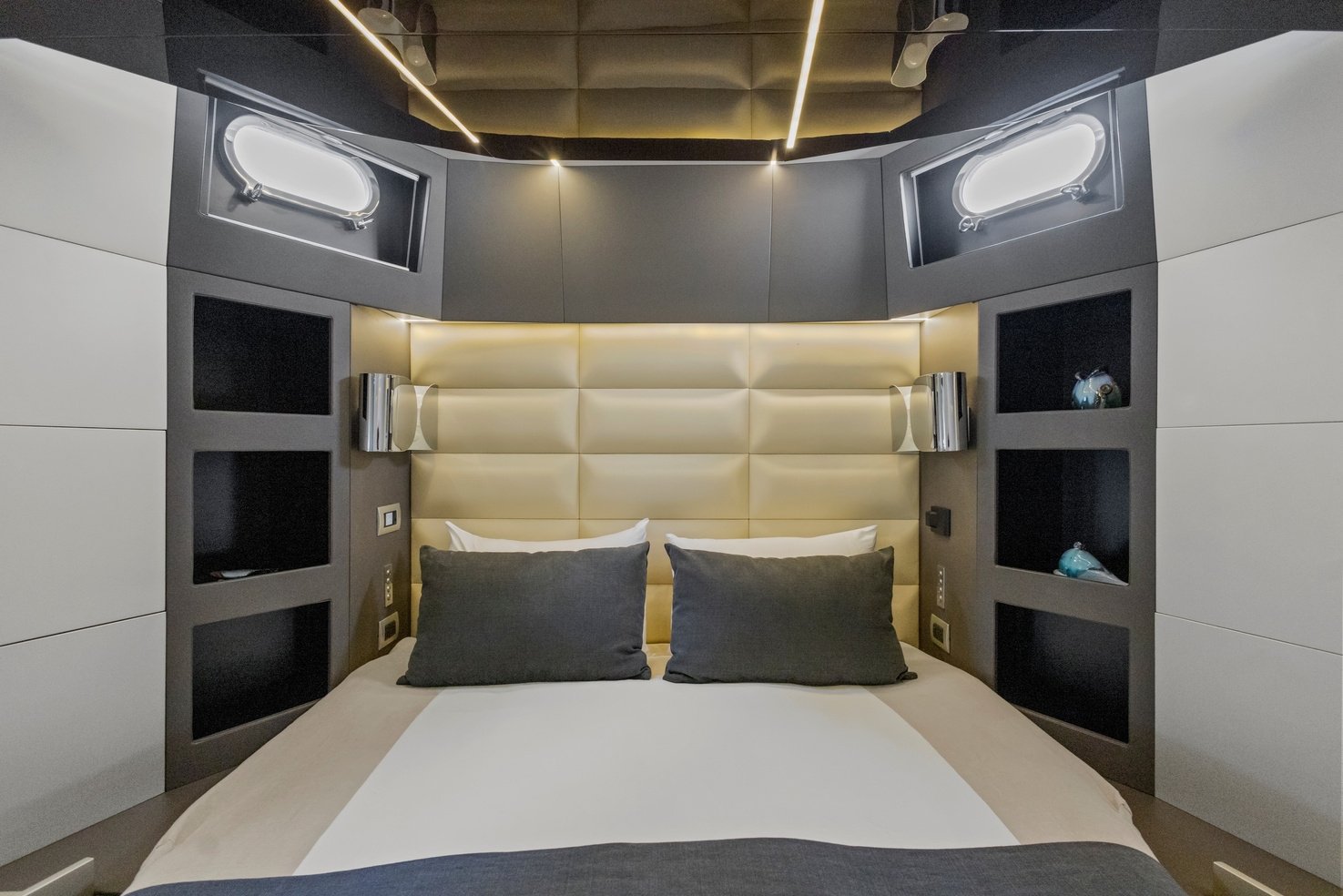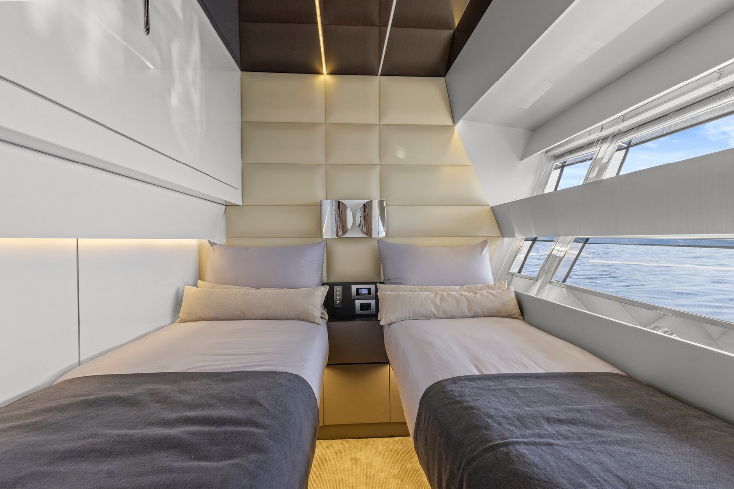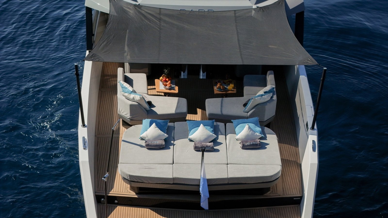 Unmatched in her class, the Sherpa 60 offers exceptional outdoor living space. Picture yourself relaxing on the expansive beach club, feeling the sea breeze, or taking a refreshing dip from the hydraulic bathing platform into the pristine waters. The main deck is designed for connection and comfort, with a welcoming saloon and a fully equipped galley, perfect for creating unforgettable memories with friends and family.