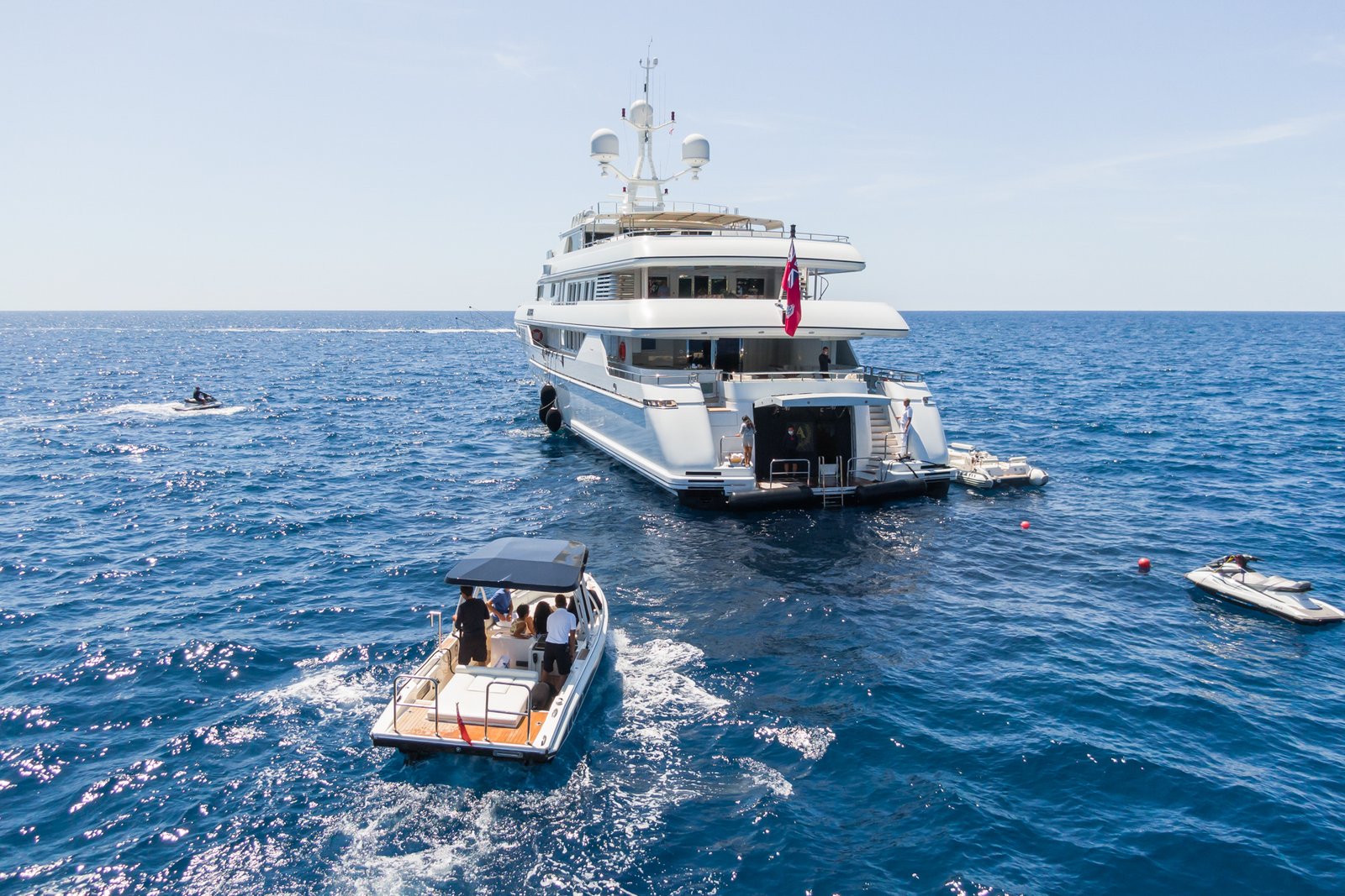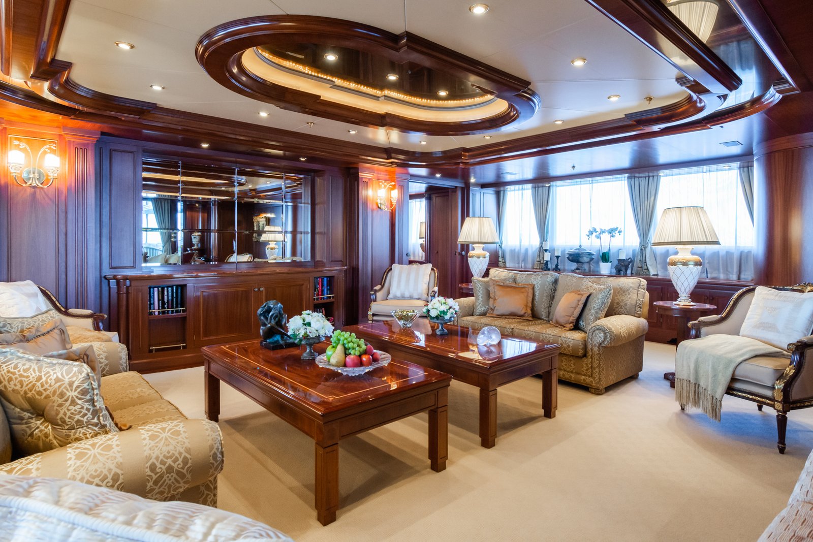 Accommodating up to 12 overnight guests in seven luxurious cabins and hosting up to 18 day guests, the yacht is perfect for grand entertaining. Her expansive decks include a large Jacuzzi, a full bar, and cozy seating areas.