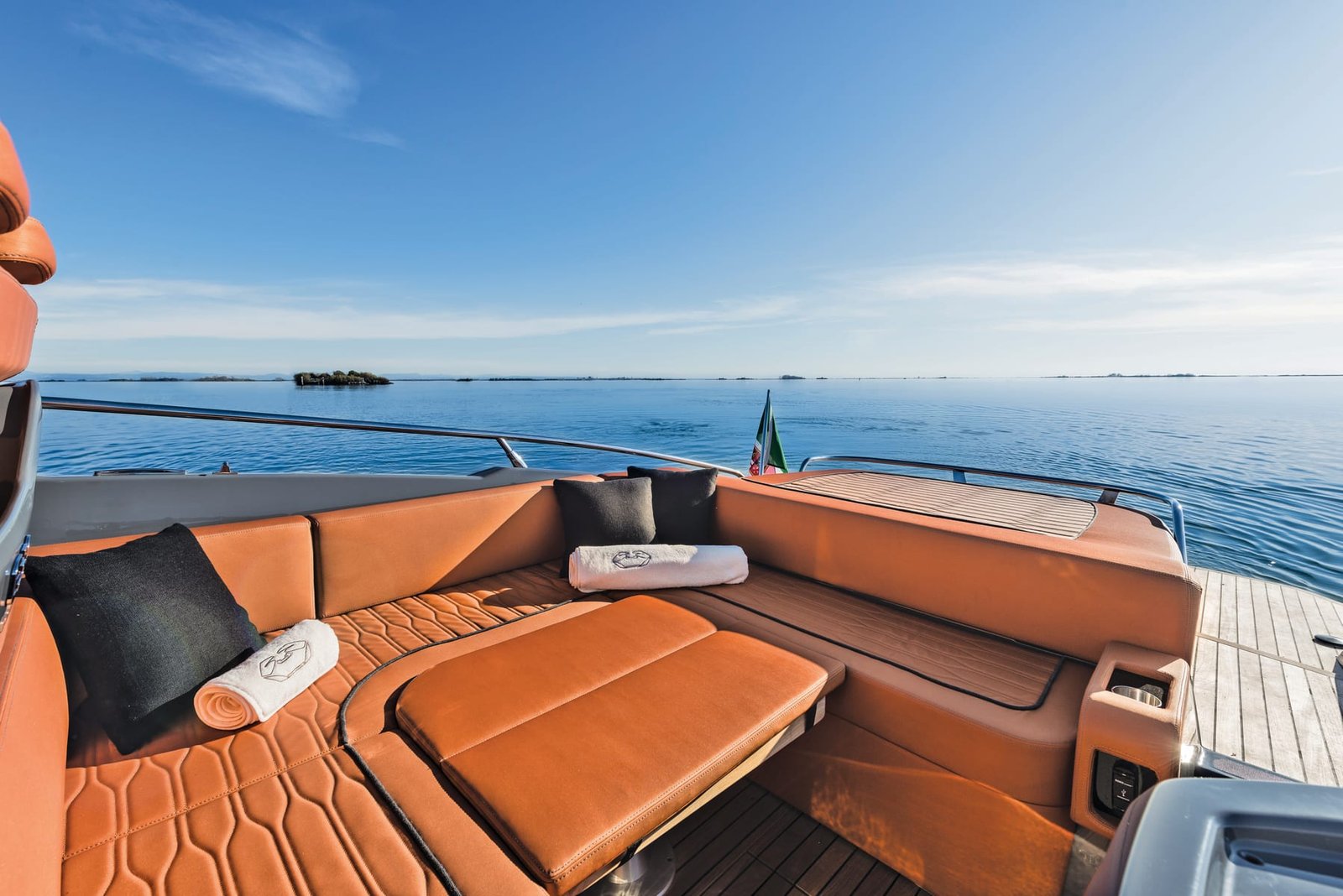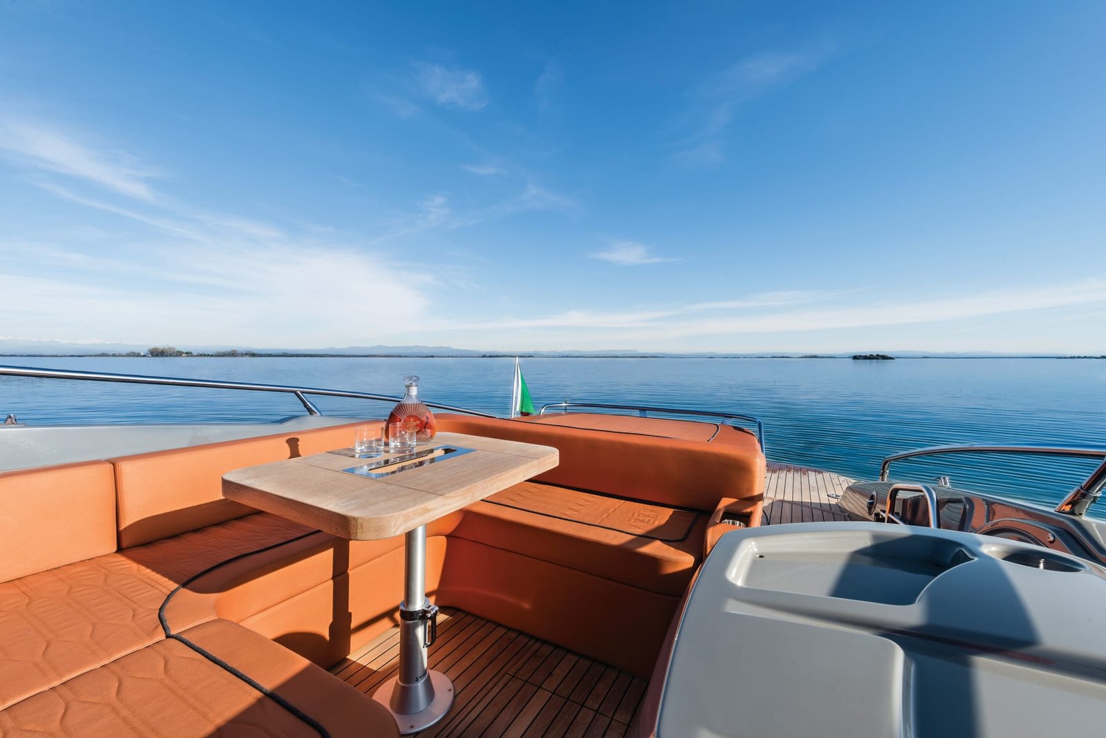The boat is reactive, prompt, and never nervous. It holds its line very well, and has a very tight turn radius. This is the benefit of having just one engine, and well designed waterlines. Perfect unit to cruise in style around the French Riviera.