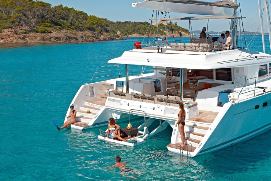 Experience the ultimate blend of luxury and comfort aboard the Lagoon 560, a spacious 17-meter catamaran designed for unforgettable voyages at sea. With a capacity of up to 27 guests, this stunning vessel features four elegant double cabins, each equipped with a private bathroom, ensuring privacy and relaxation. Whether you’re sailing with family or friends, the Lagoon 560 offers ample space and top-tier amenities, making it the perfect choice for an exceptional getaway. With a generous sail area of 207 m², this catamaran delivers both performance and smooth sailing, promising a truly unique yachting experience.