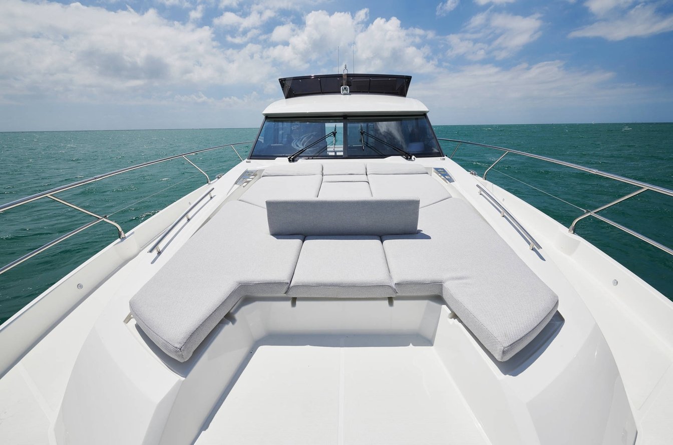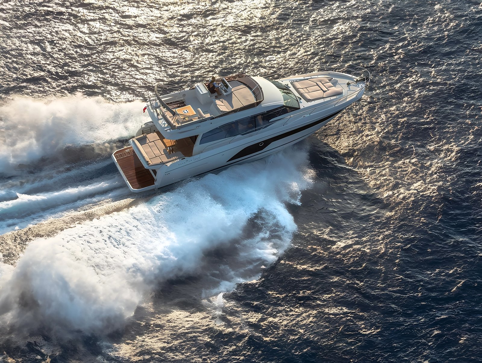 Relax on the expansive flybridge and take in breathtaking views of the Mediterranean coastline. Whether you’re exploring Monaco, Cannes, or Saint-Tropez, the Prestige 590 Fly promises a refined yachting experience where sophistication meets innovation.