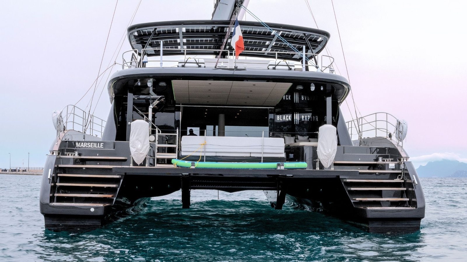 The Sunreef 60 Black Raptor is a true masterpiece of design and sustainability. Equipped with solar panels seamlessly integrated into its hull sides, superstructure, and bimini roof, this cutting-edge catamaran generates clean energy to power vibration-free navigation and onboard appliances.
